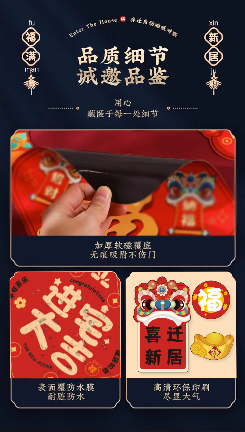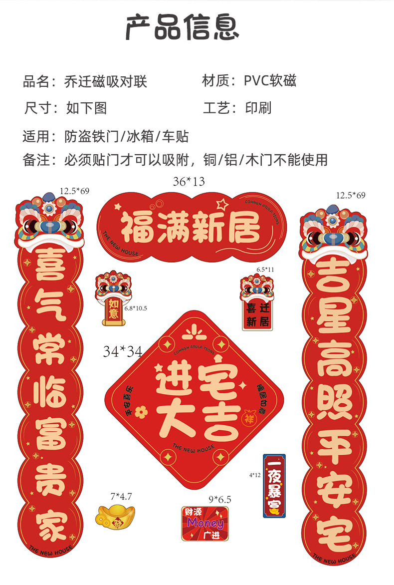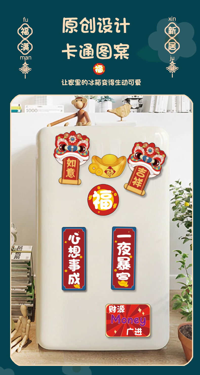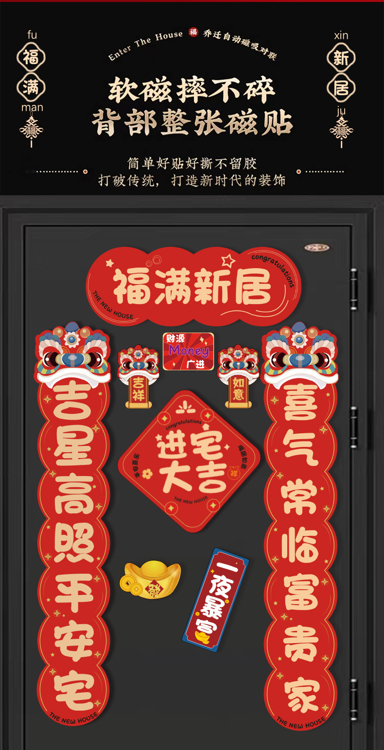 乔迁之喜磁吸对联新居入宅卡通免胶粘对联防盗门冰箱装饰用品大全