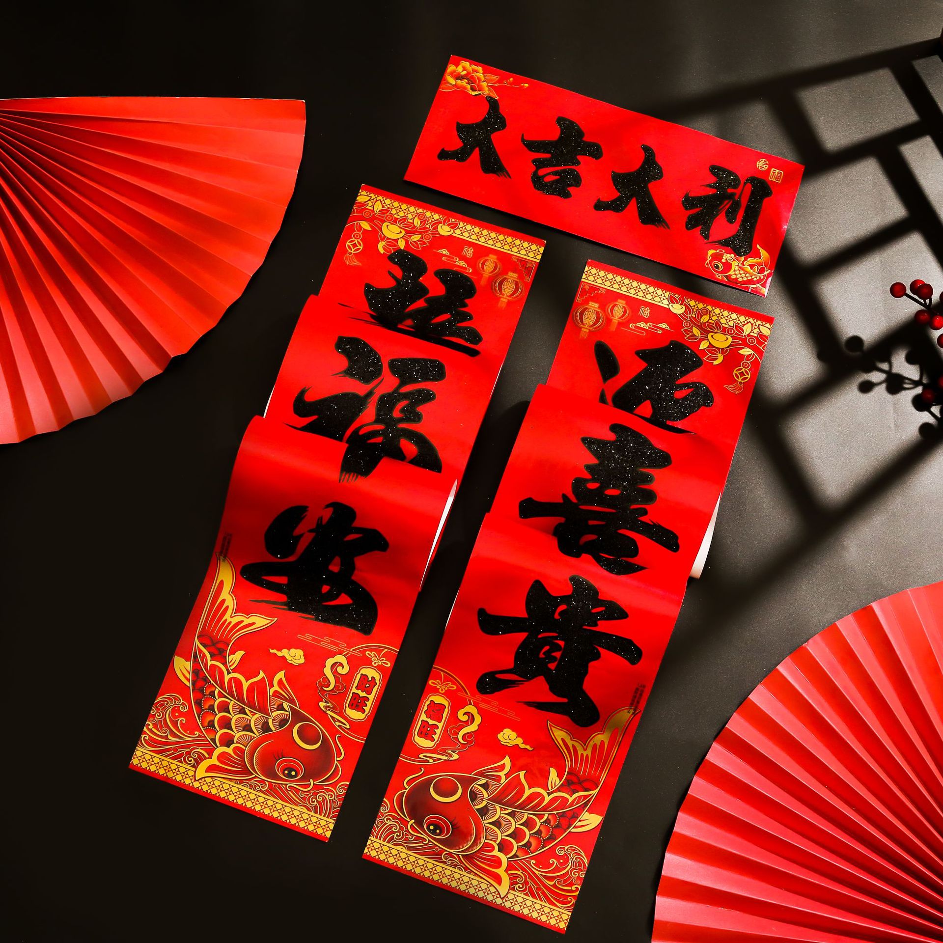 2026马年对联铜版纸撒金粉春联过年春节福字植绒黑粉对联地摊批发