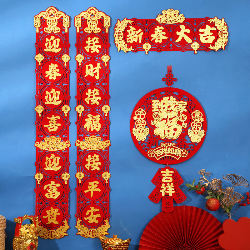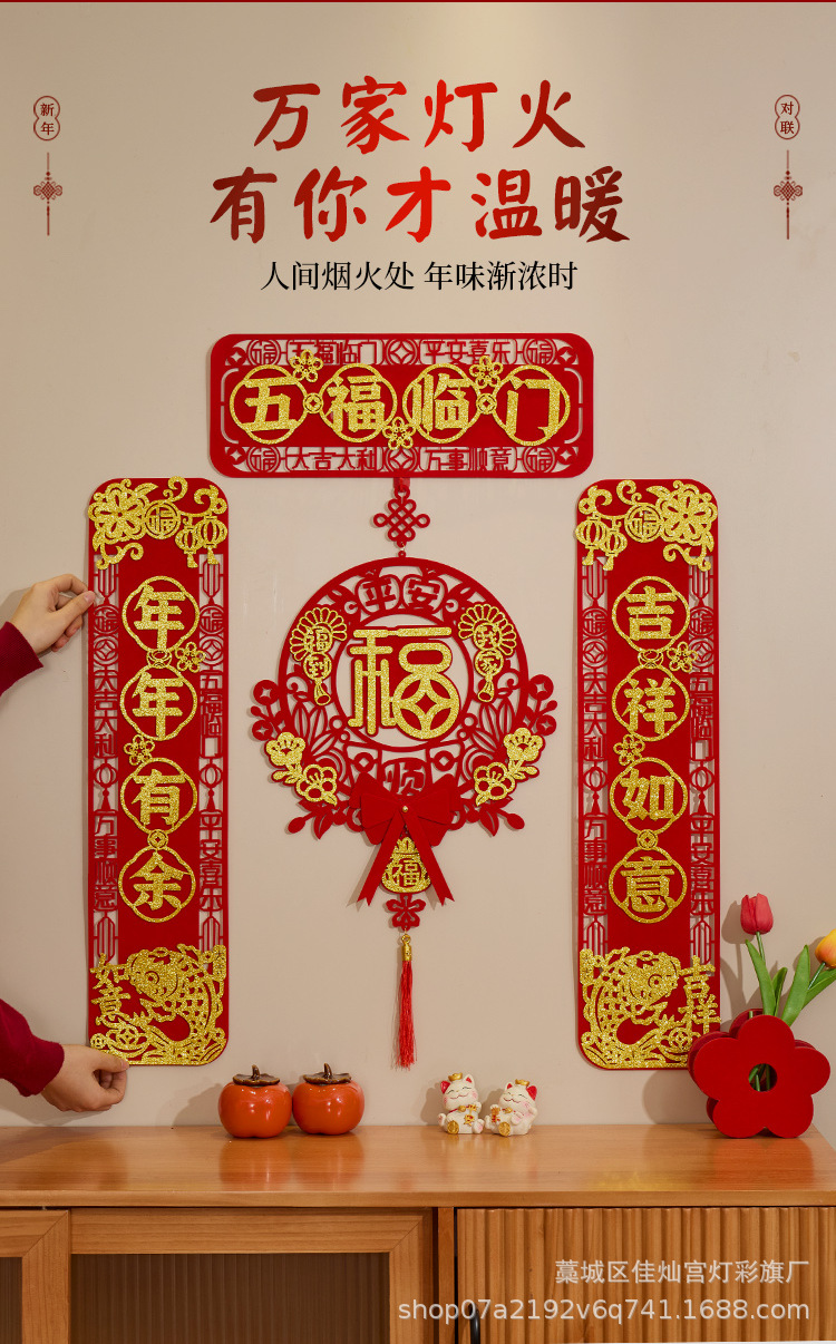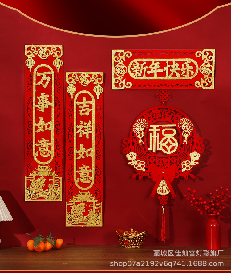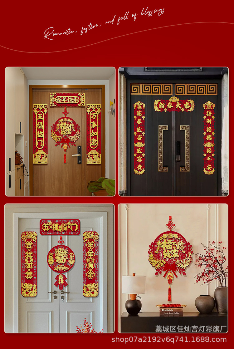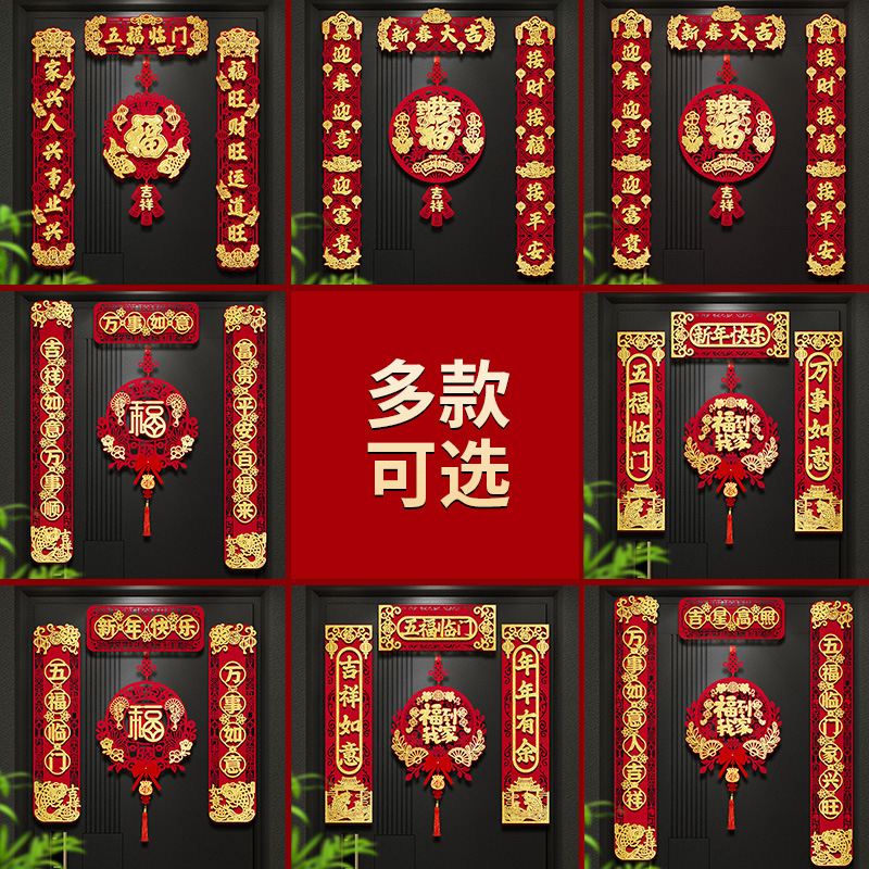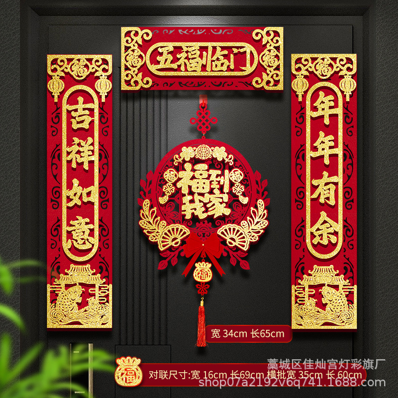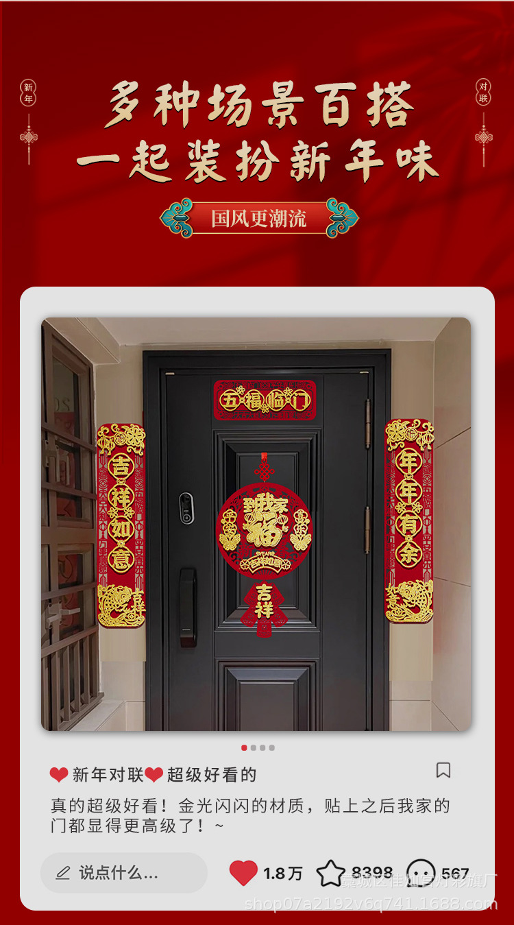 磁吸对联2025蛇年新款春联过年春节家用装饰立体植绒福字门贴批发