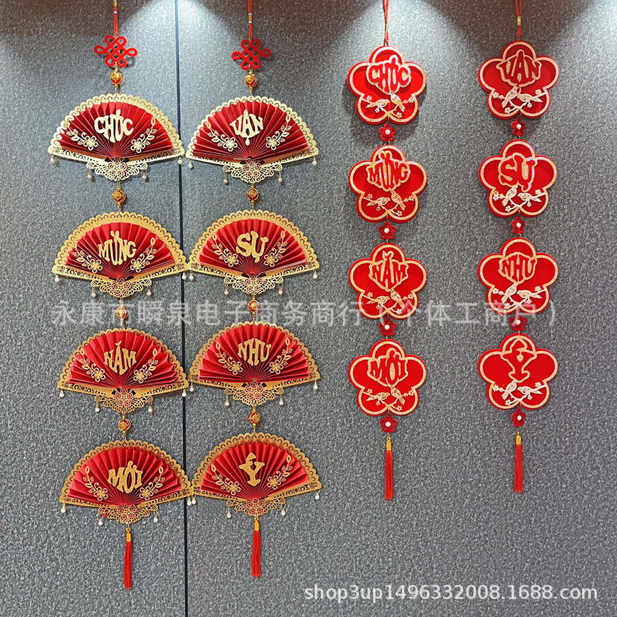 越南新年对联福字挂件大红春节对串鱼福对联装饰房门装饰对联批发