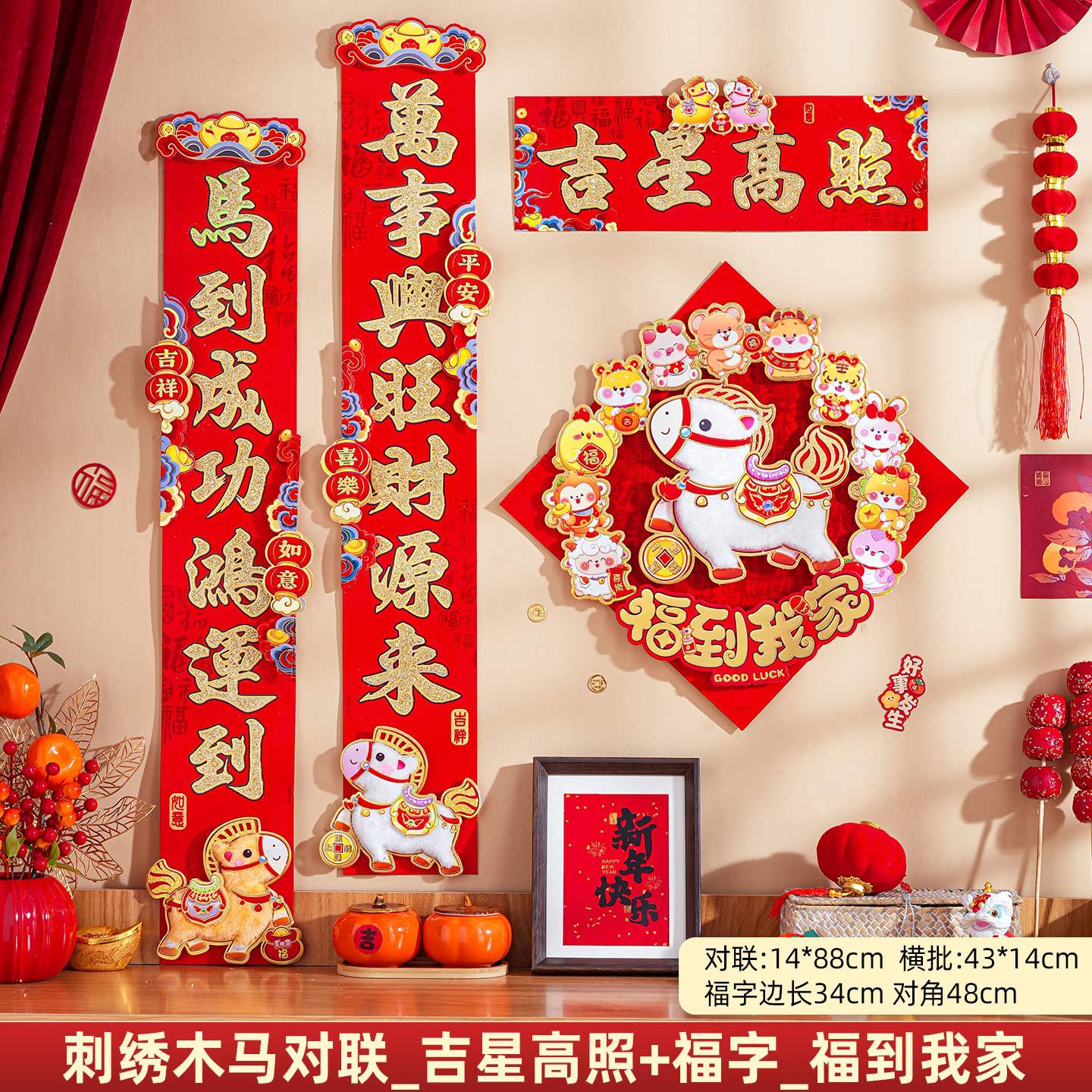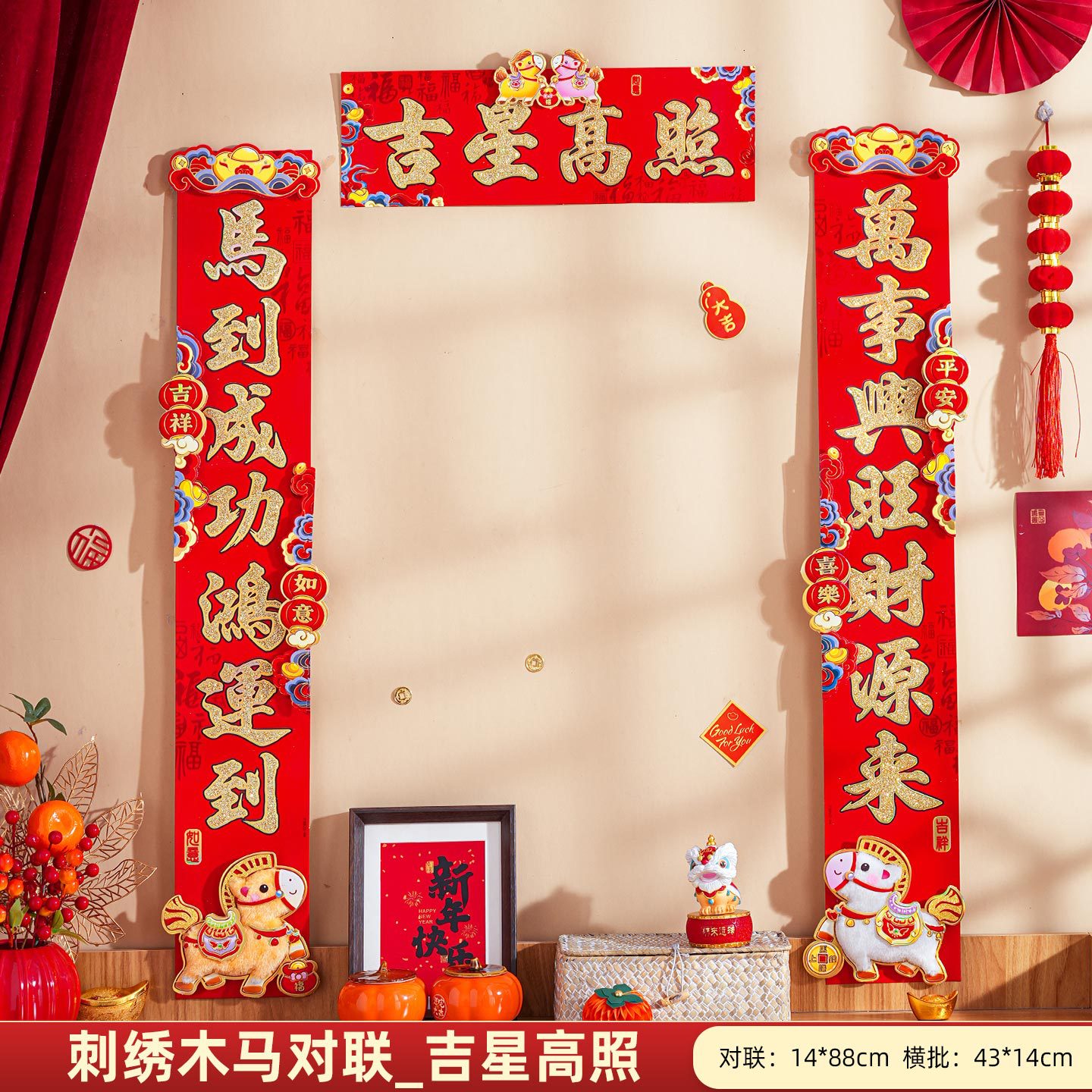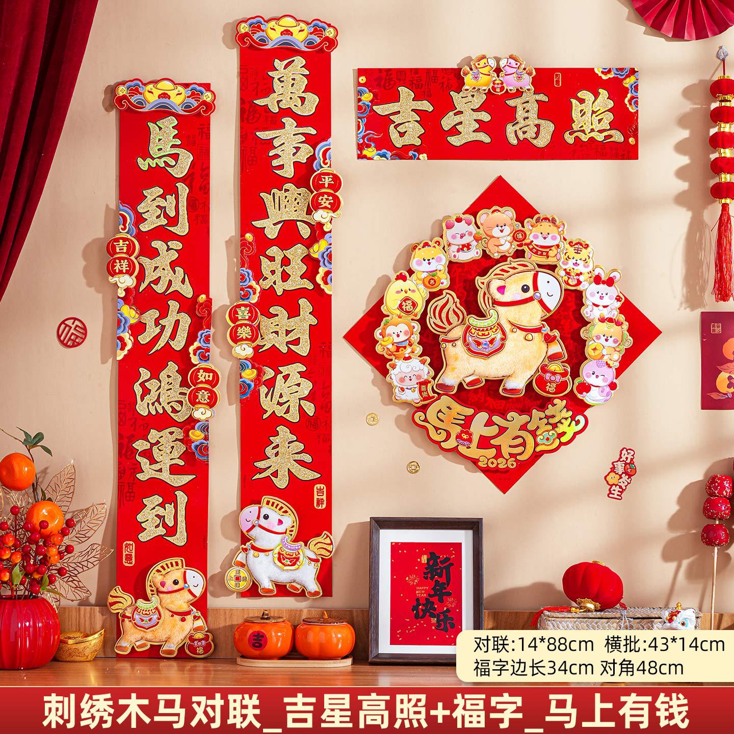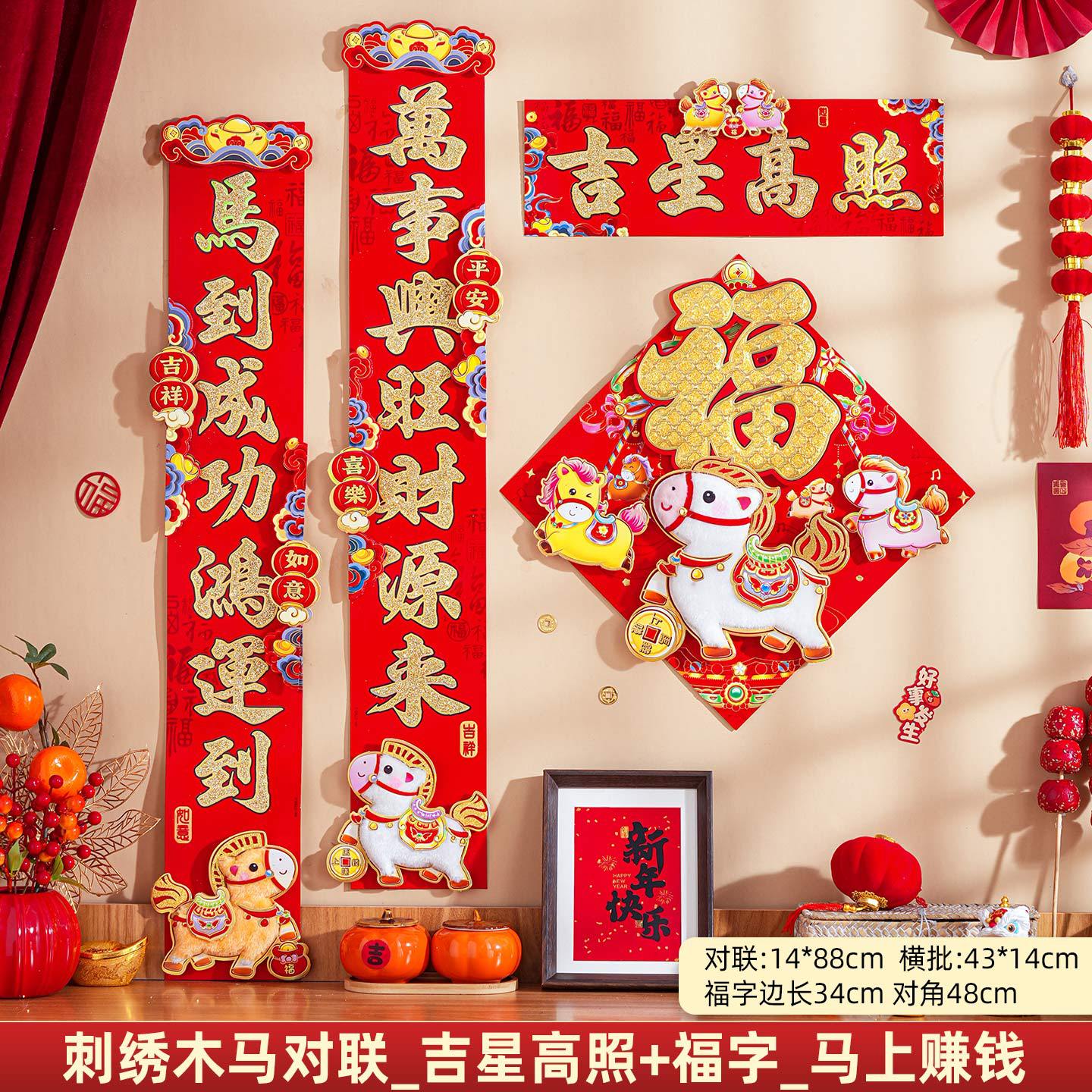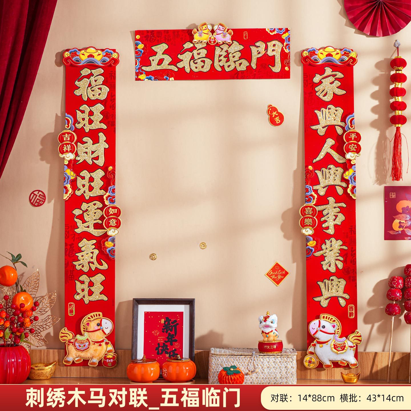 对联春联2026年新款马年植绒立体红果新年创意对联入户大门装饰品
