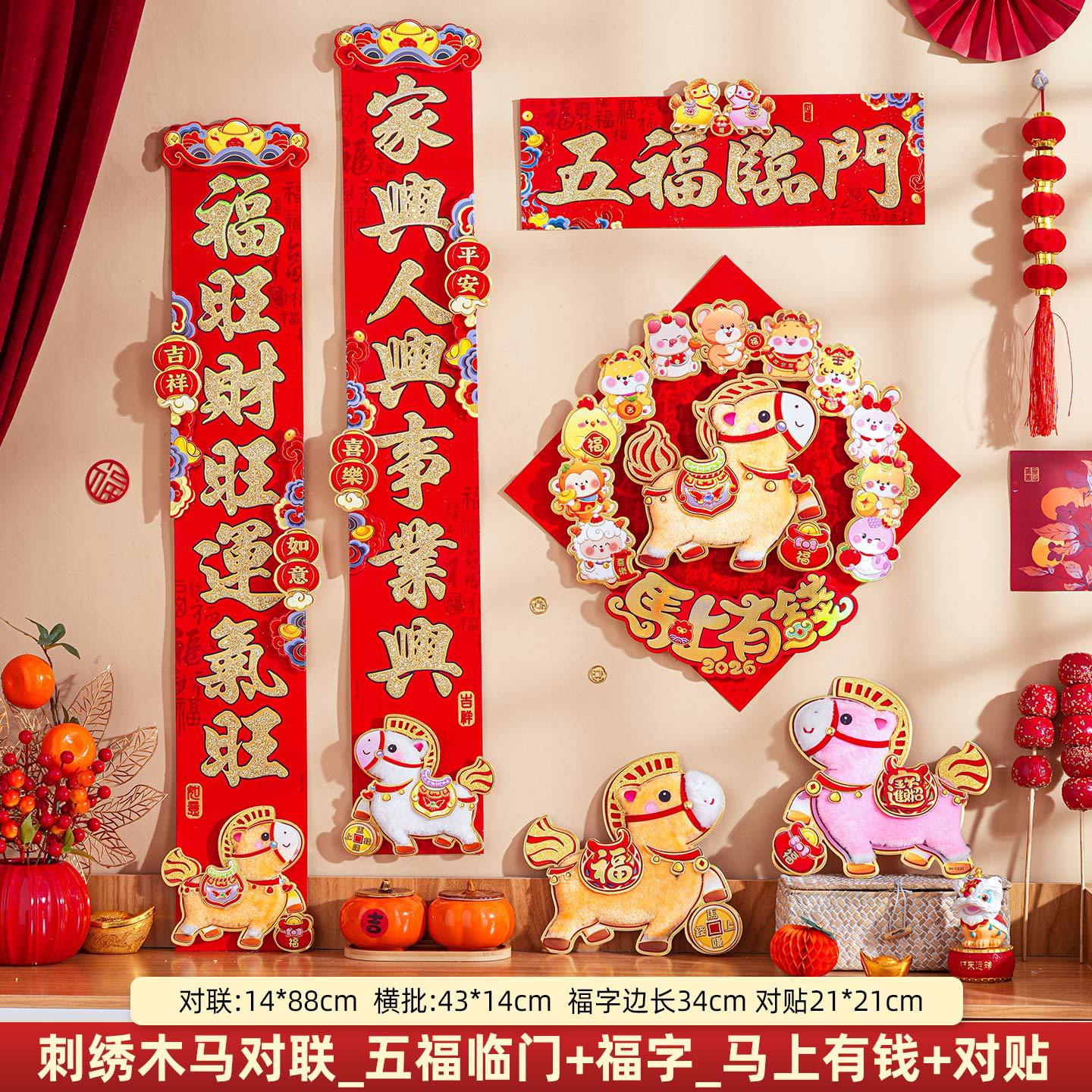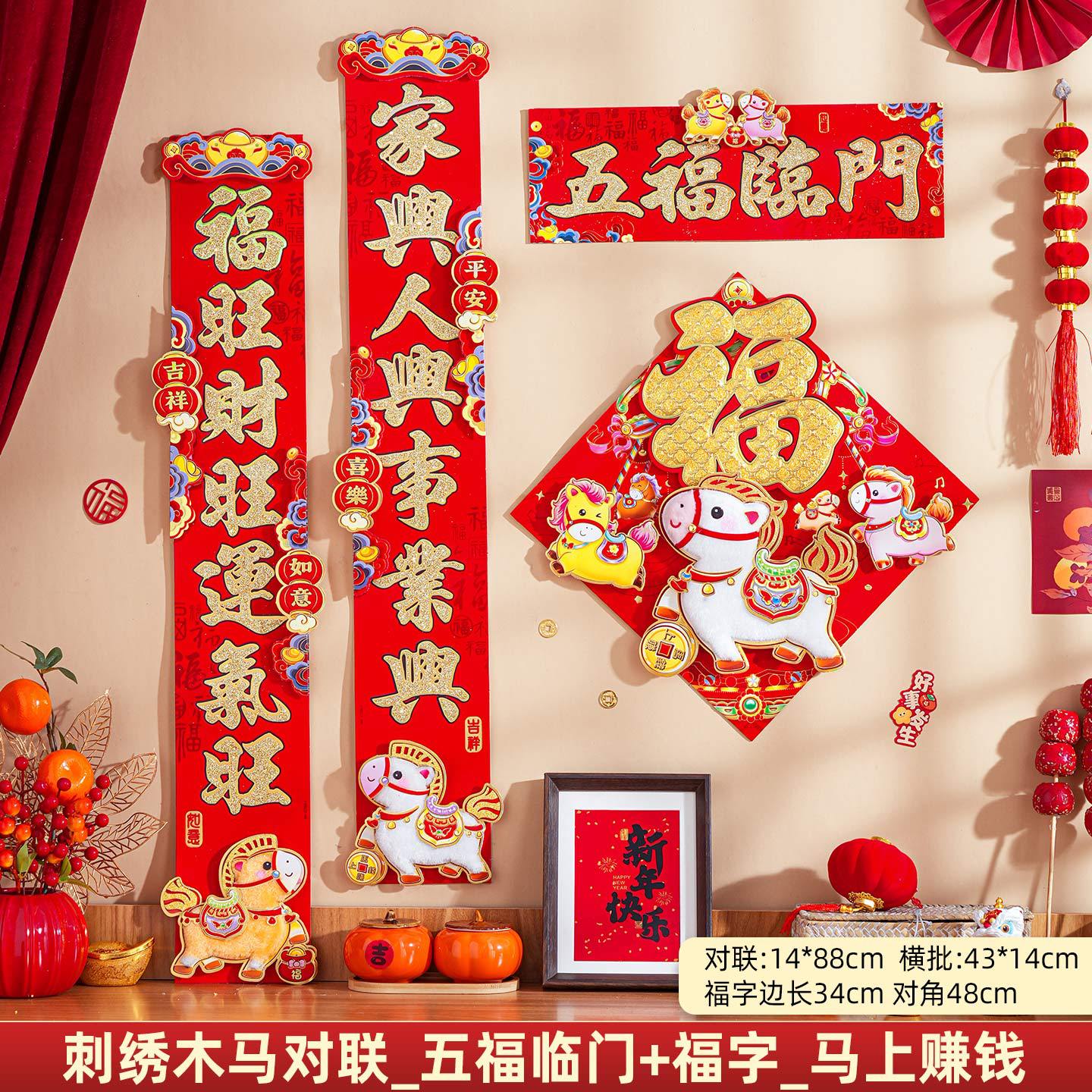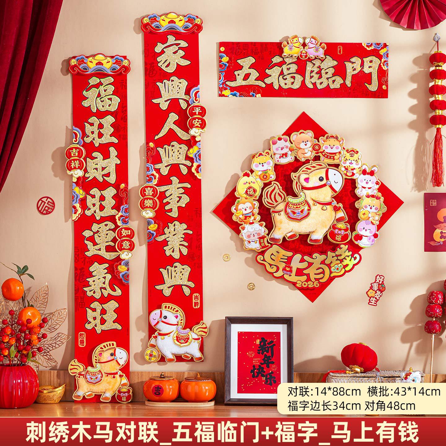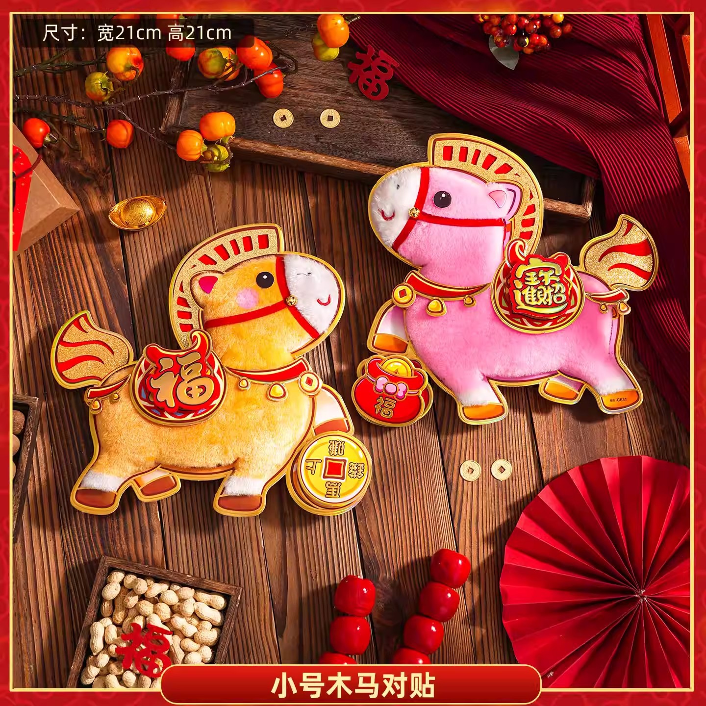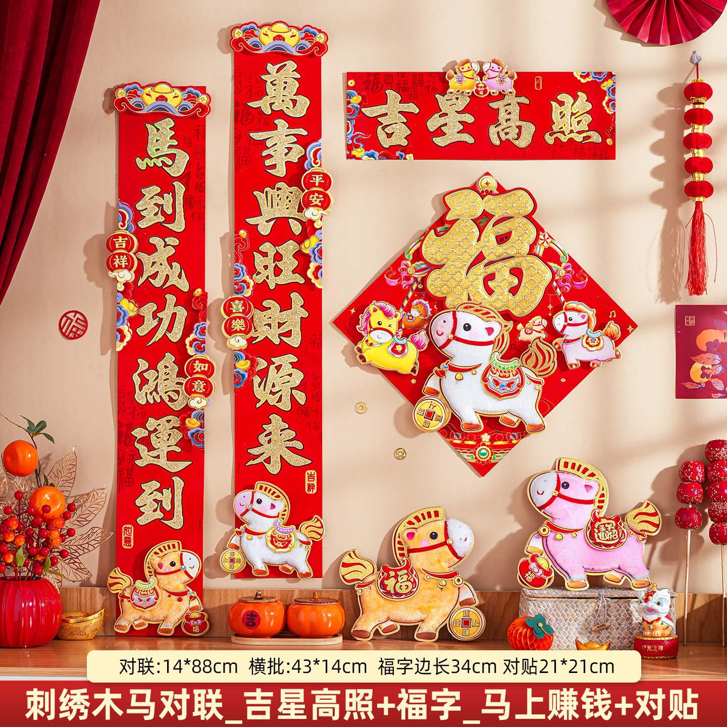 对联春联2026年新款马年植绒立体红果新年创意对联入户大门装饰品