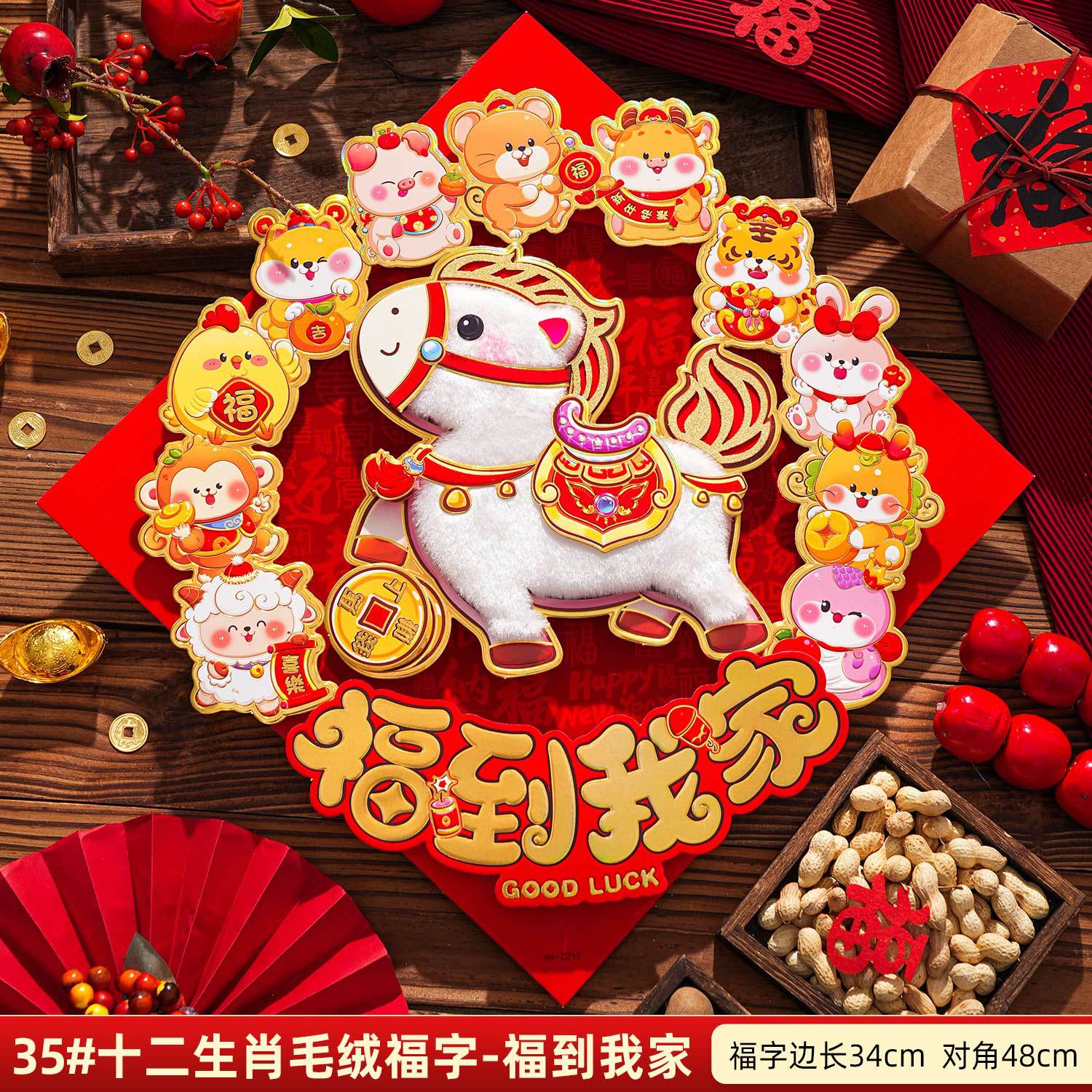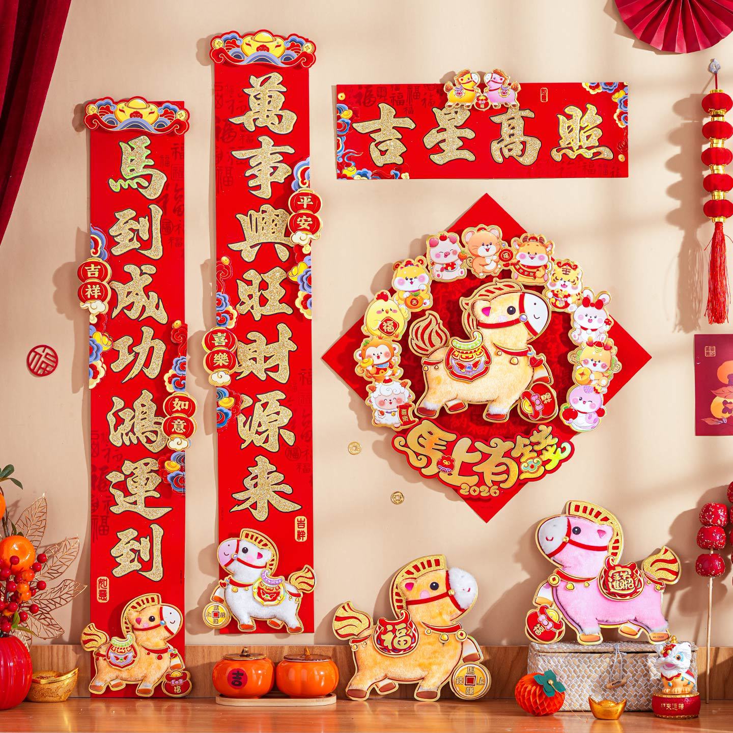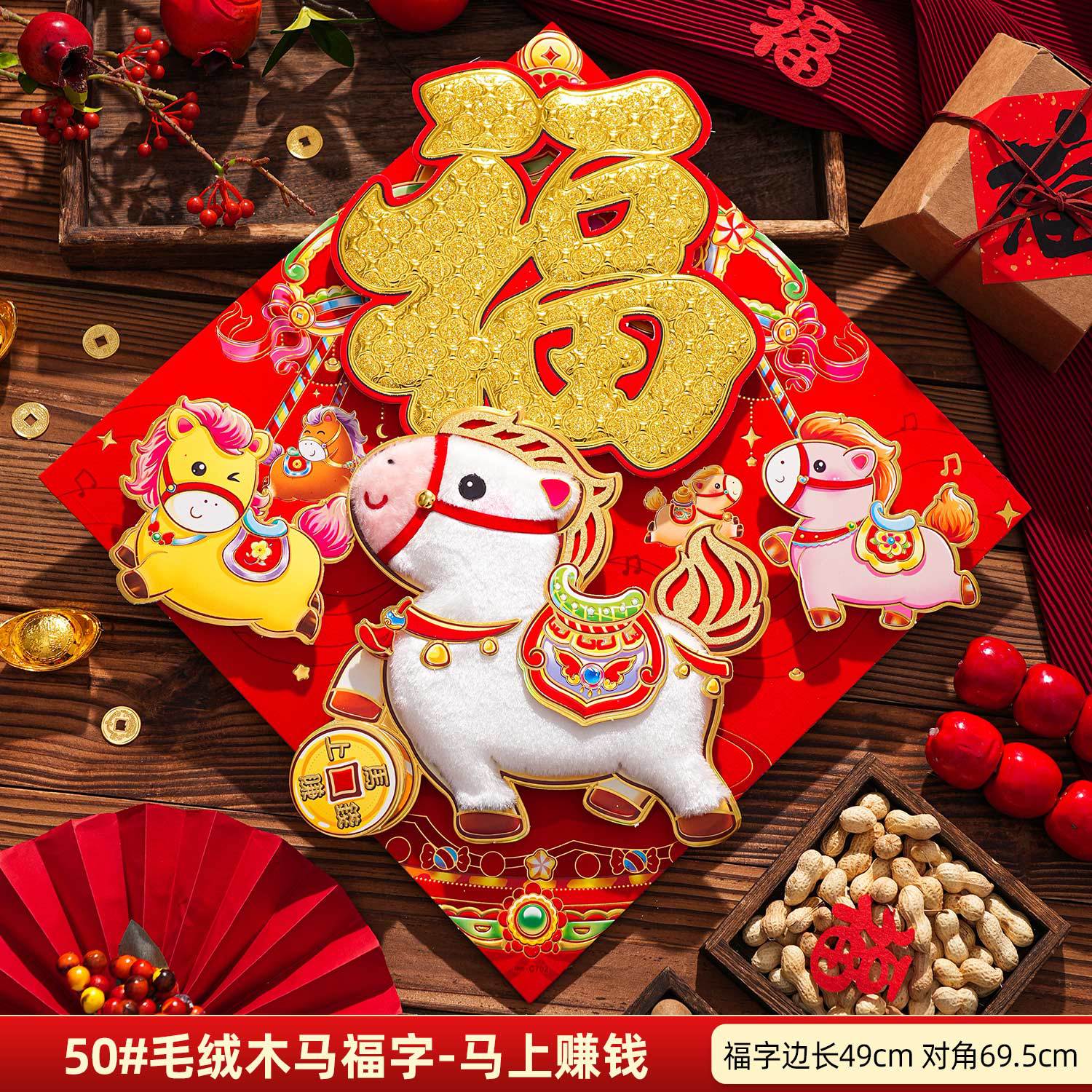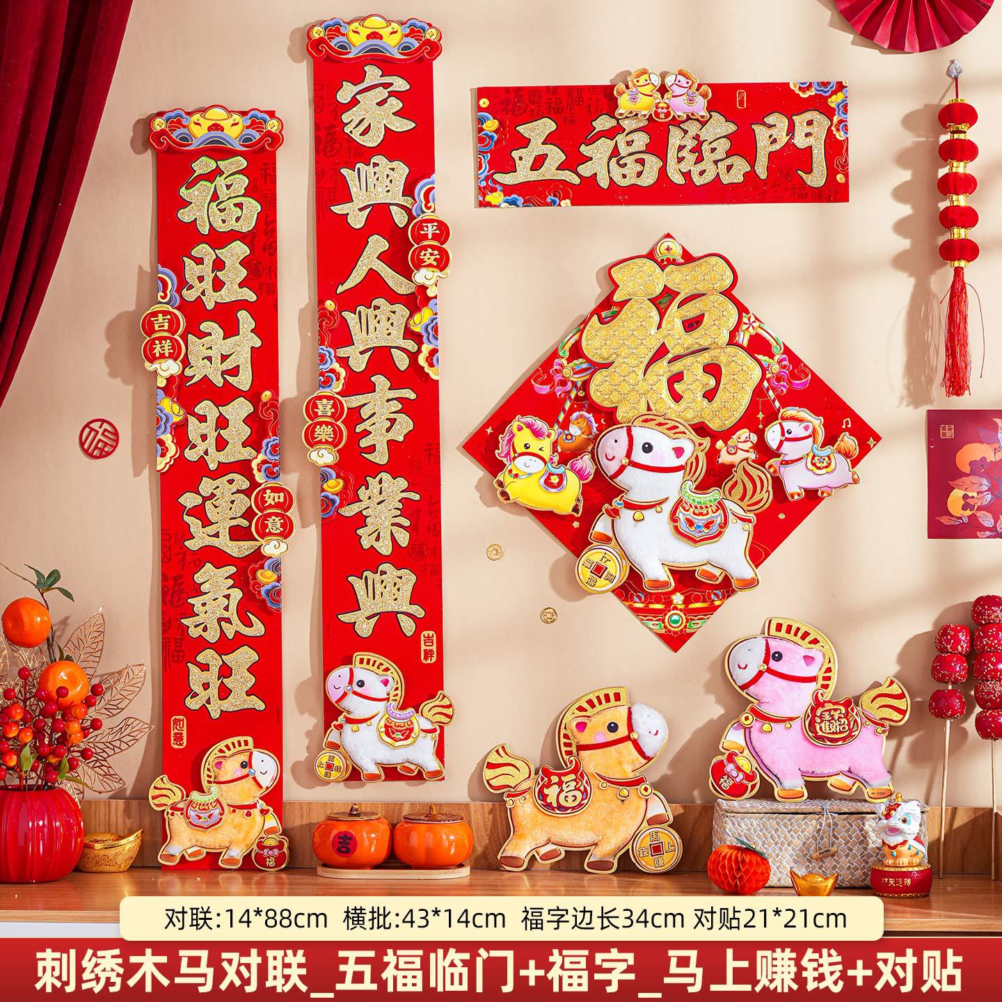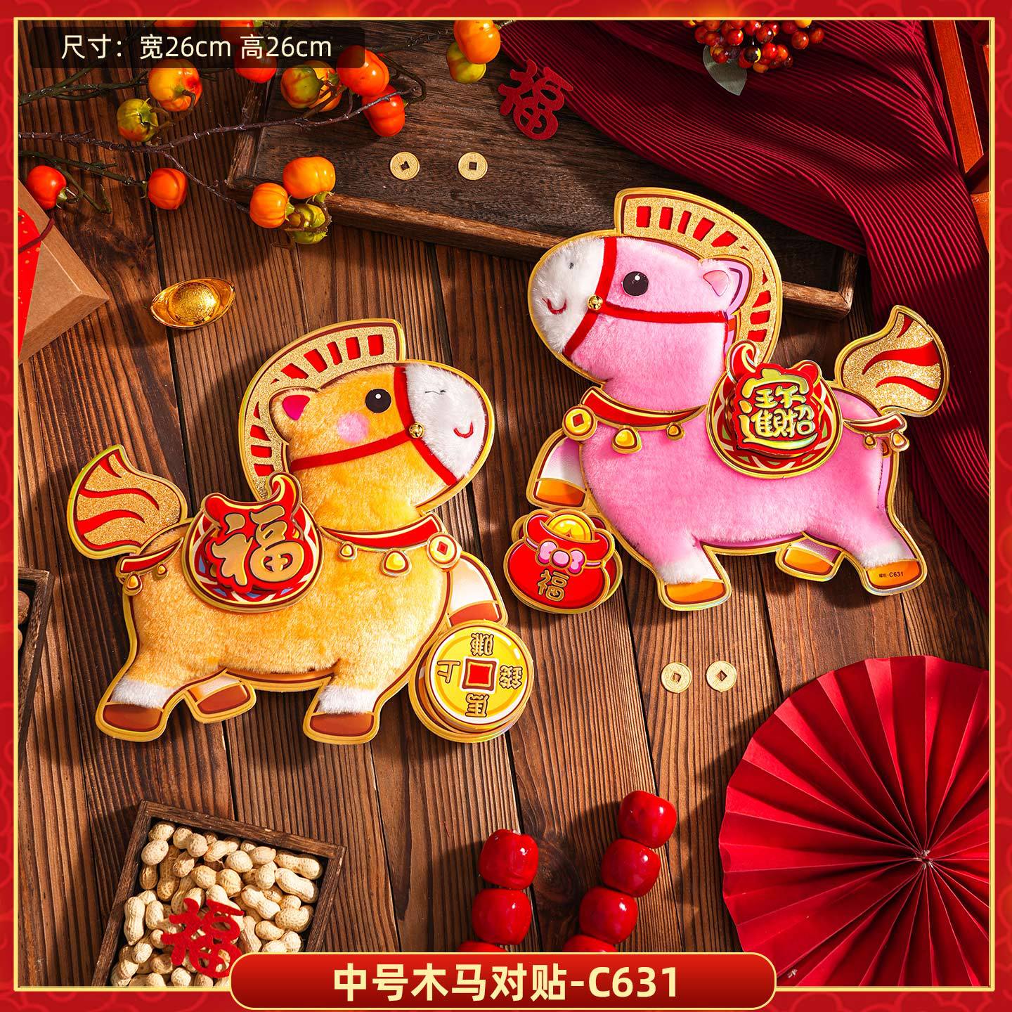 对联春联2026年新款马年植绒立体红果新年创意对联入户大门装饰品