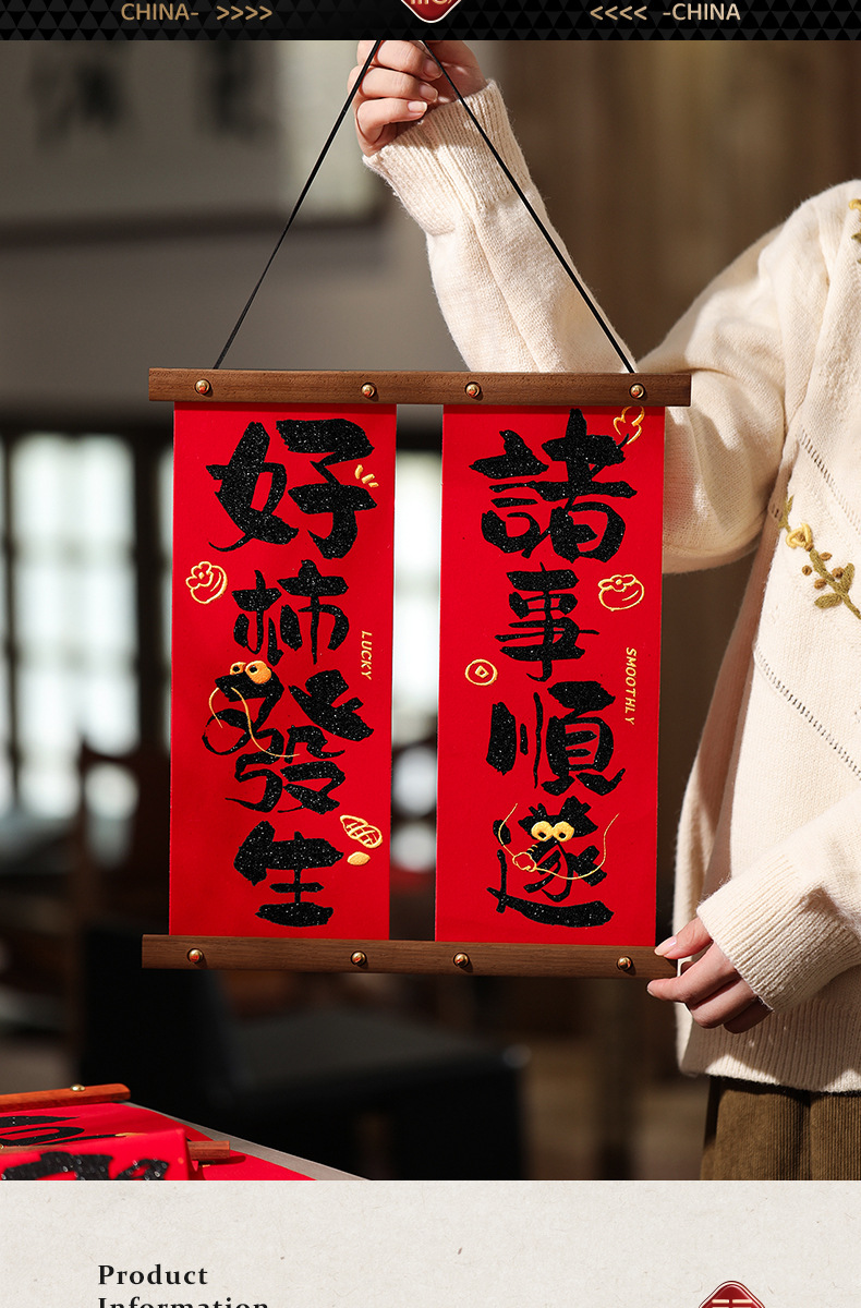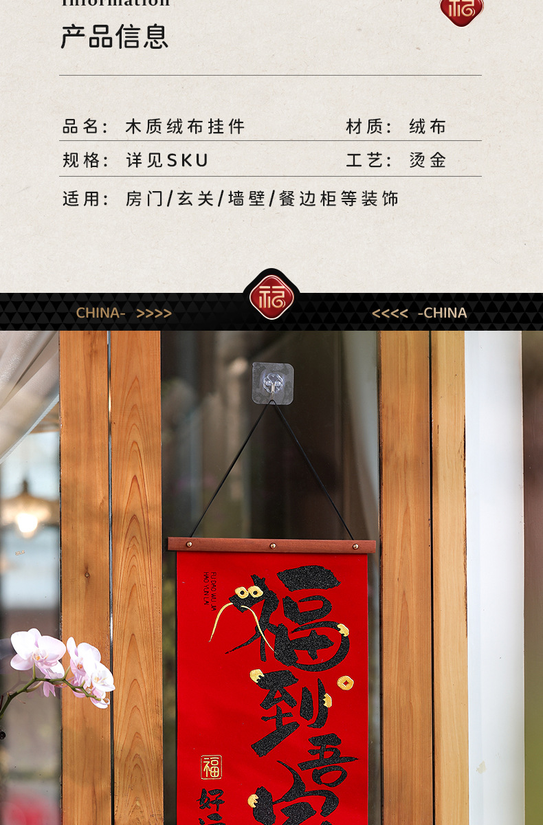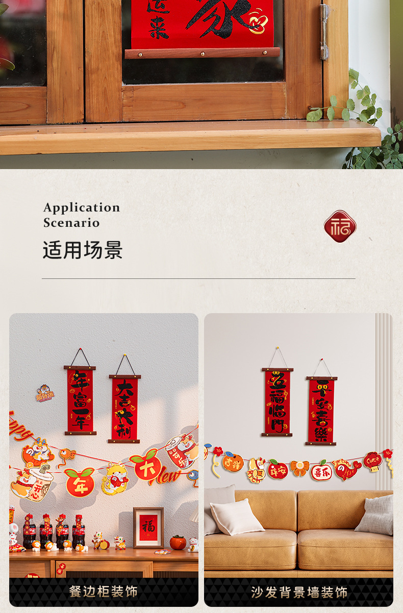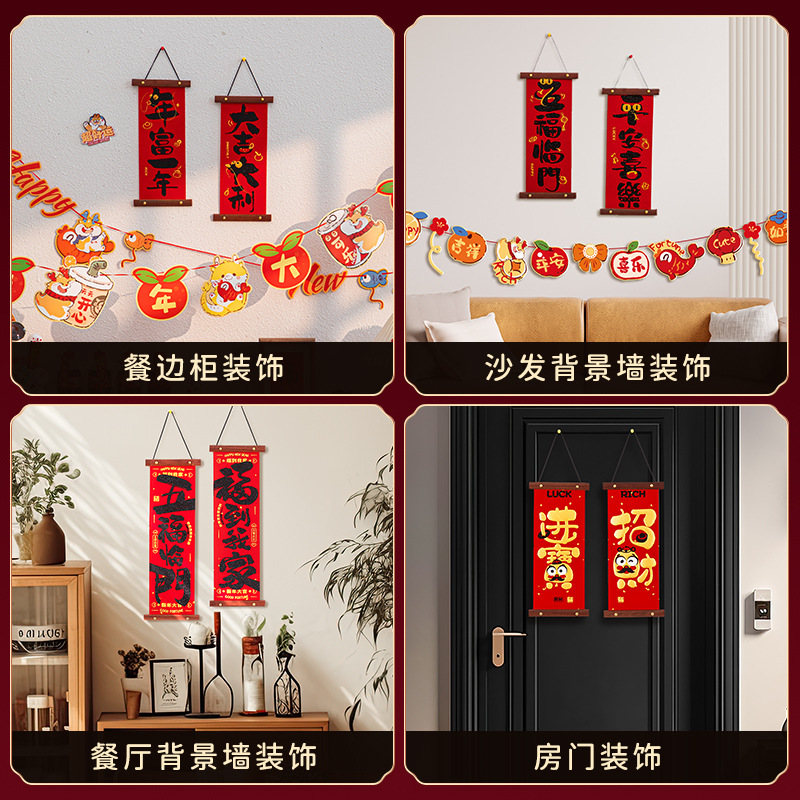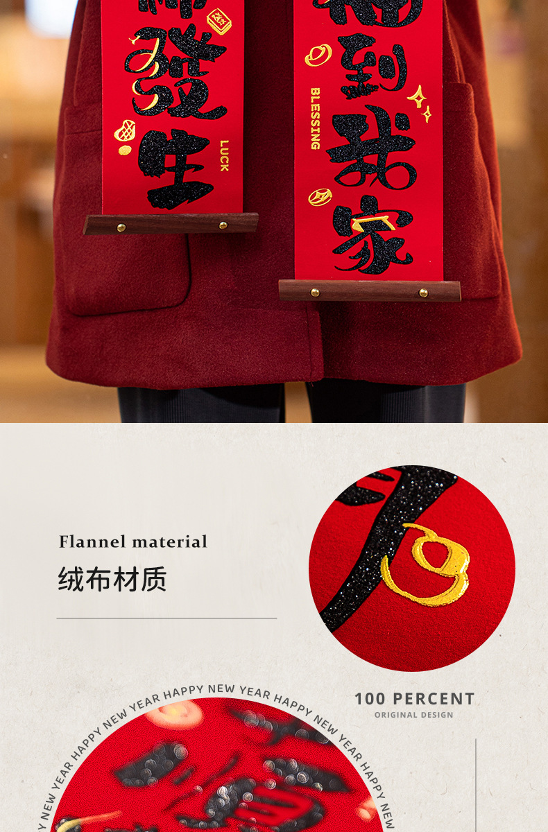 2026新款喜联绒布小对联过年春节家用福字贴乔迁搬家入户门挂装饰