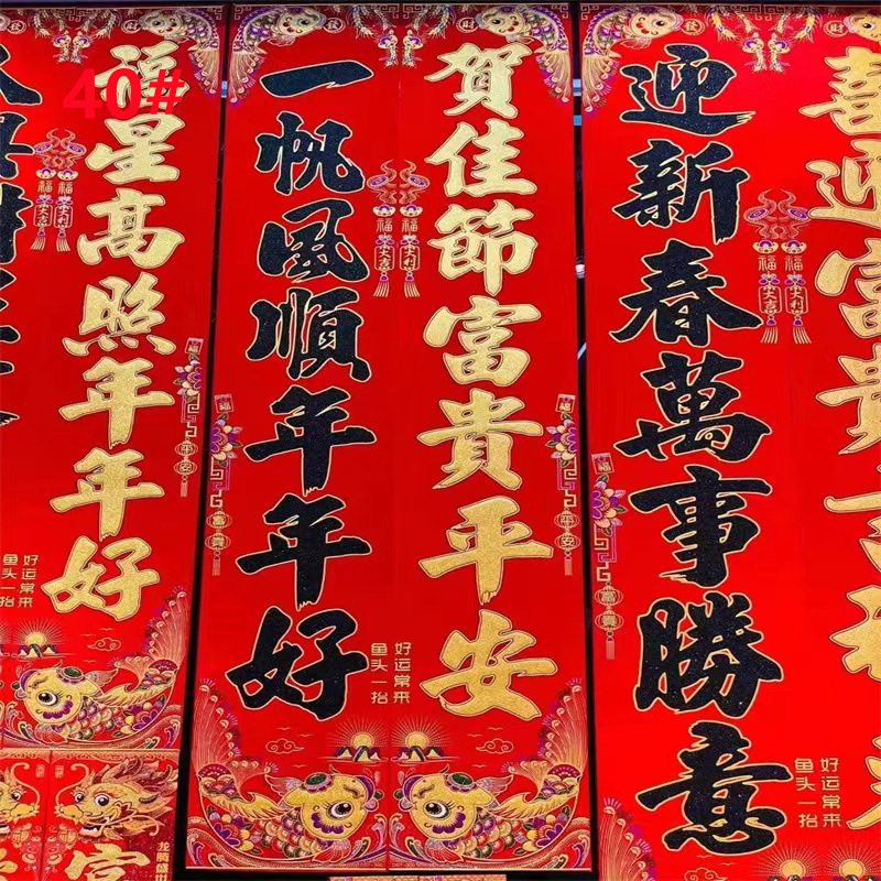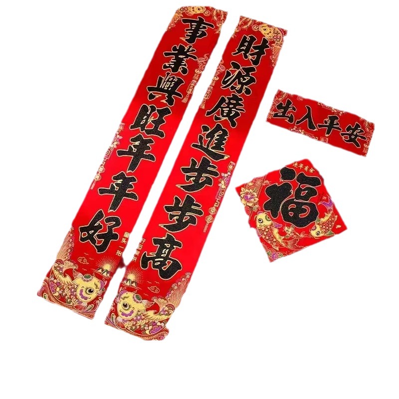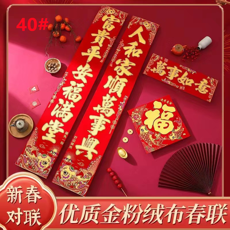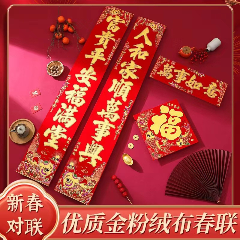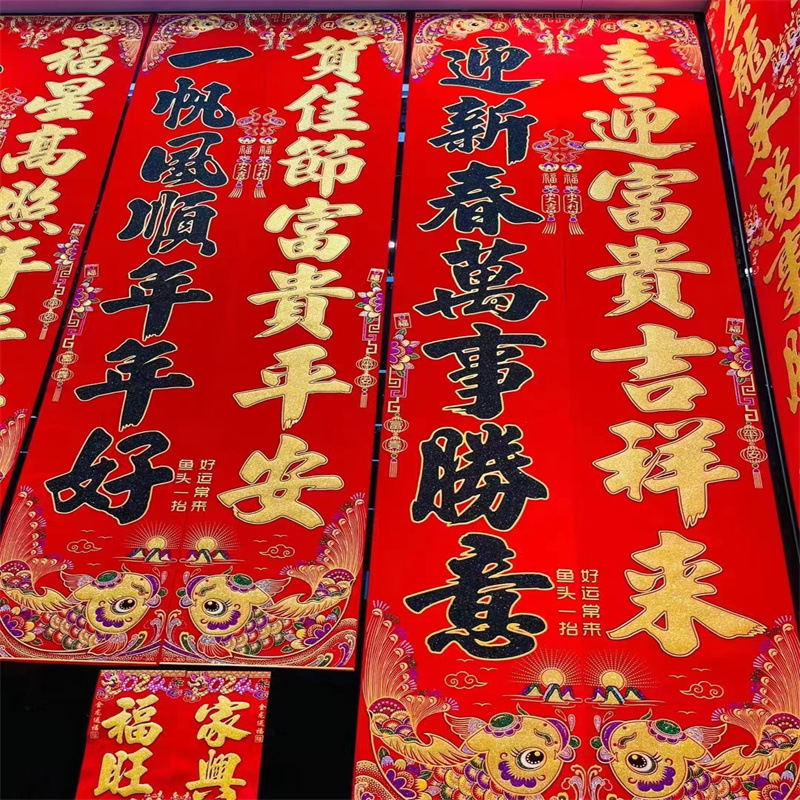 鸿年旺加厚发泡绒布对联全背胶自粘撒金粉盒装彩鱼版春节装饰