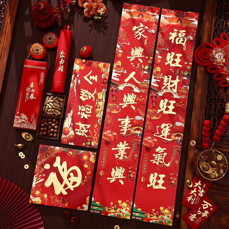 2026马年对联定制春联现货大礼包烫金广告LOGO小礼盒企业银行定做