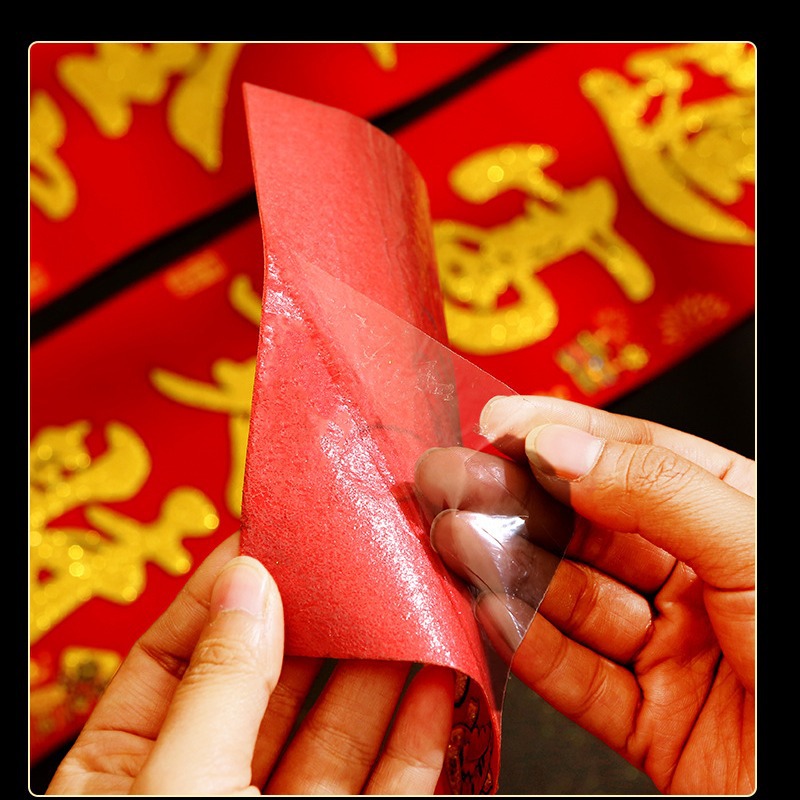 马年新款 2026高档绒布福字带背胶 盒装绒布对联金粉对联 绒布福