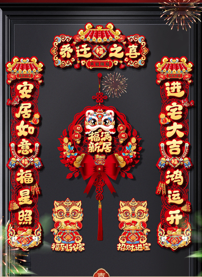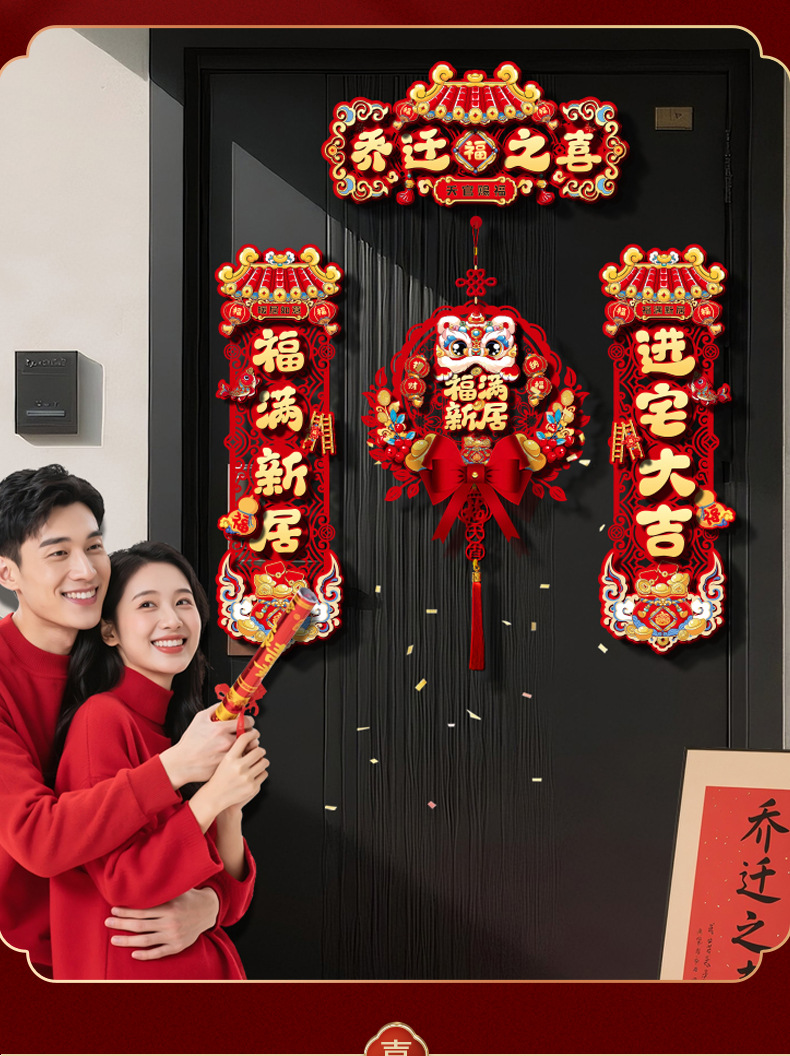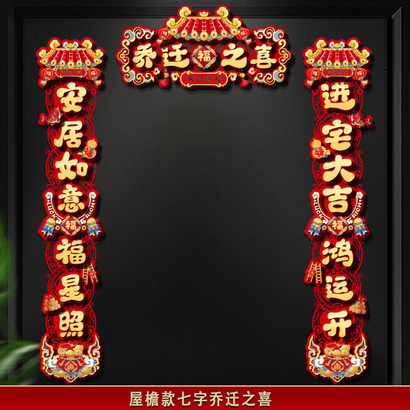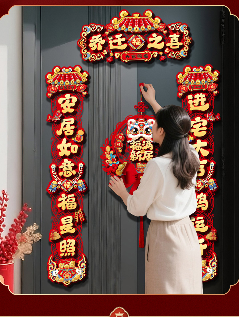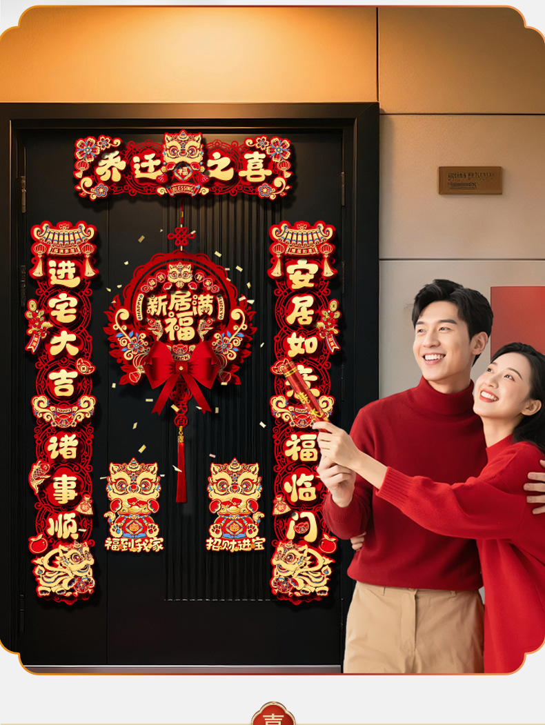 磁吸乔迁之喜装饰对联2026新款新居入伙布置仪式入户门联福字门贴
