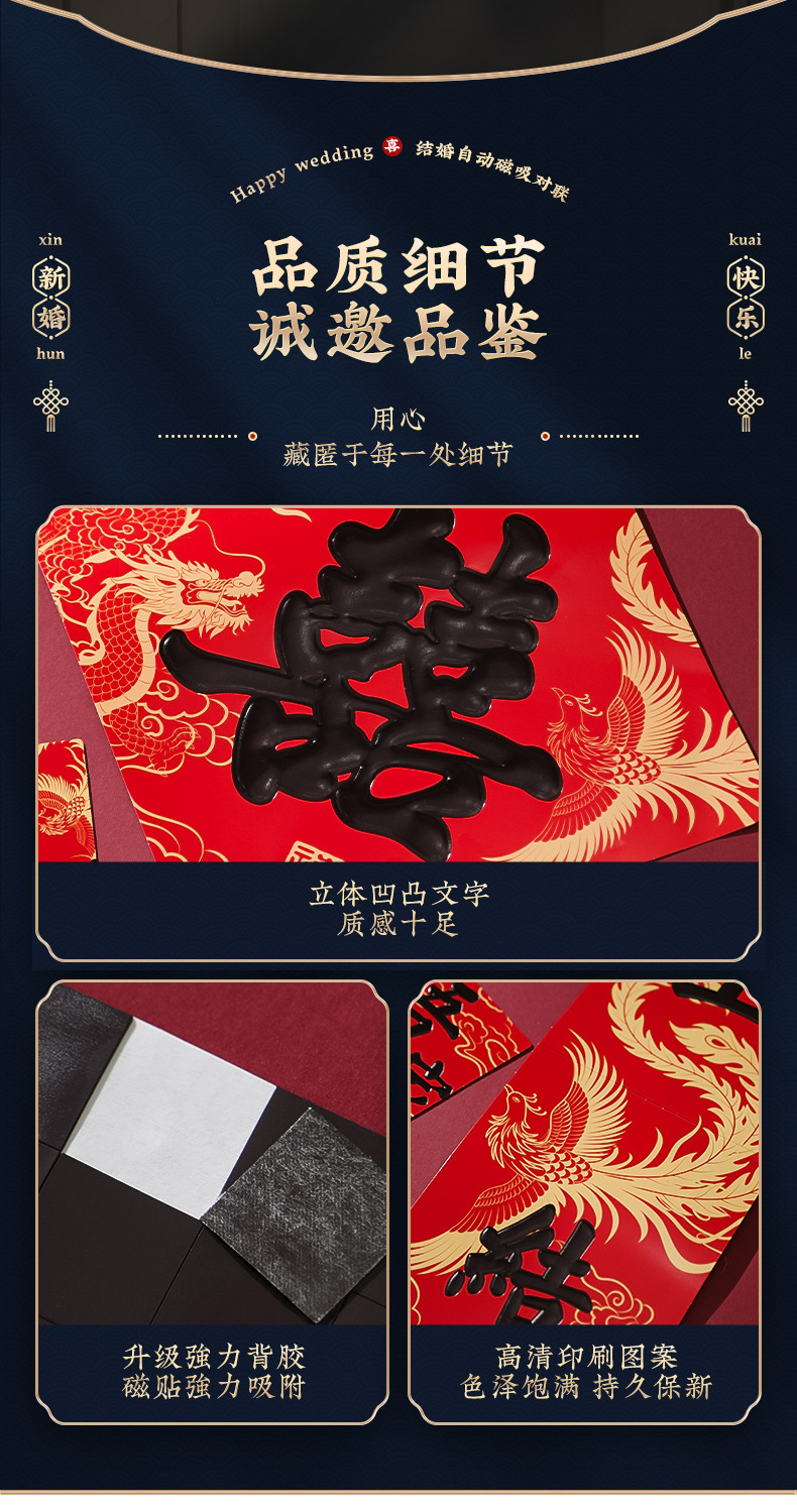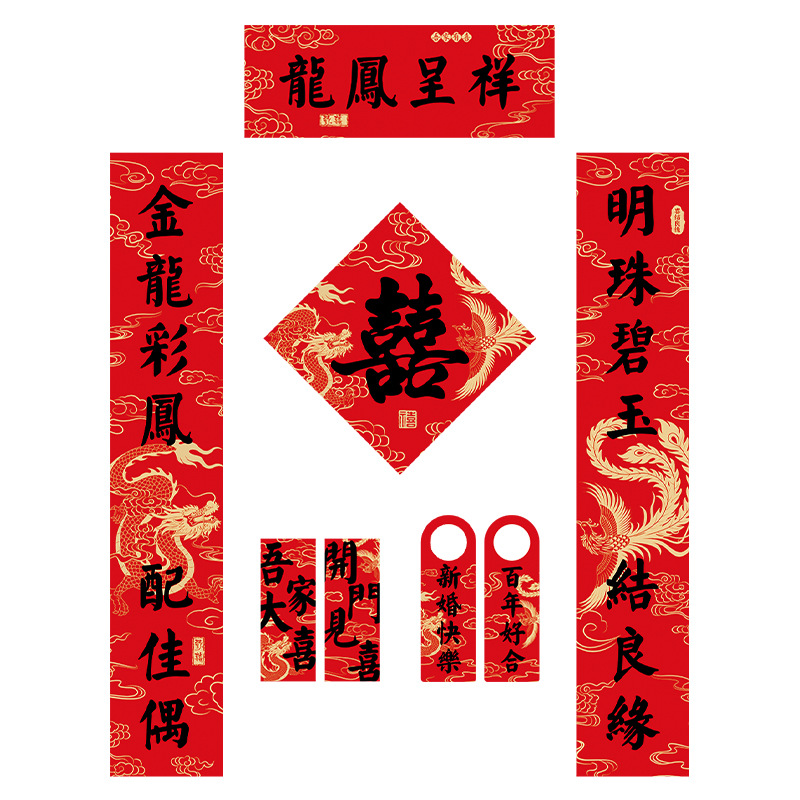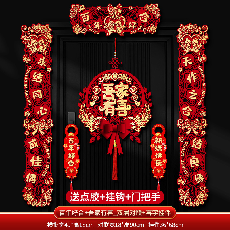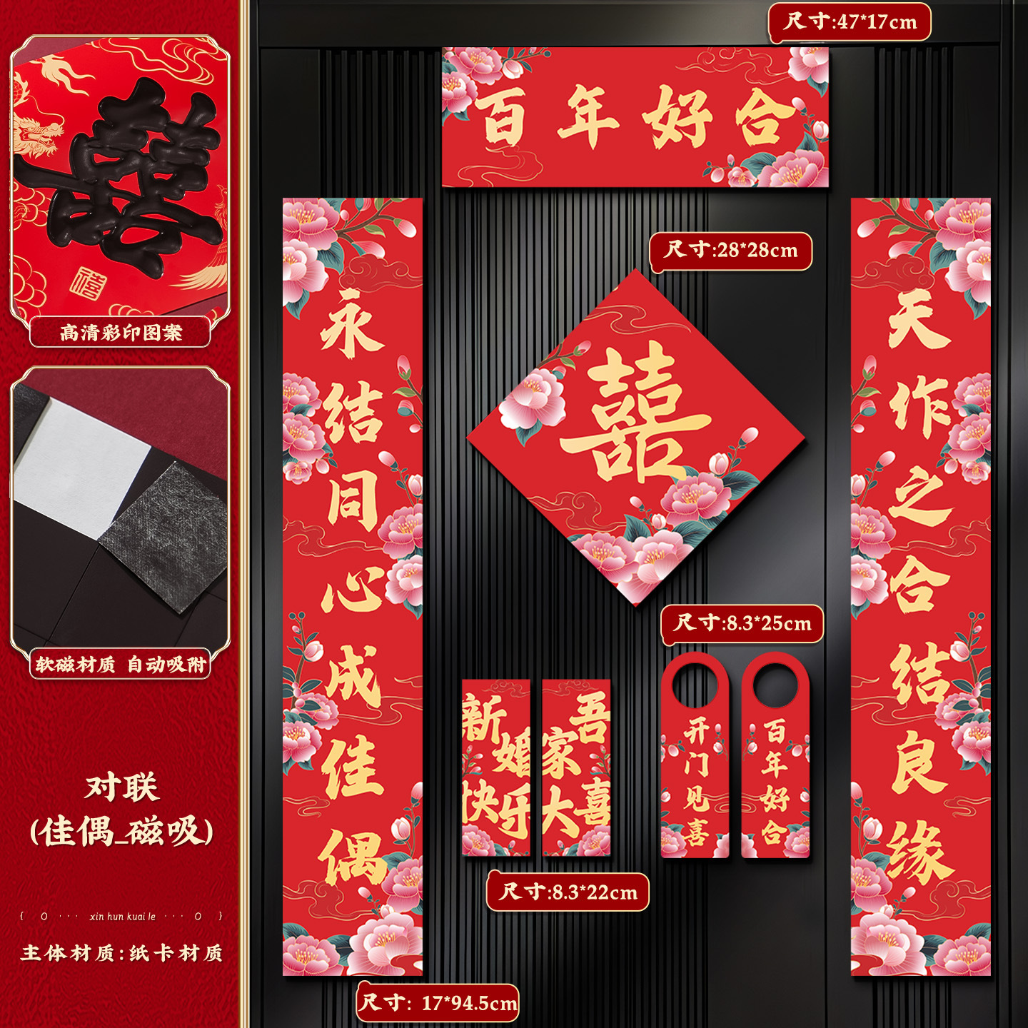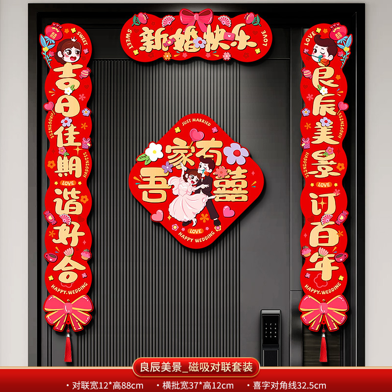 结婚对联磁吸男方入户大门贴新婚礼女方出嫁喜联婚房布置装饰用品