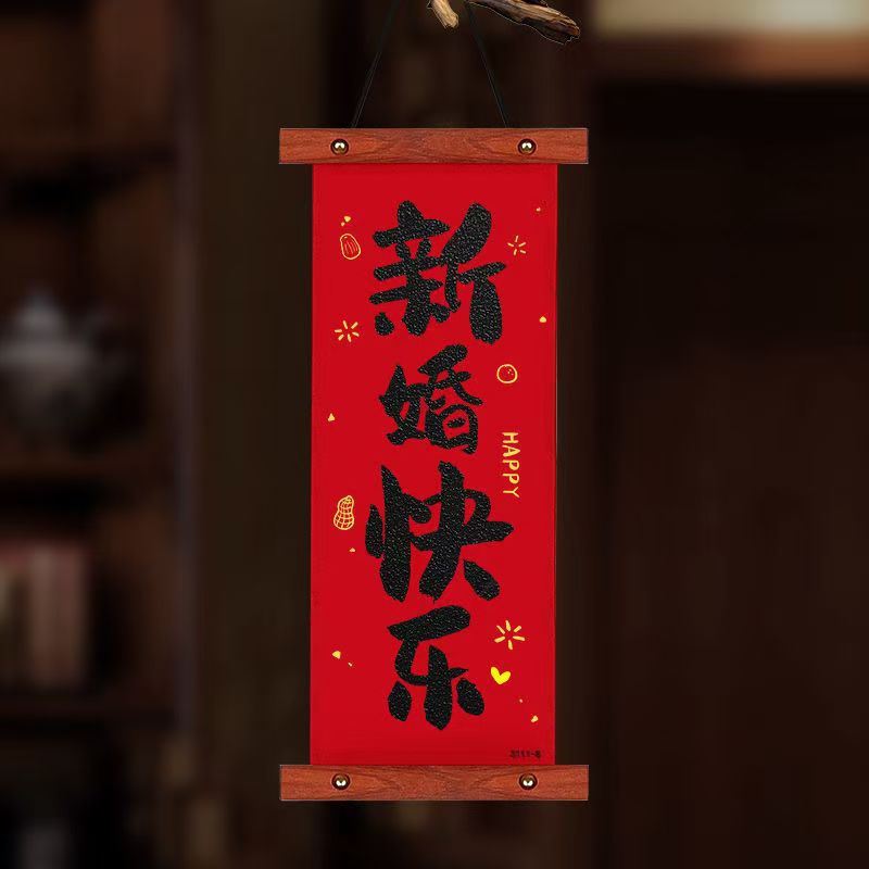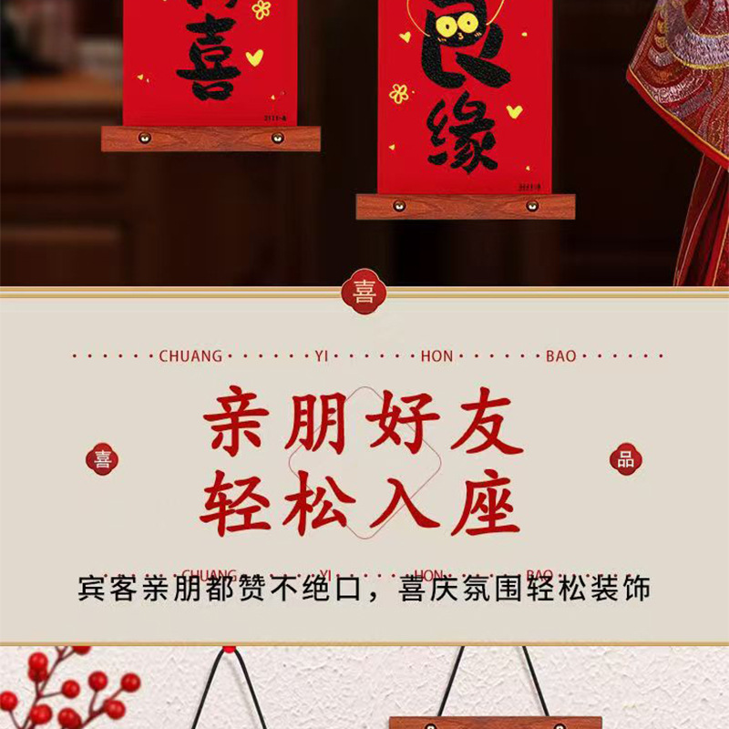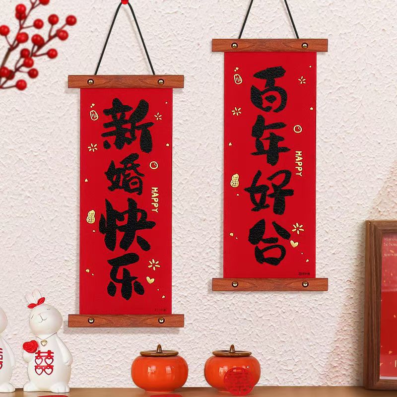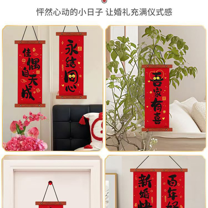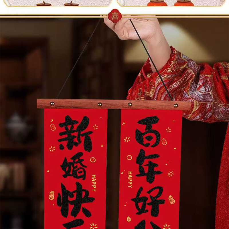 结婚装饰喜字挂件婚房布置绒布小对联婚新房男女卧室客厅喜字挂饰