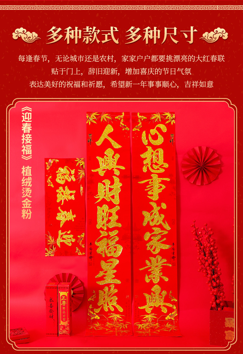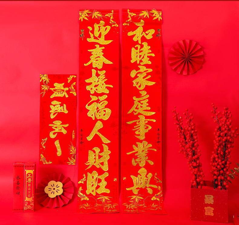 春节对联新款家用植绒烫金大门装饰布置门贴门联新年年货处理对联