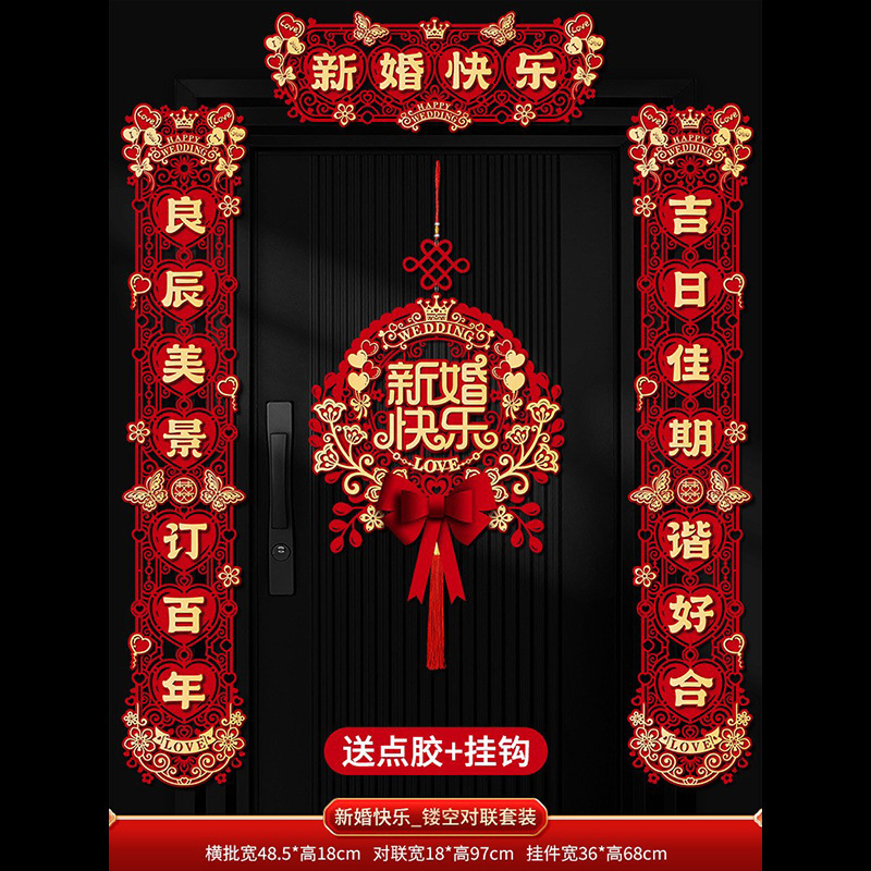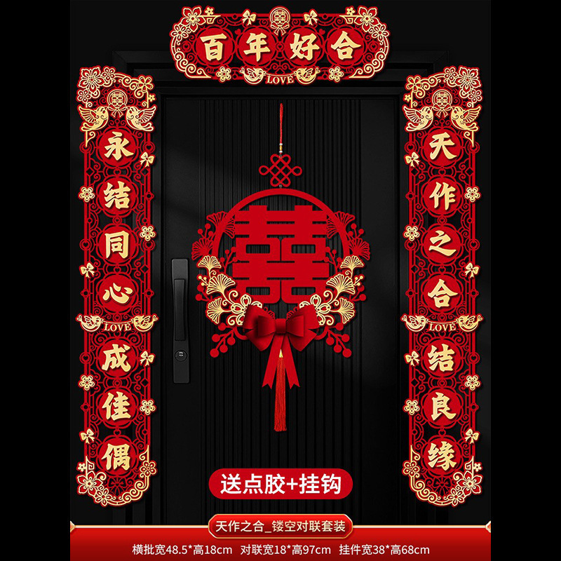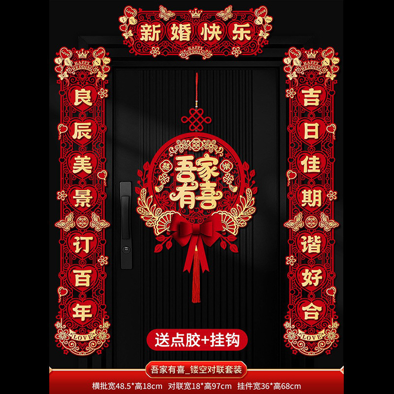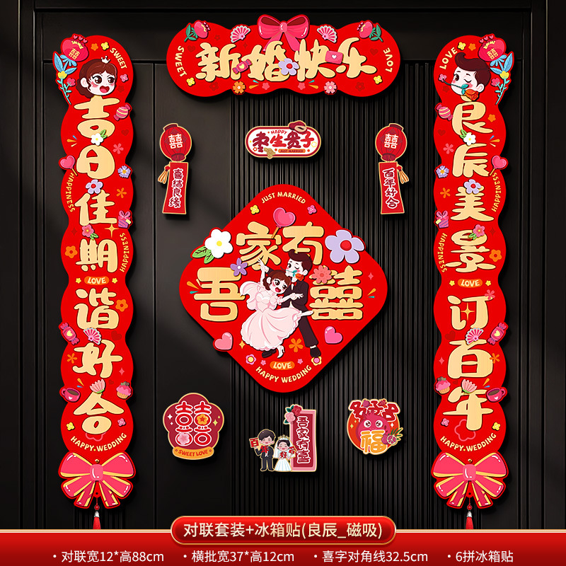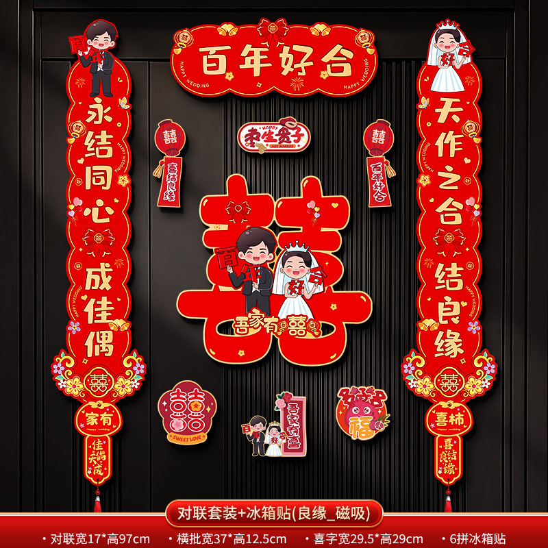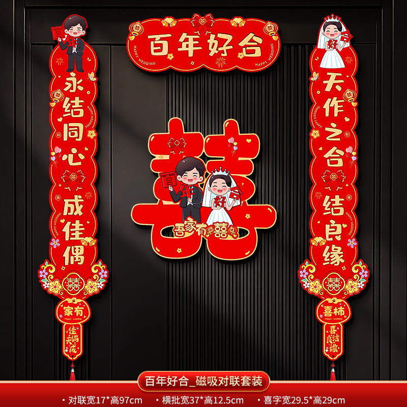 结婚磁吸对联喜字贴男方婚房大门装饰婚礼女方入户门出嫁喜联全套