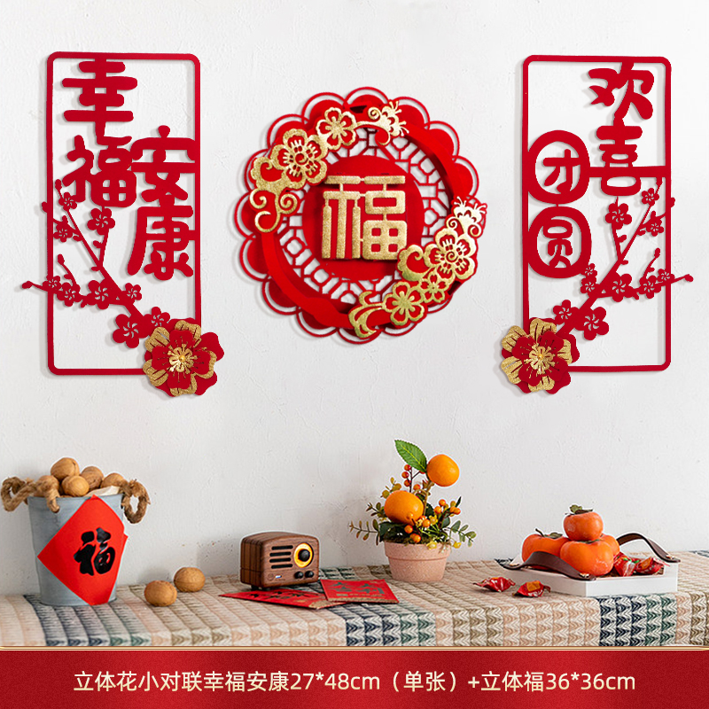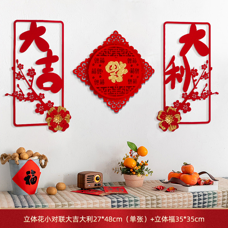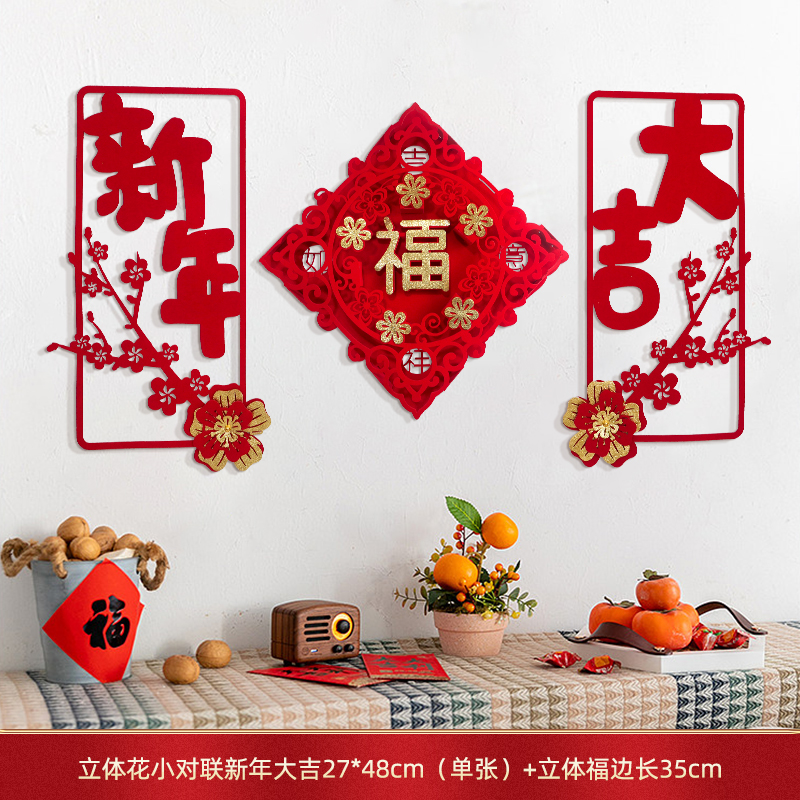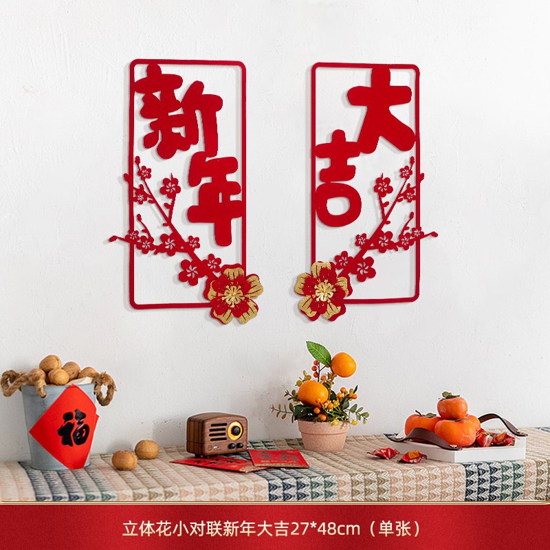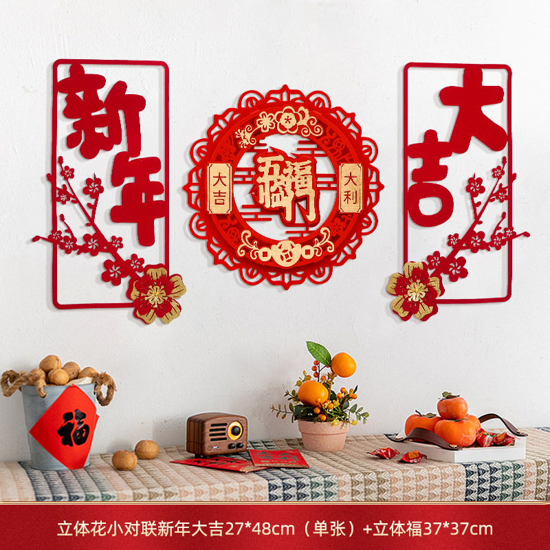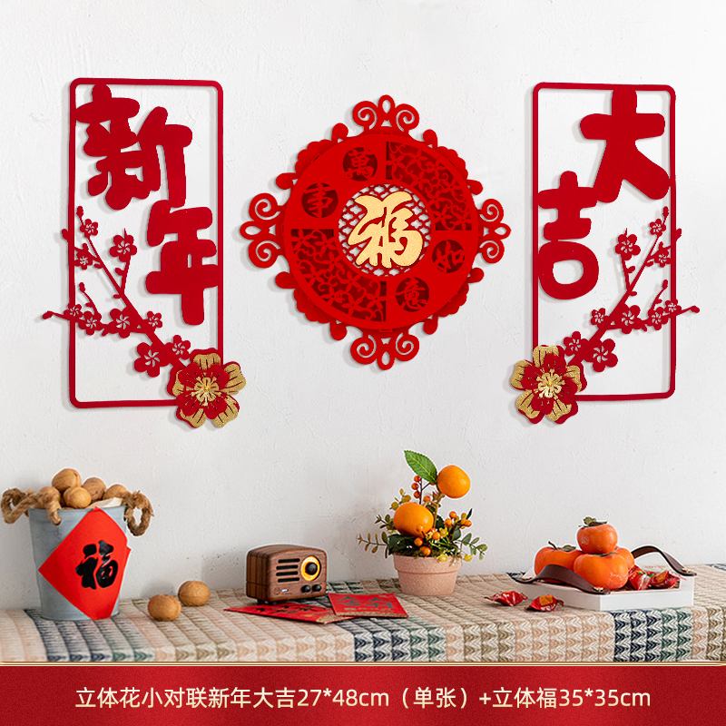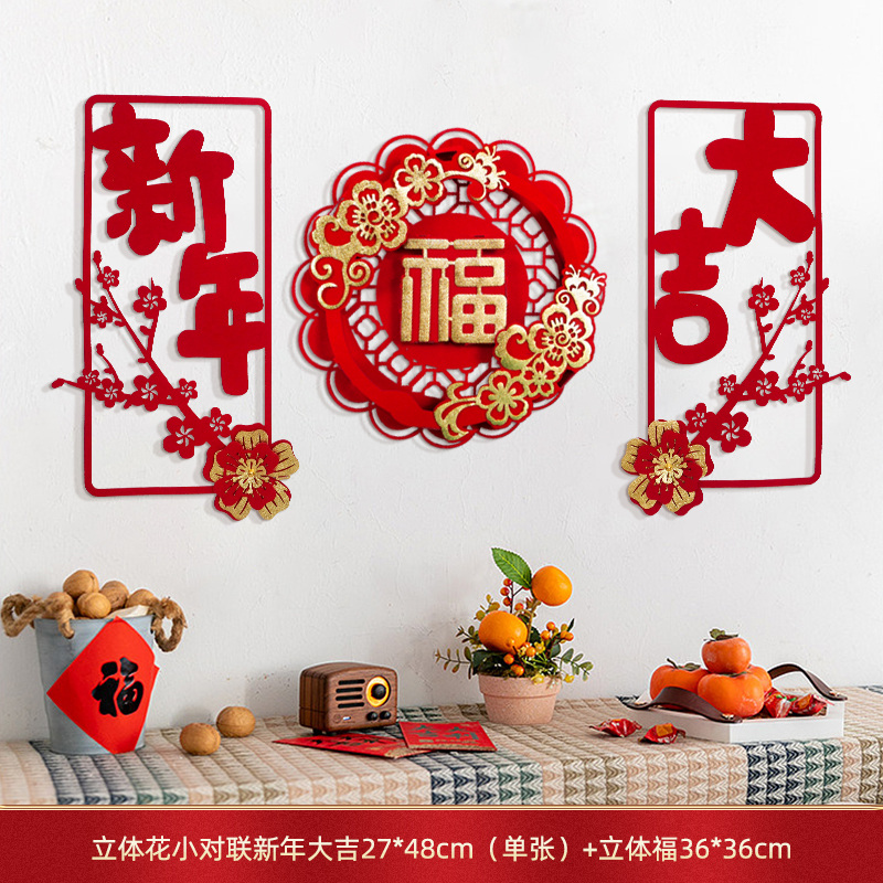 新年装饰春节福字门贴纸墙贴小对贴2024龙年对联春联新款立体花朵