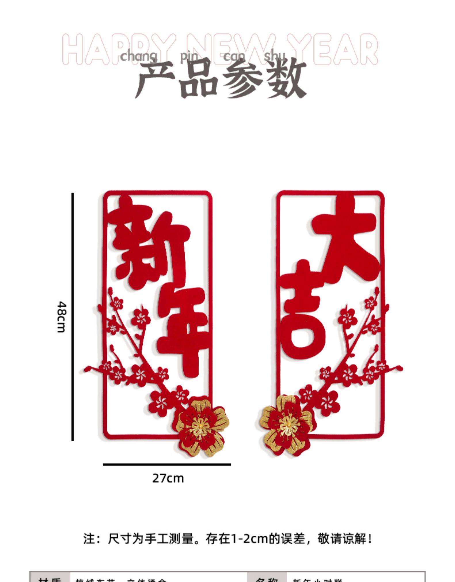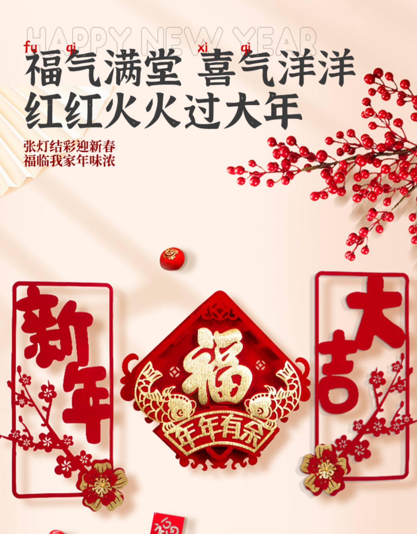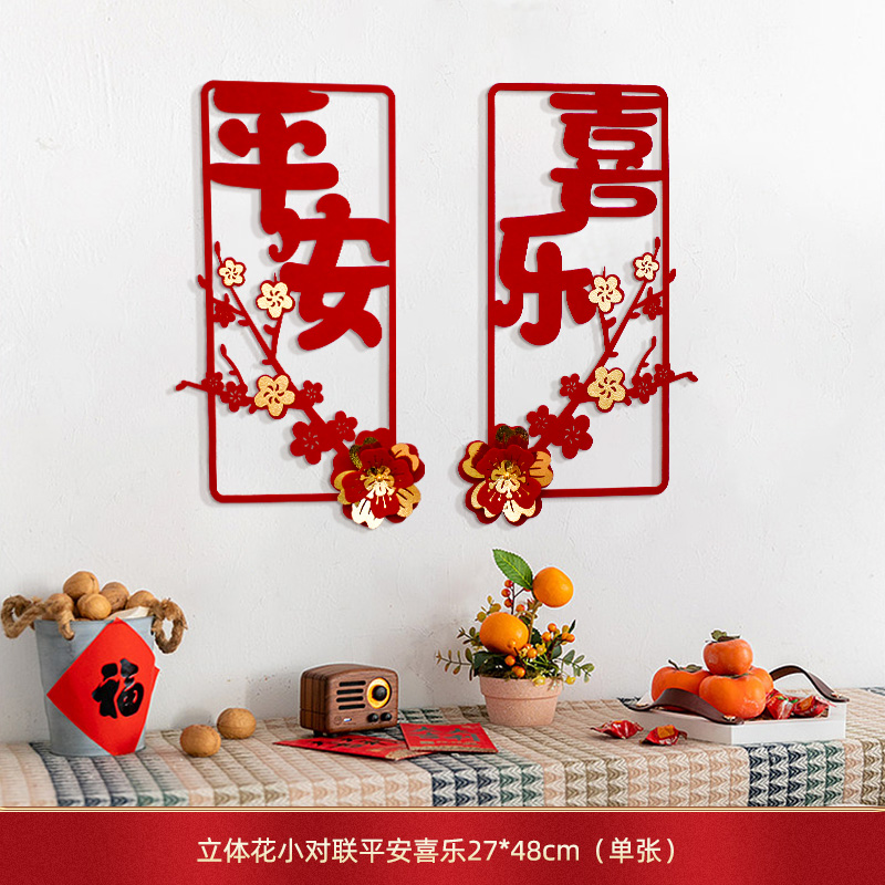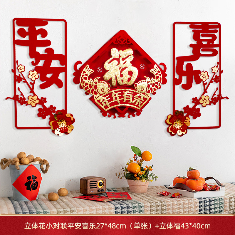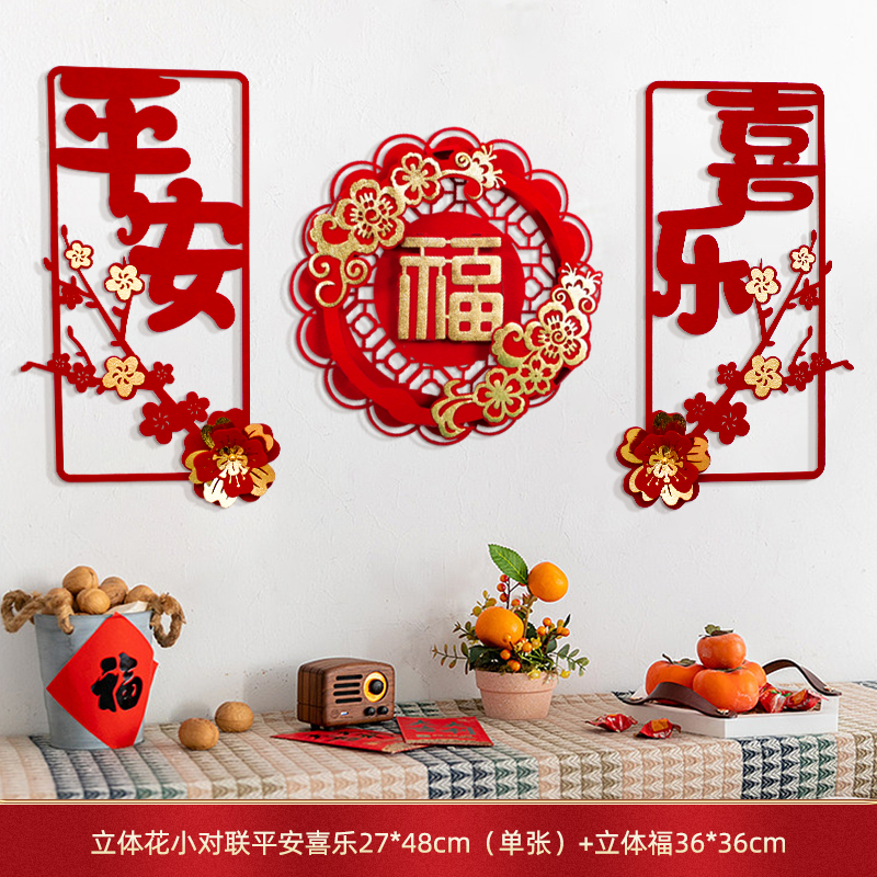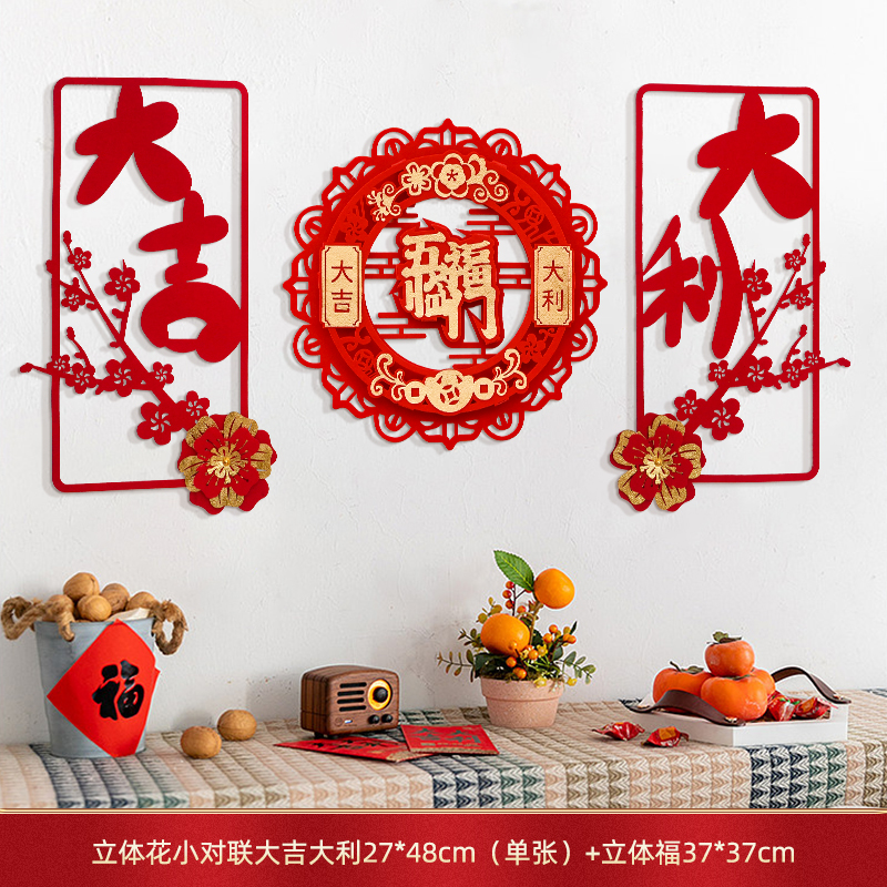 新年装饰春节福字门贴纸墙贴小对贴2024龙年对联春联新款立体花朵