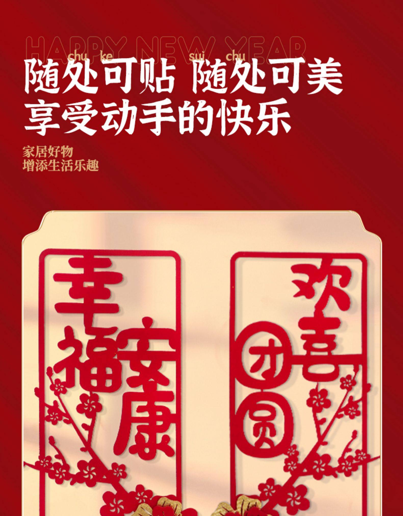| new year small antithetical couplet wall stickers (with glue)(新年小对联墙贴(配胶)) | USD $6.44 | 220 piece available |
