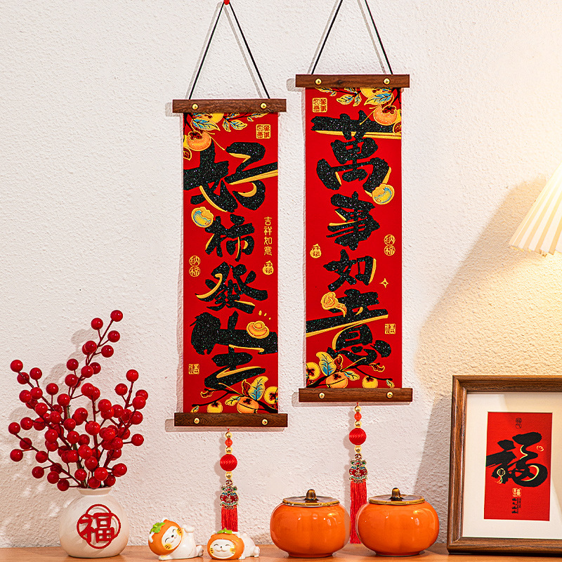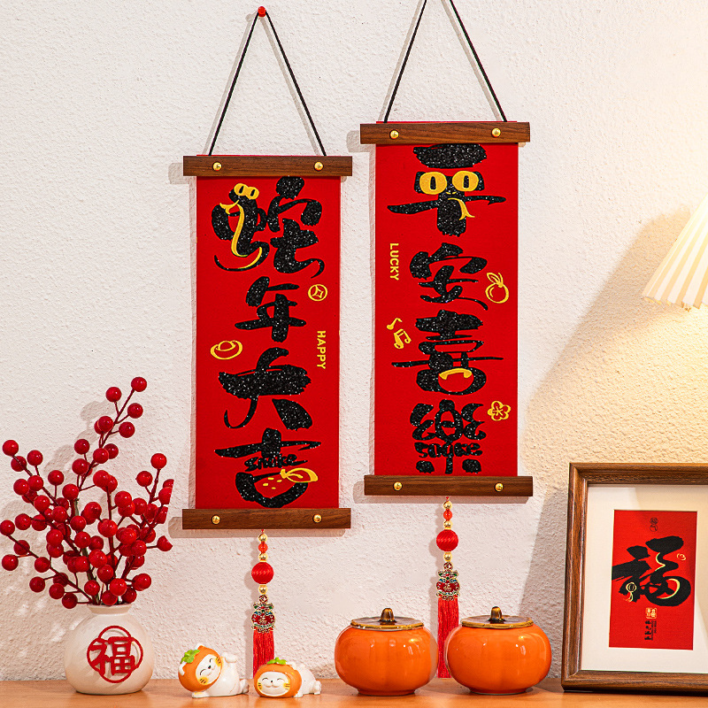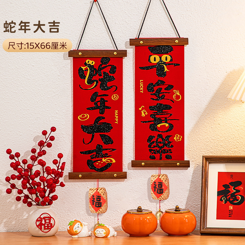 小对联2025新款蛇年春联绒布过年春节家用福字贴挥春入户门挂装饰