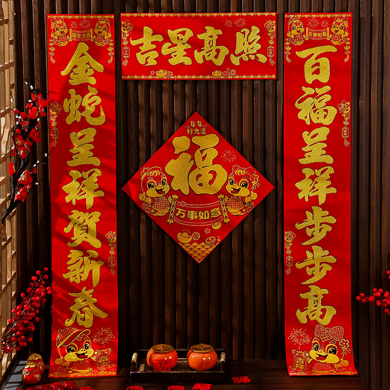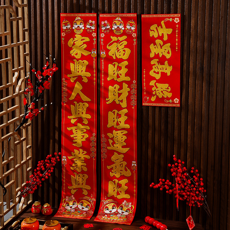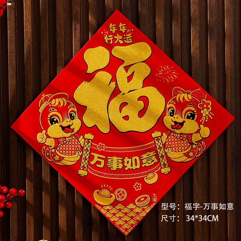 新年福字对联乔迁烫金绒布2026马年对贴春节自粘大门装饰品批发