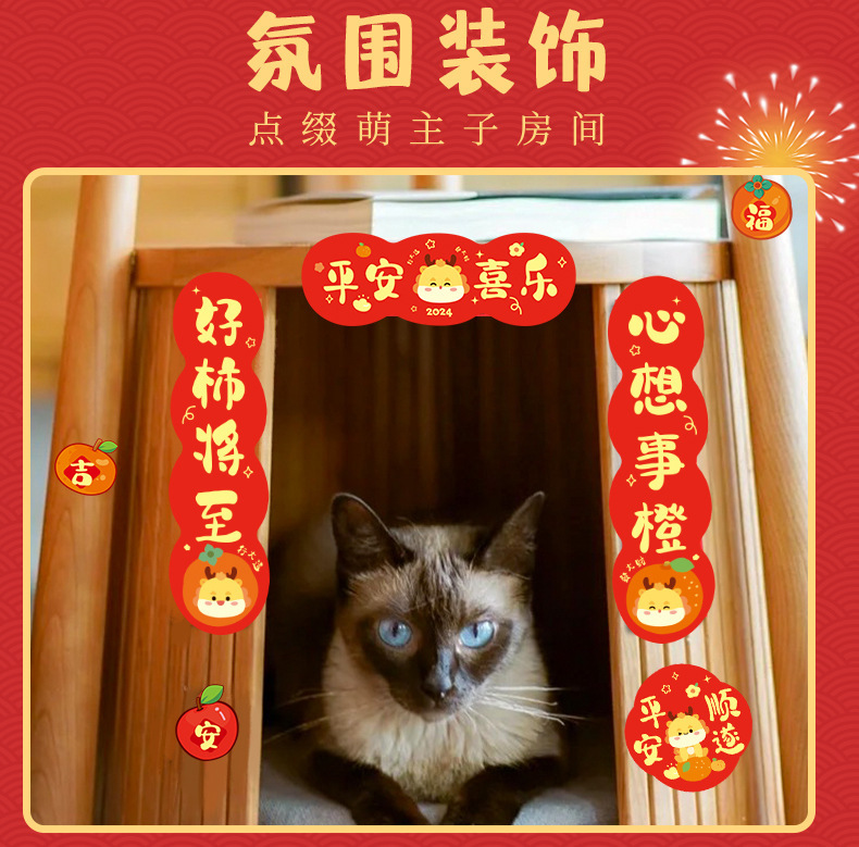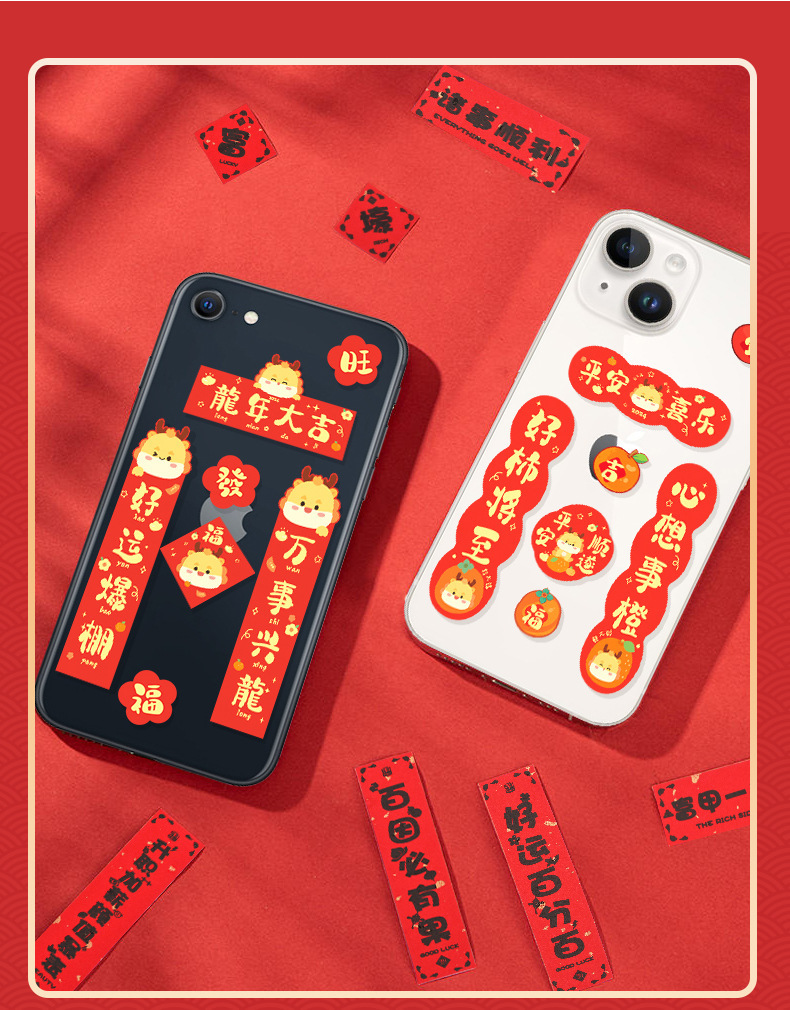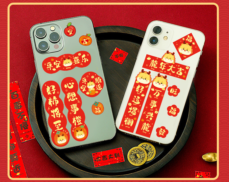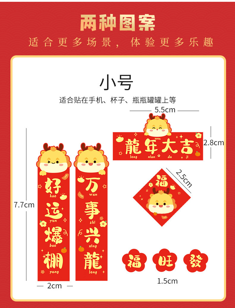 春节对联趣味迷你小对联手机贴纸可爱装饰贴纸平板贴宠物门联装饰