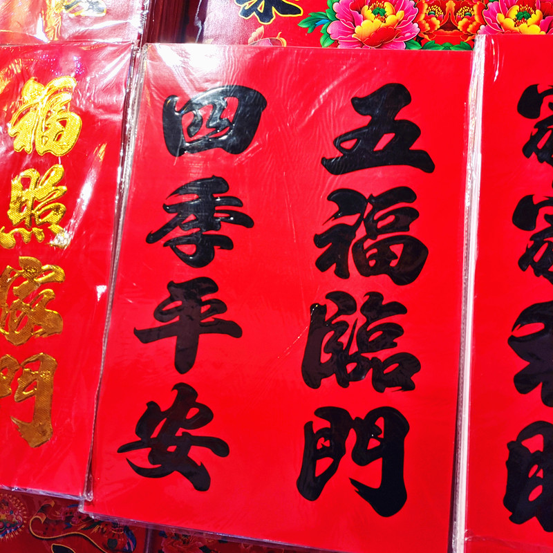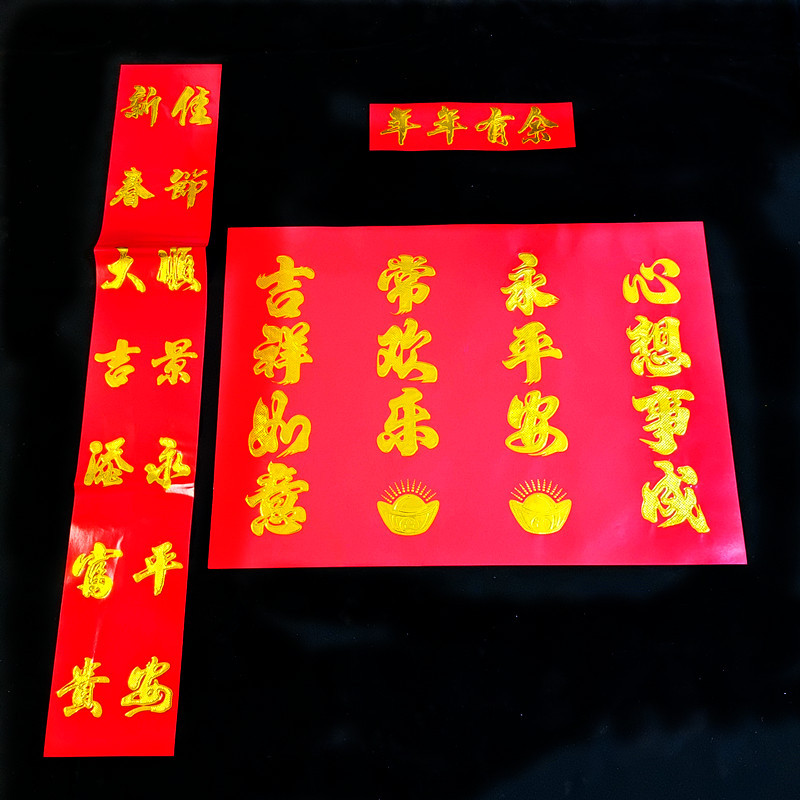 春节喜庆门贴对联 铜板纸红卡净面四字单门七字双门春联门联批发