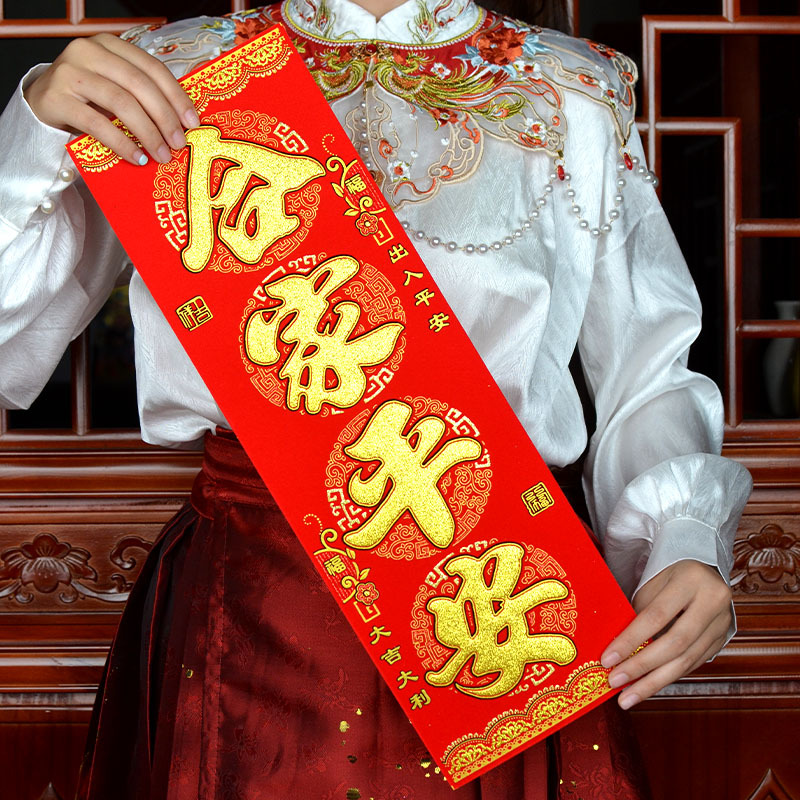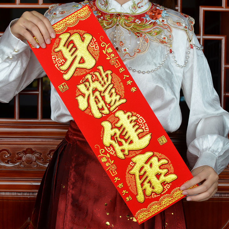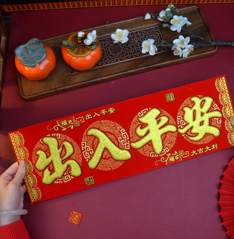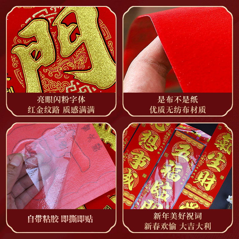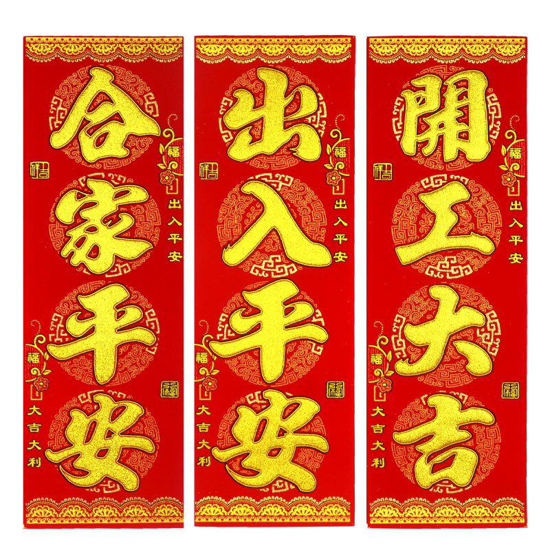 港版繁体字挥春绒布自粘身体健康出入平安喜乐四字小对联开工大吉