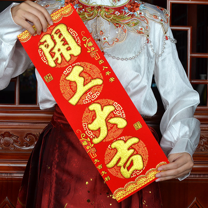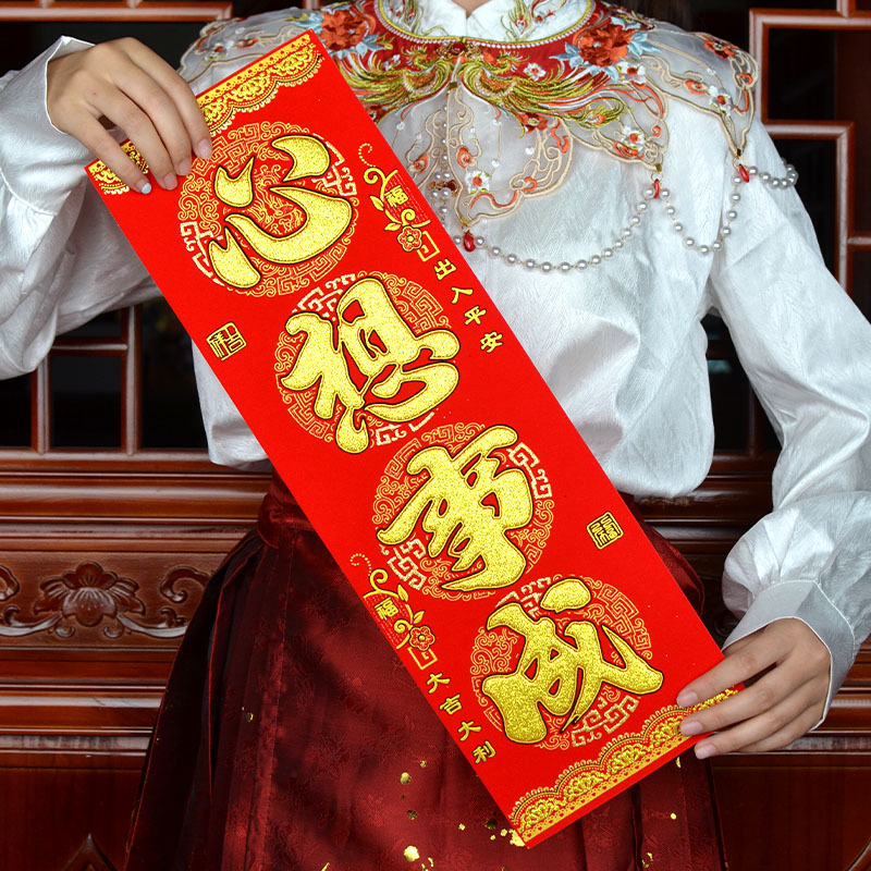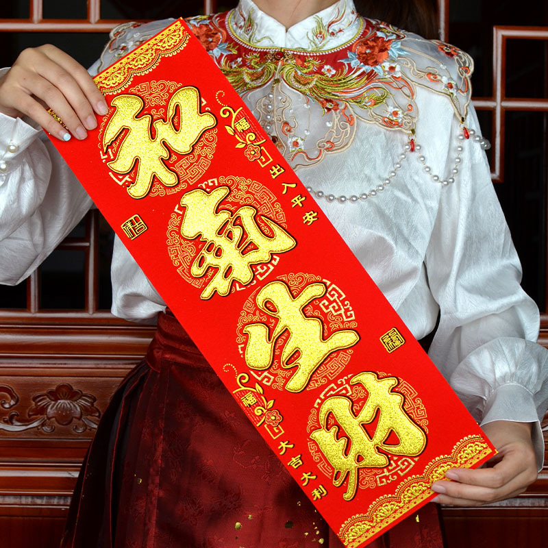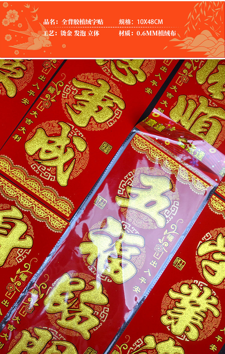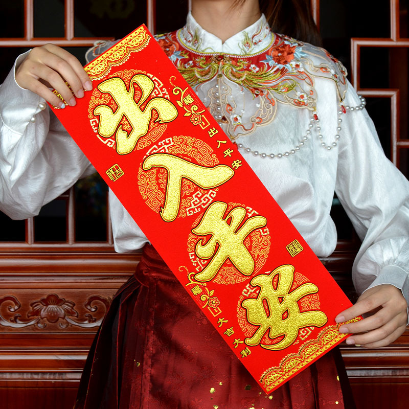 港版繁体字挥春绒布自粘身体健康出入平安喜乐四字小对联开工大吉