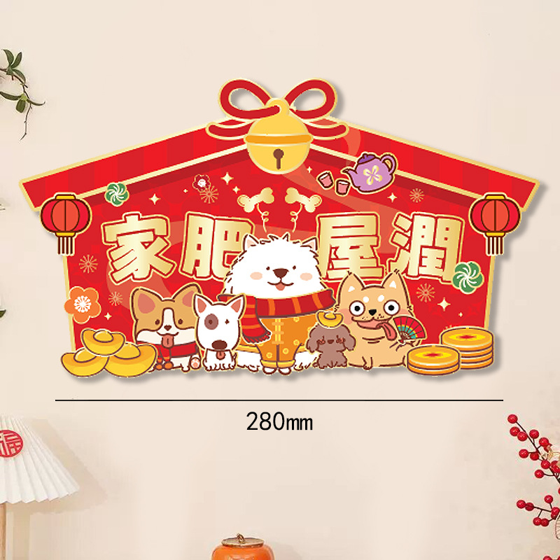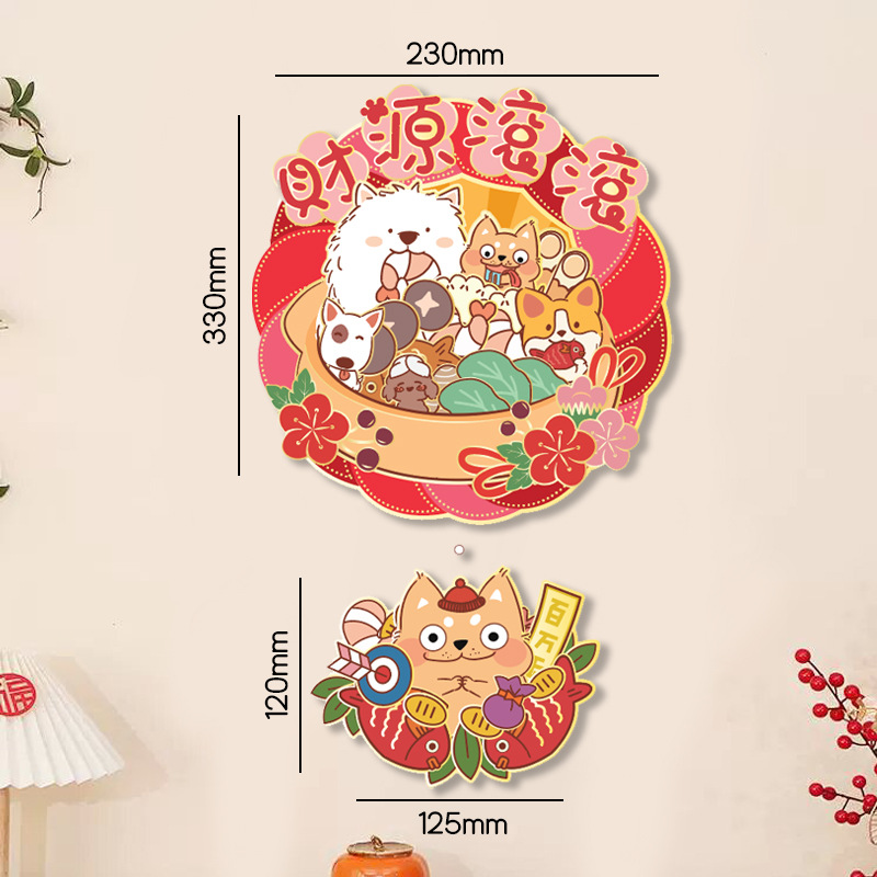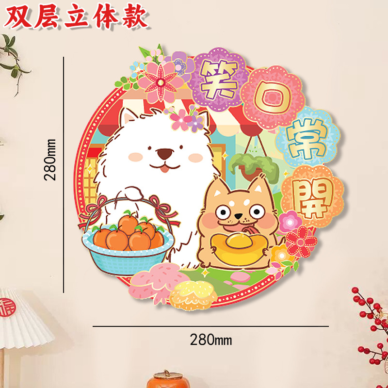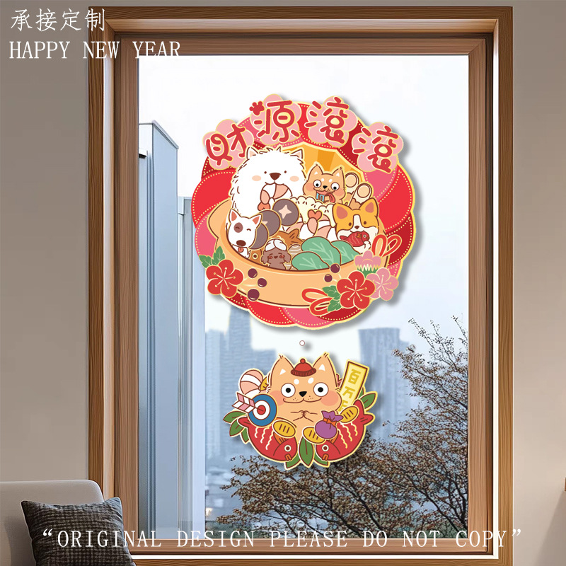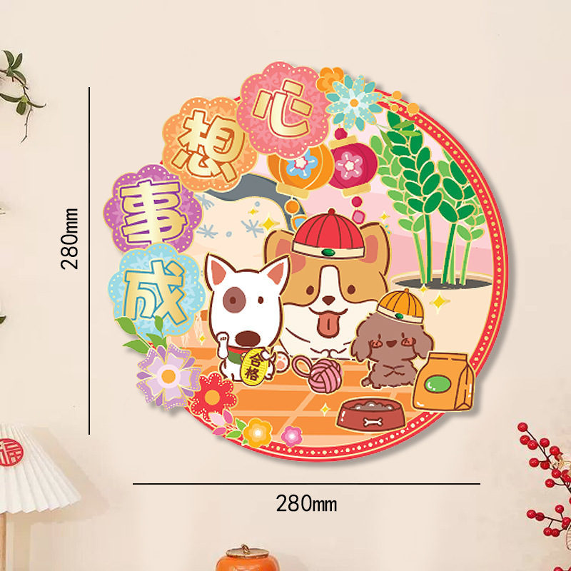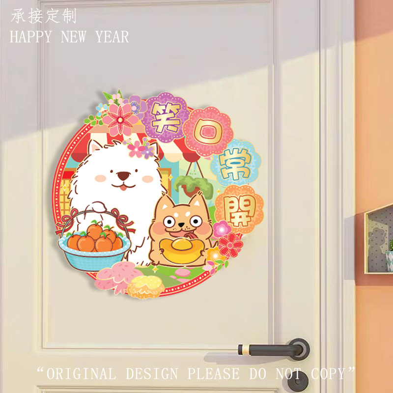 小狗门幅珲春室内装饰品置高级感窗贴卡通花开富贵喜庆门贴可批发