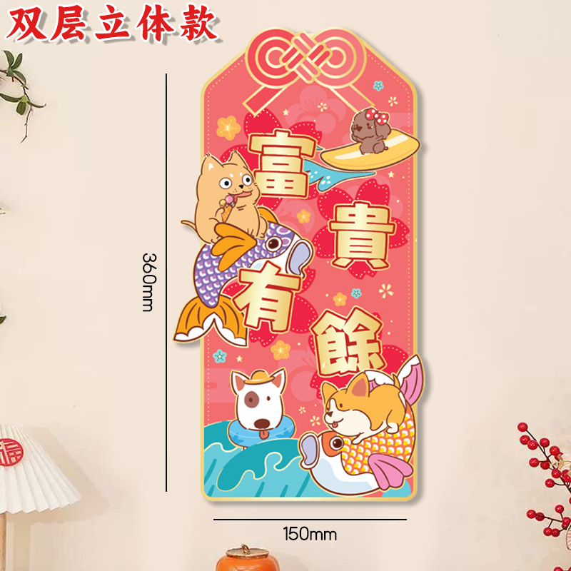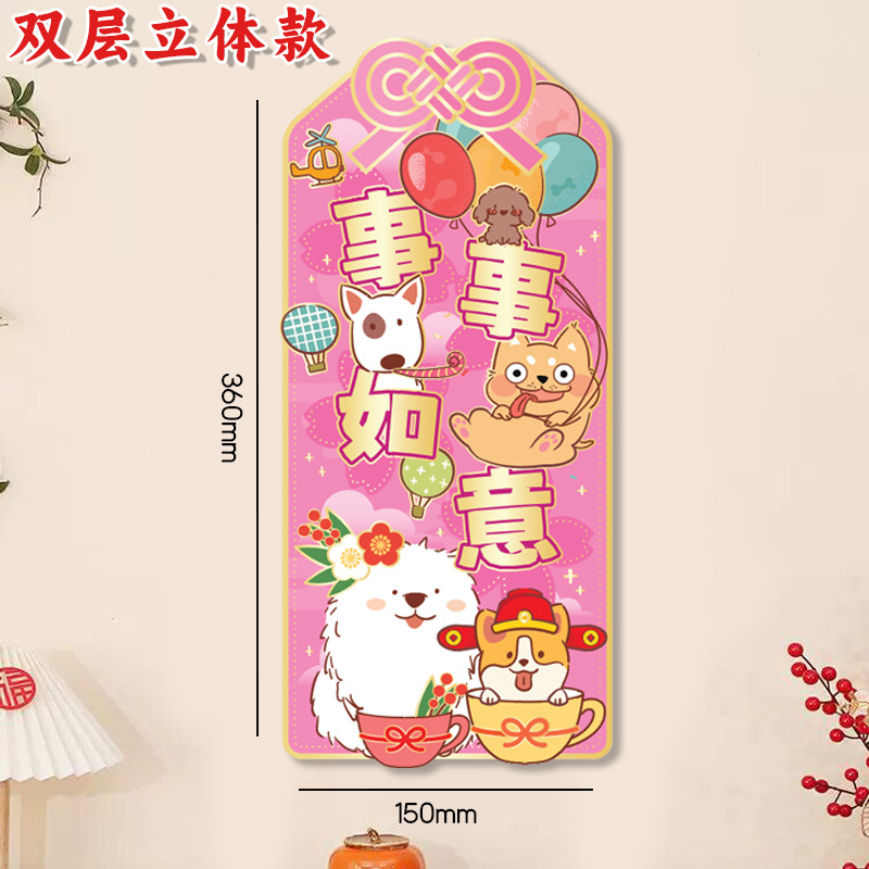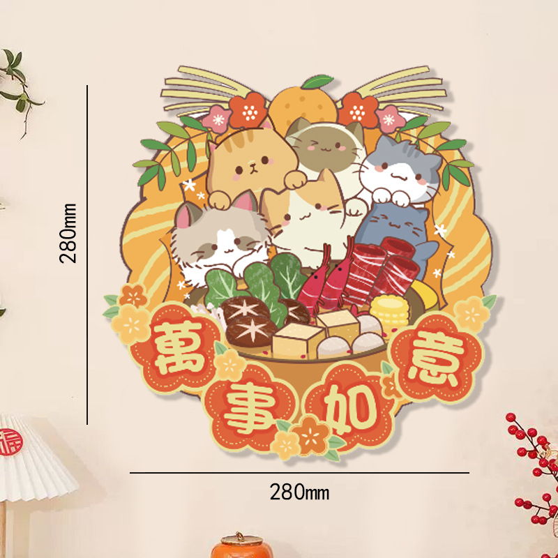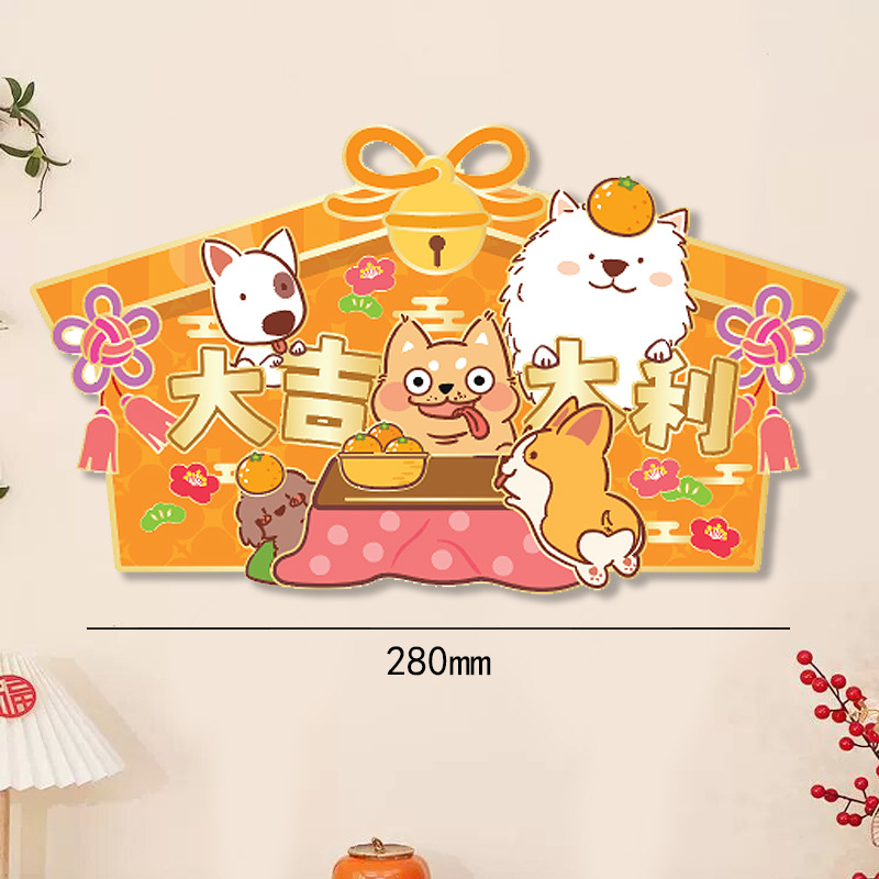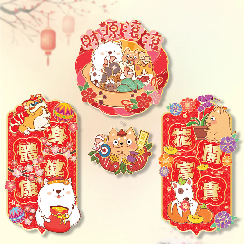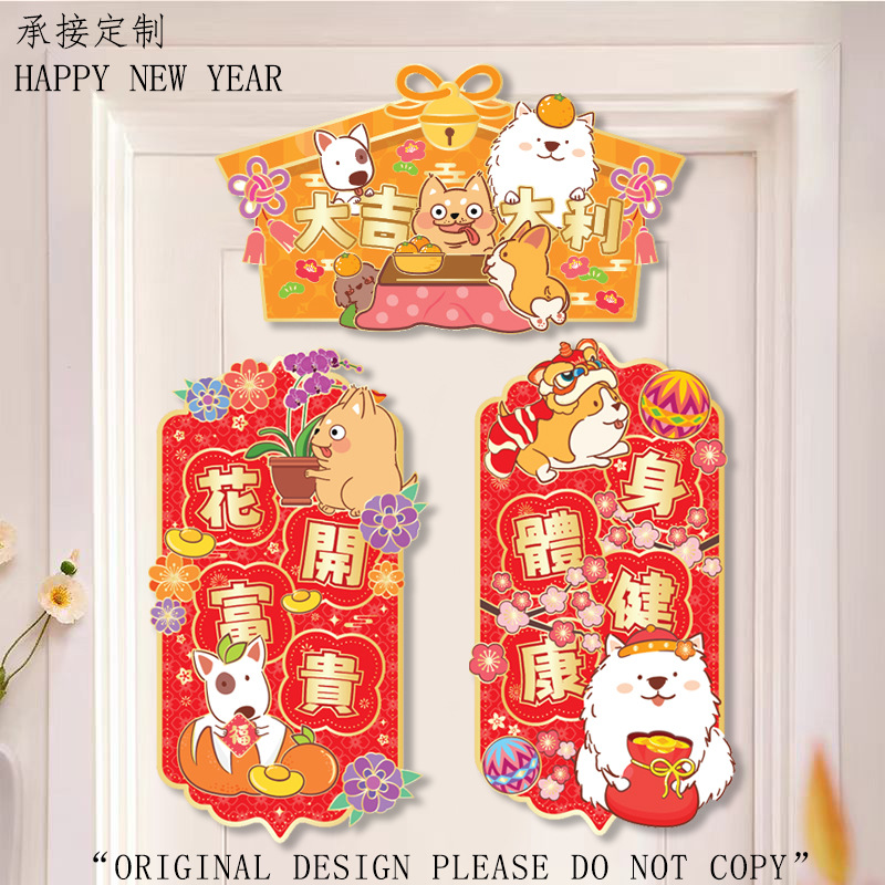 小狗门幅珲春室内装饰品置高级感窗贴卡通花开富贵喜庆门贴可批发