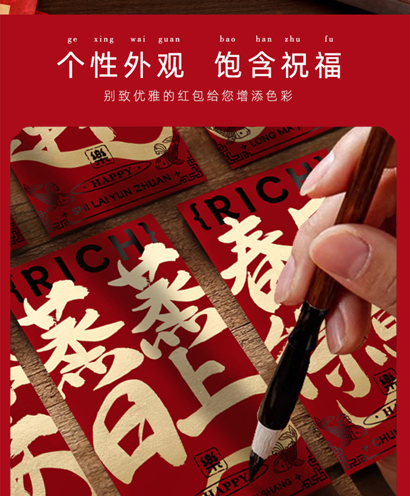 现货2026马年书法新年红包结婚定亲烫金LOGO利事封公司创意红包封