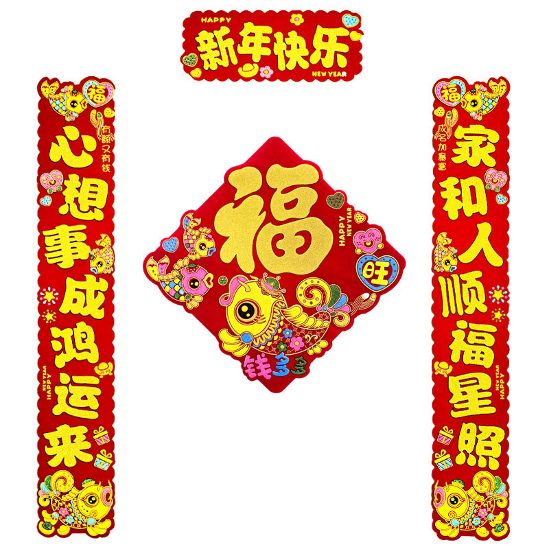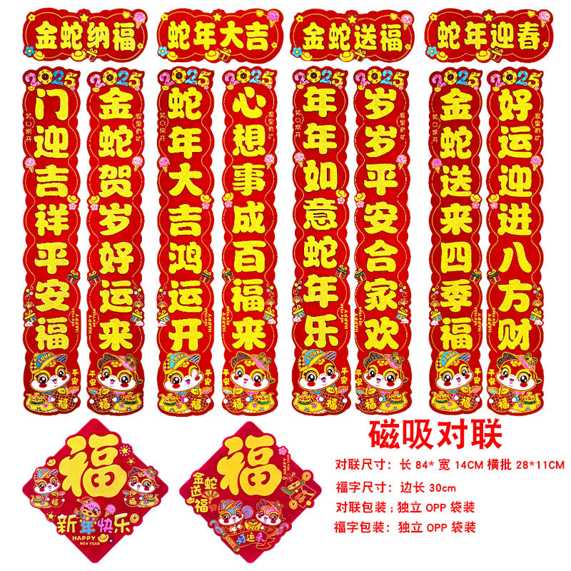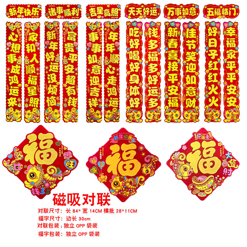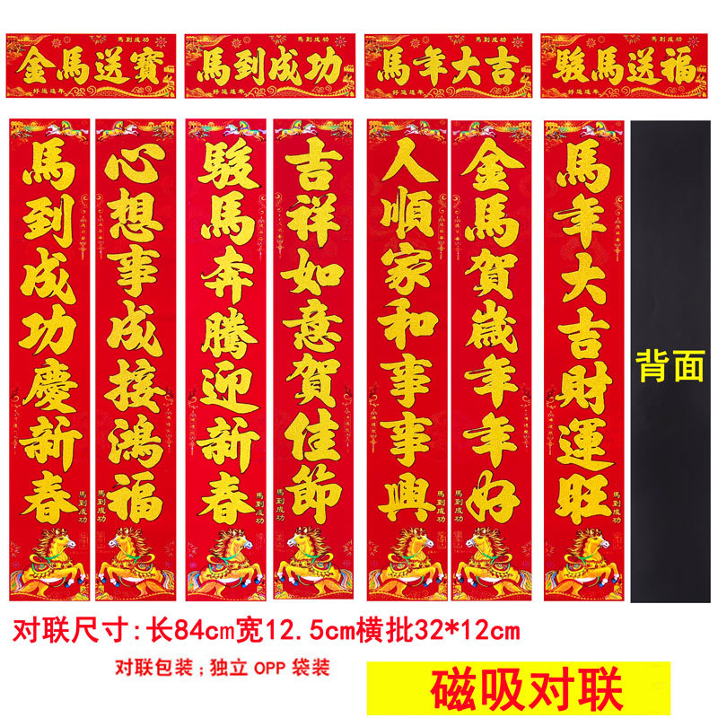 2026马年磁吸对联春节新年免胶粘防盗门植绒金粉磁性福字厂家批发
