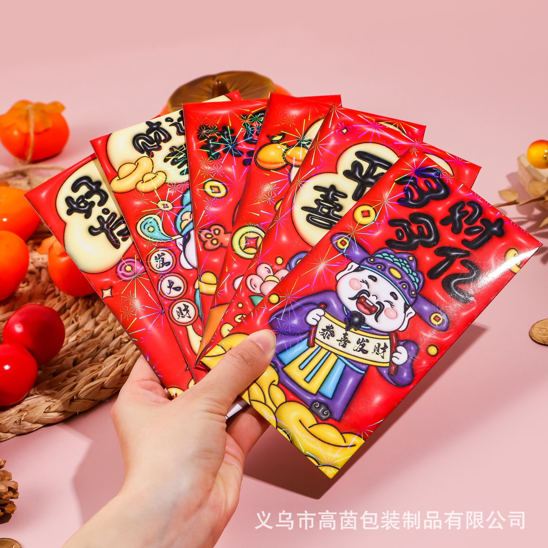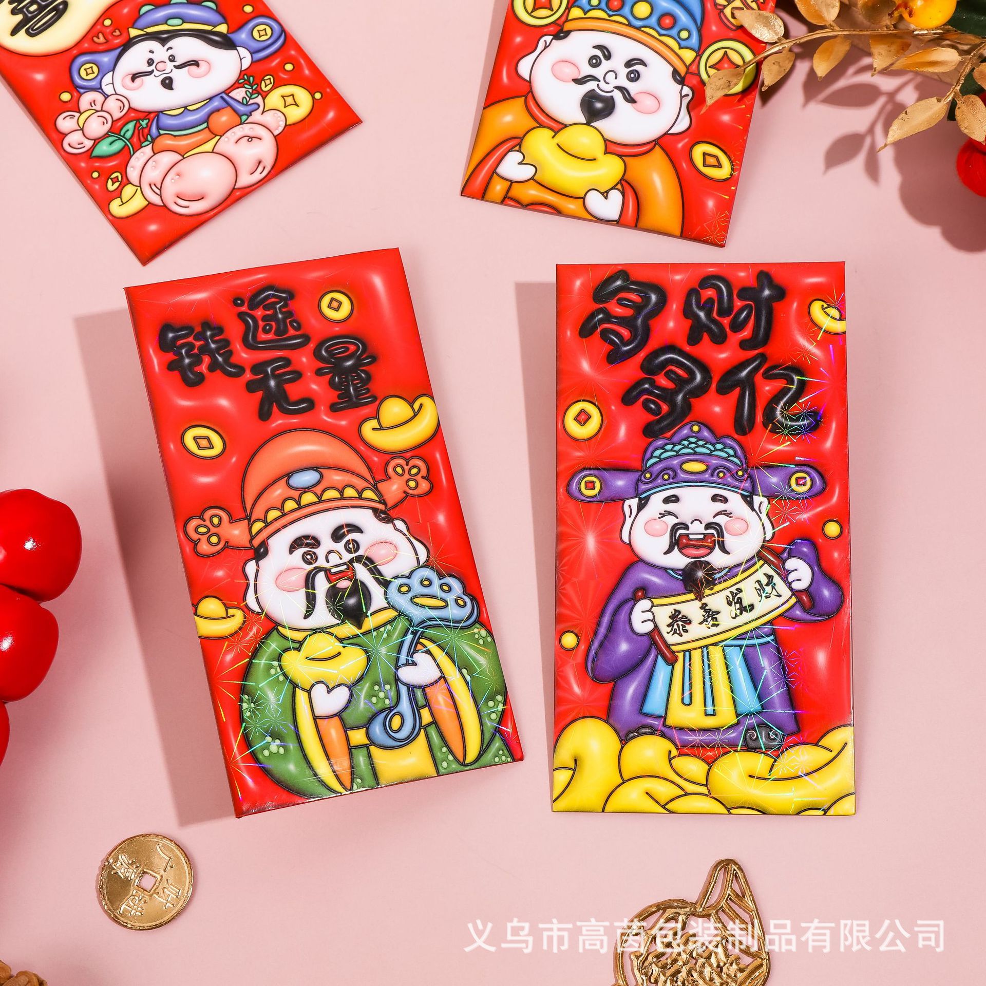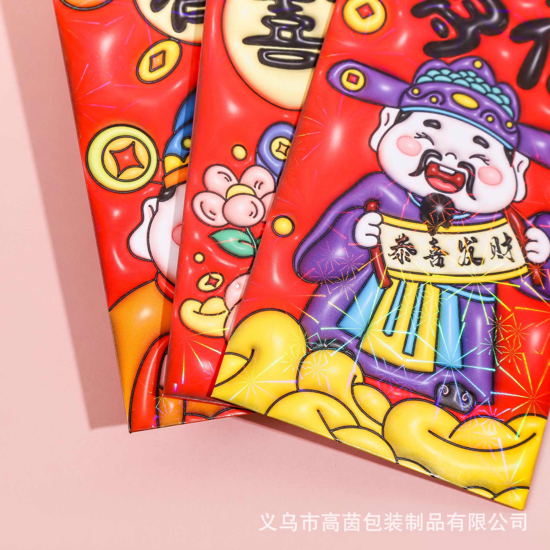 2025新款蛇年镭射3D立体膨胀红包创意财神红包过年压岁利是封批发