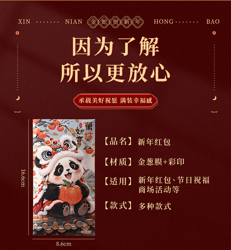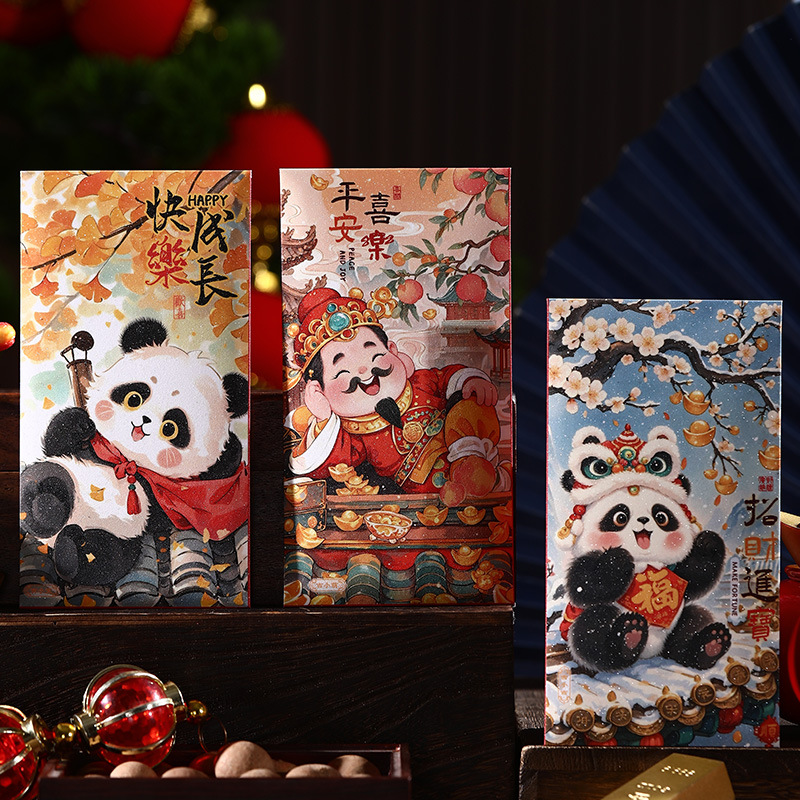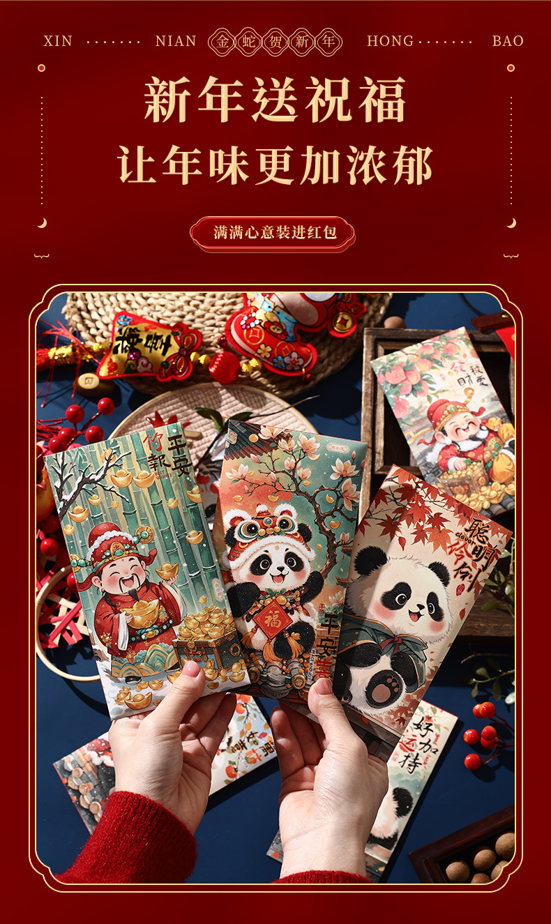 2025年财神新年创意国风熊猫蛇年红包春节压岁卡通可爱春节利是封