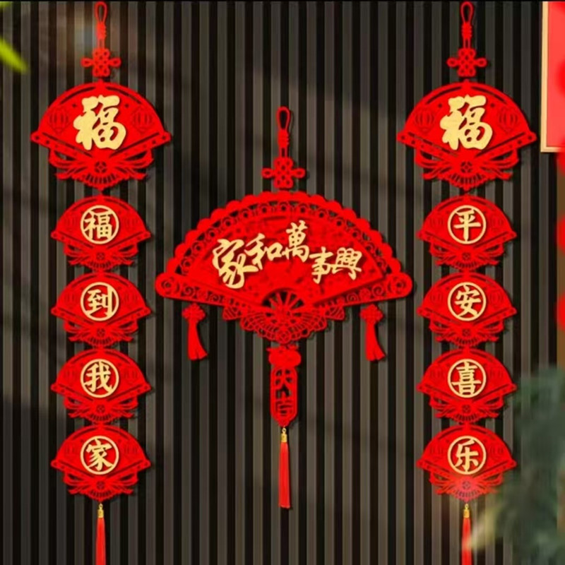 新年对联立体植绒布春联套装春节氛围布置组合客厅电视墙装饰挂饰