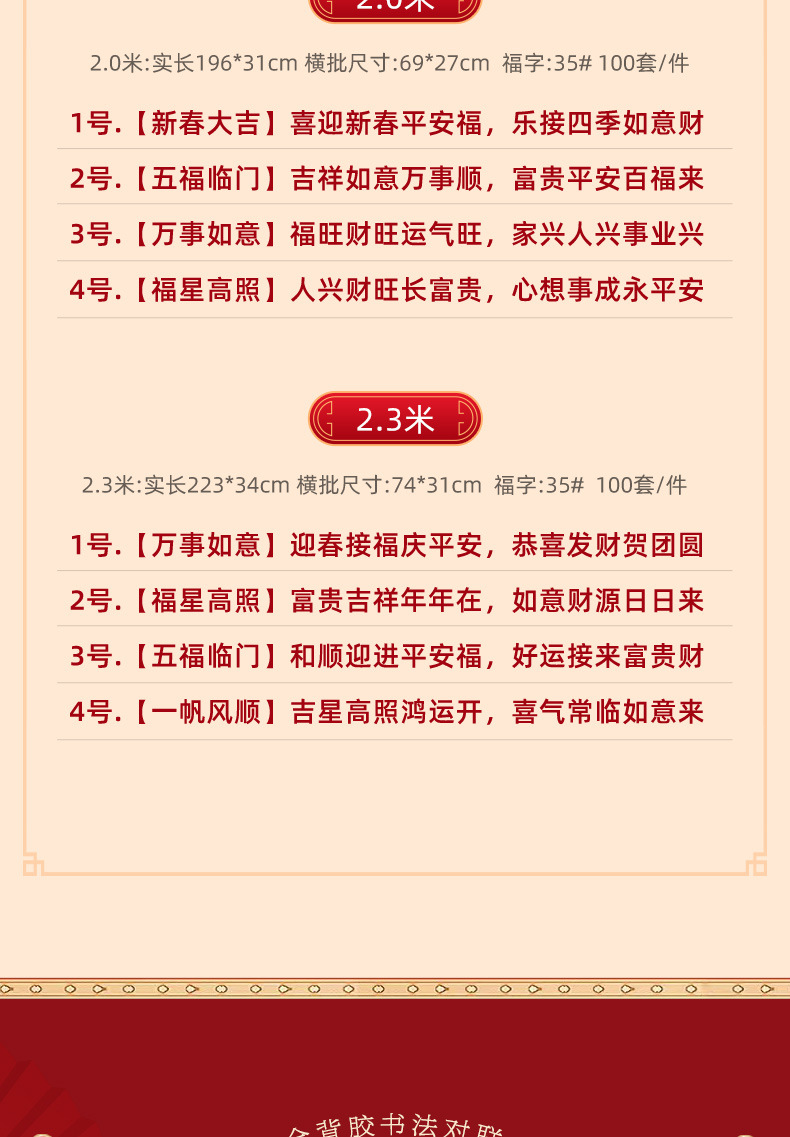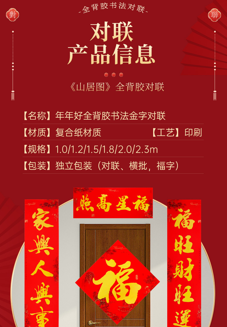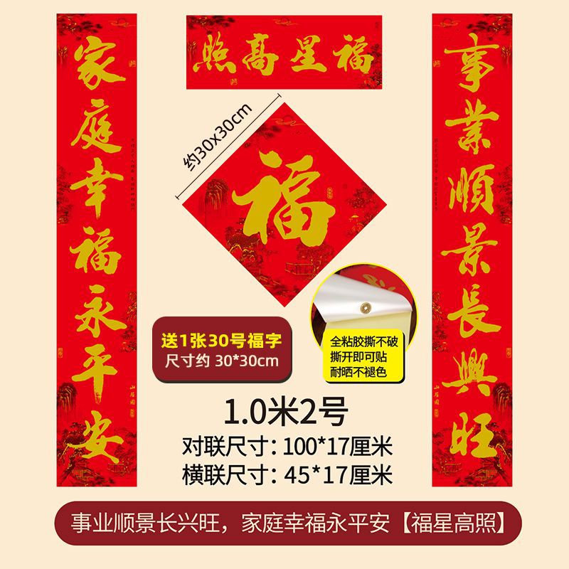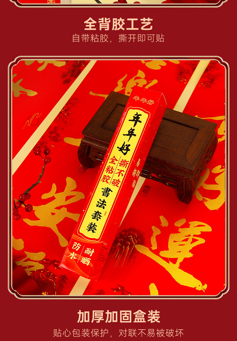 年年好新款春联新年书法金字背胶对联春节大门装饰福字门贴盒装