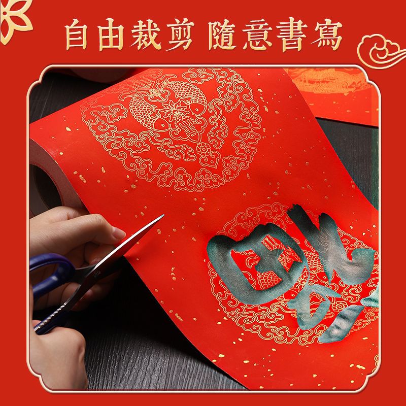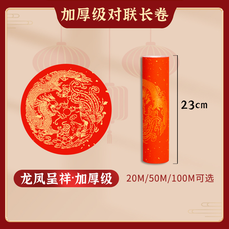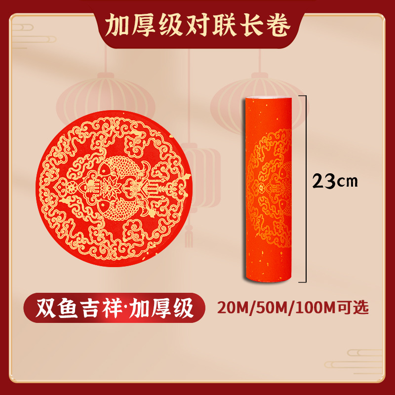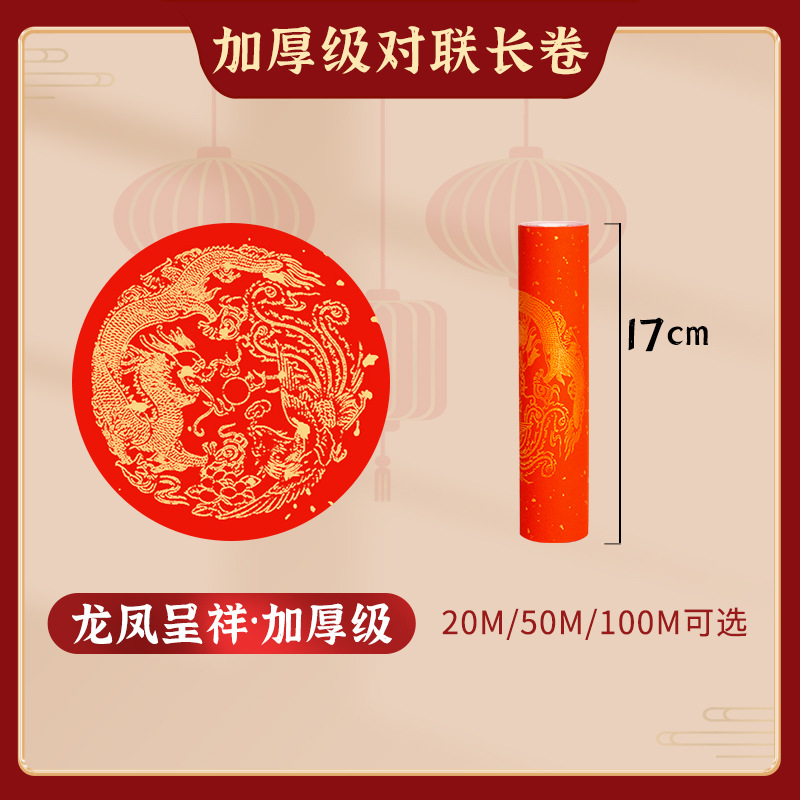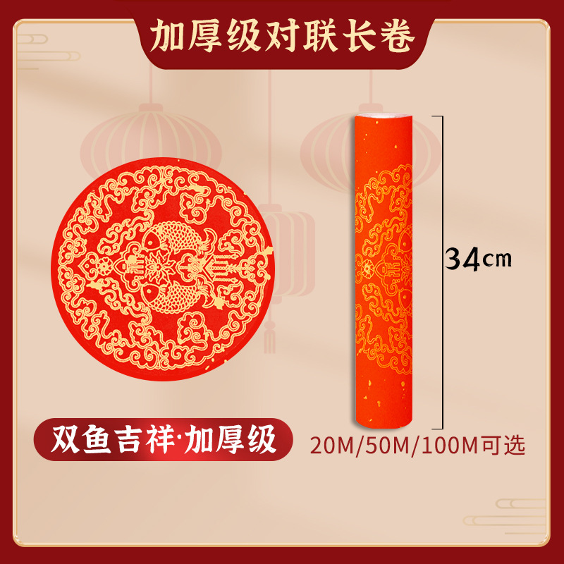 万年红宣纸百米长卷纯色龙凤双鱼手写对联半生熟20米50米100春联