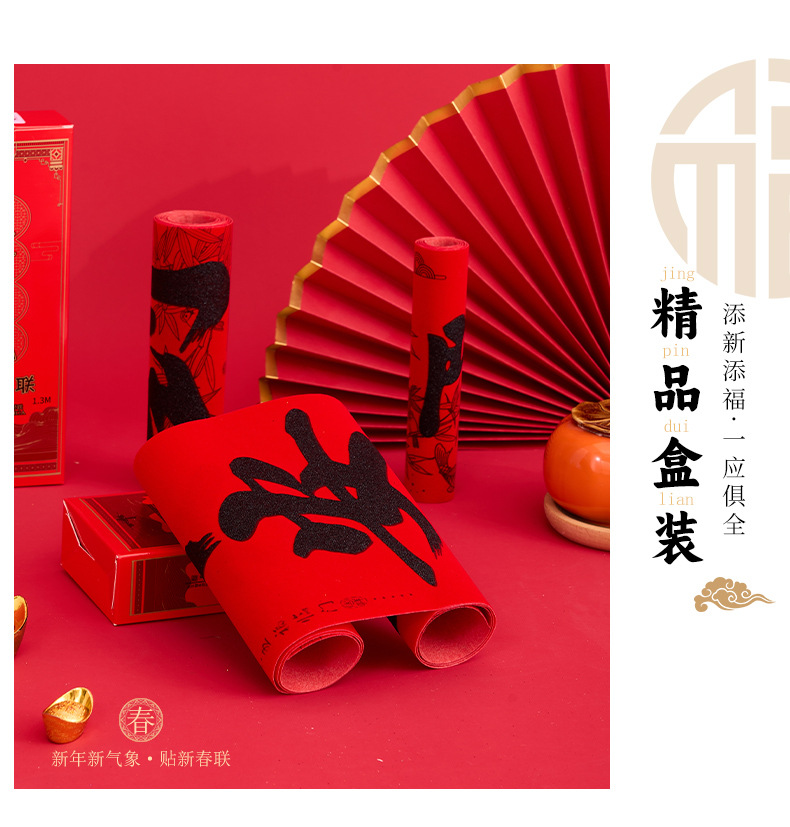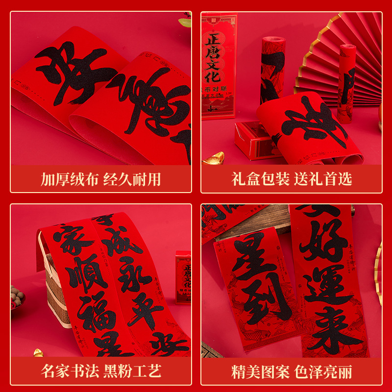 正唐2026马年春联批发新年门贴春节新款绒布对联全背胶入户门门联