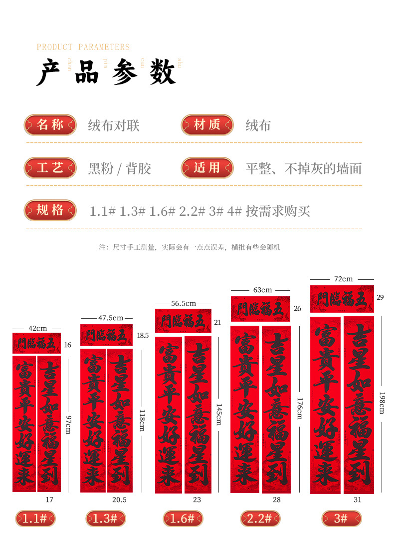 | 1.3m hang hongyun is booming every year to welcome baifu safe and sound all year round(1.3M行鸿运年年兴旺 迎百福岁岁平安) | USD $2.0 | 1000 pair available |