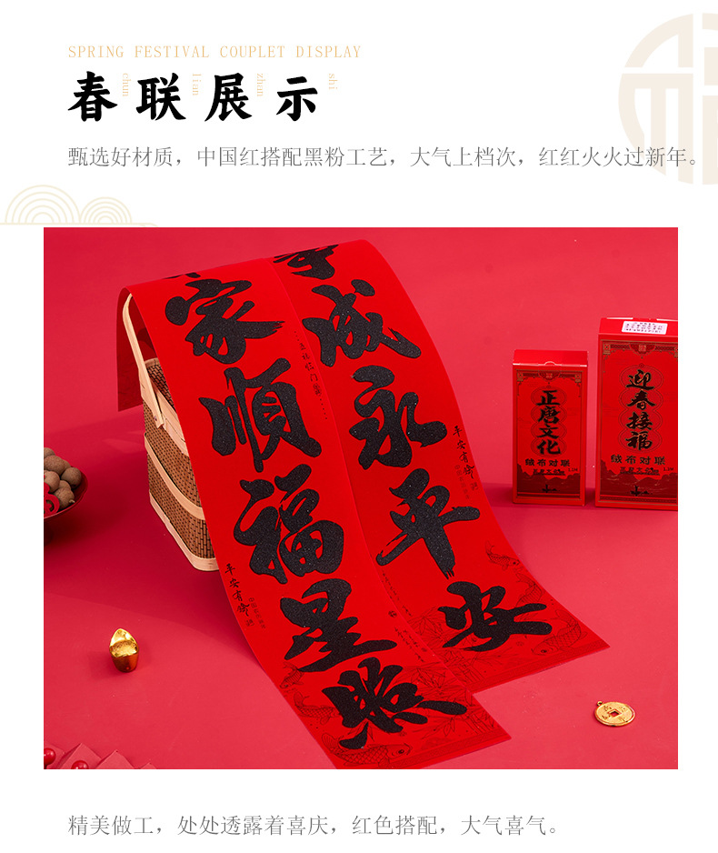 | 2.2m welcome to the spring, welcome to the rich, pick up the blessing, pick up the wealth, pick up the peace(2.2M迎春迎喜迎富贵 接福接财接平安) | USD $3.67 | 1000 pair available |