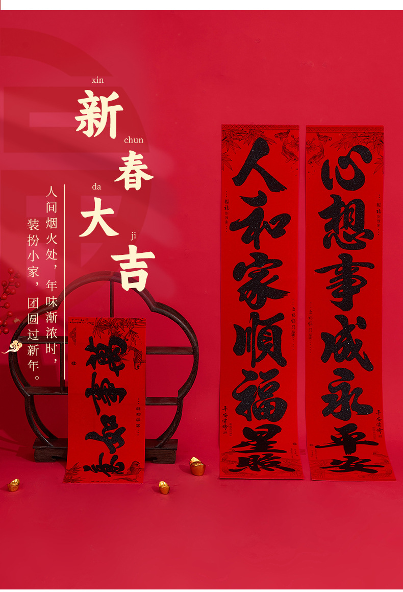 | 1.1m family reunion he xin spring full hall of joy welcome wealth(1.1M合家团圆贺新春 满堂欢乐迎富贵) | USD $1.47 | 1000 pair available |