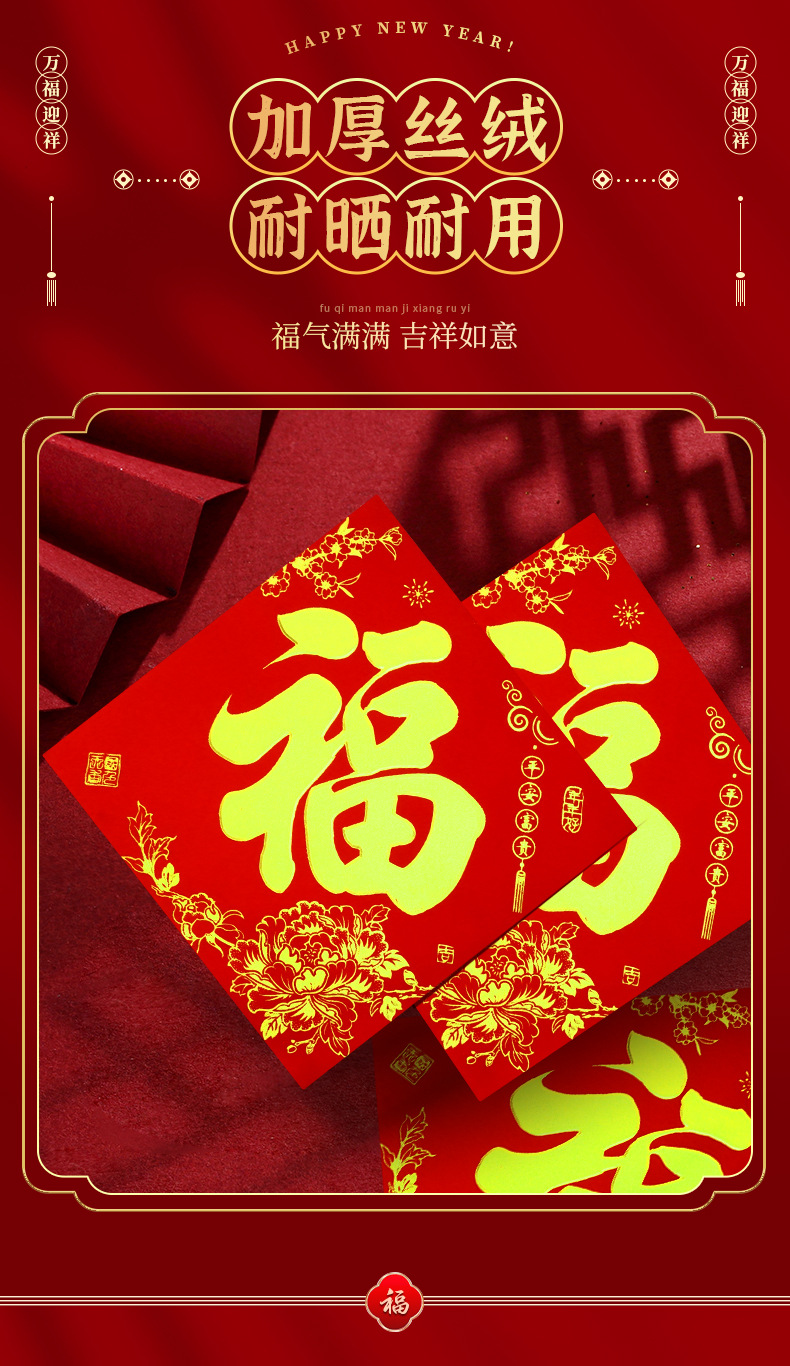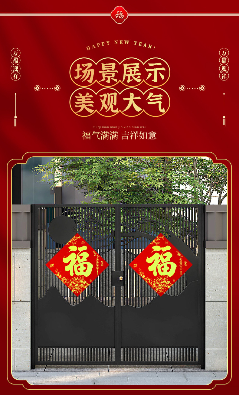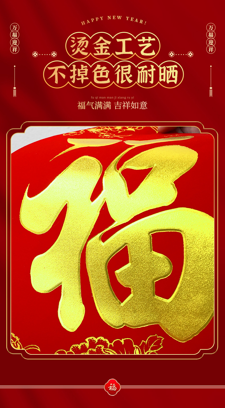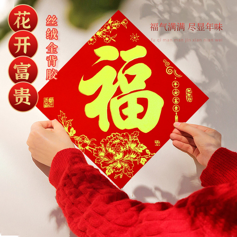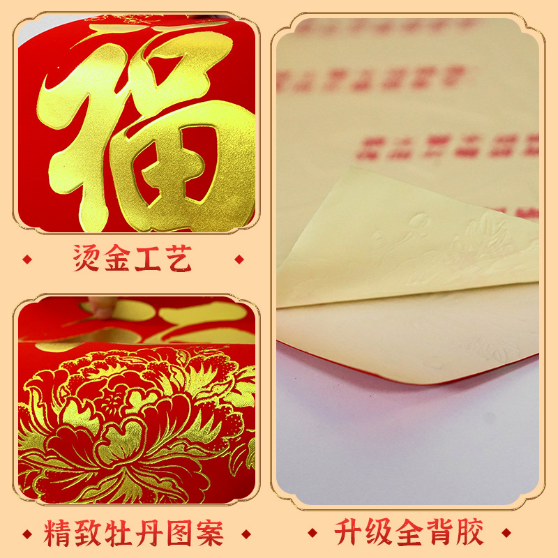 年年好全背胶丝绒烫金福字门贴玻璃门客厅福字自粘对贴蛇年批发