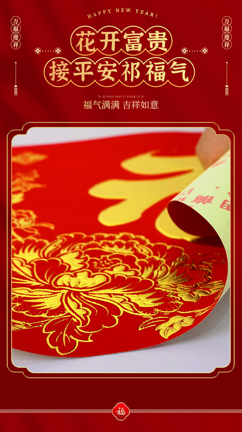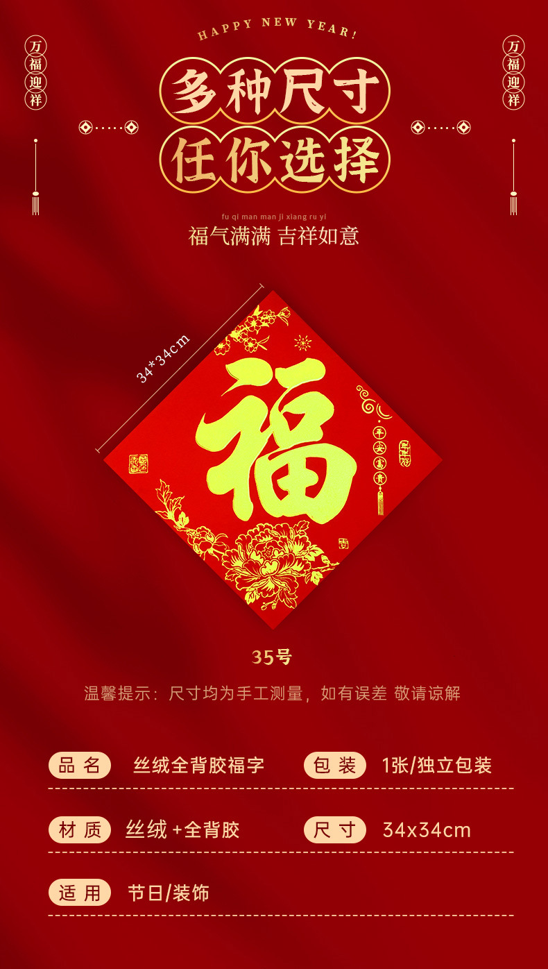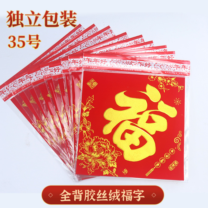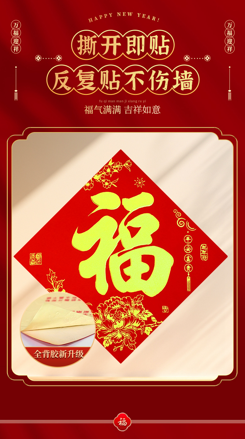 年年好全背胶丝绒烫金福字门贴玻璃门客厅福字自粘对贴蛇年批发