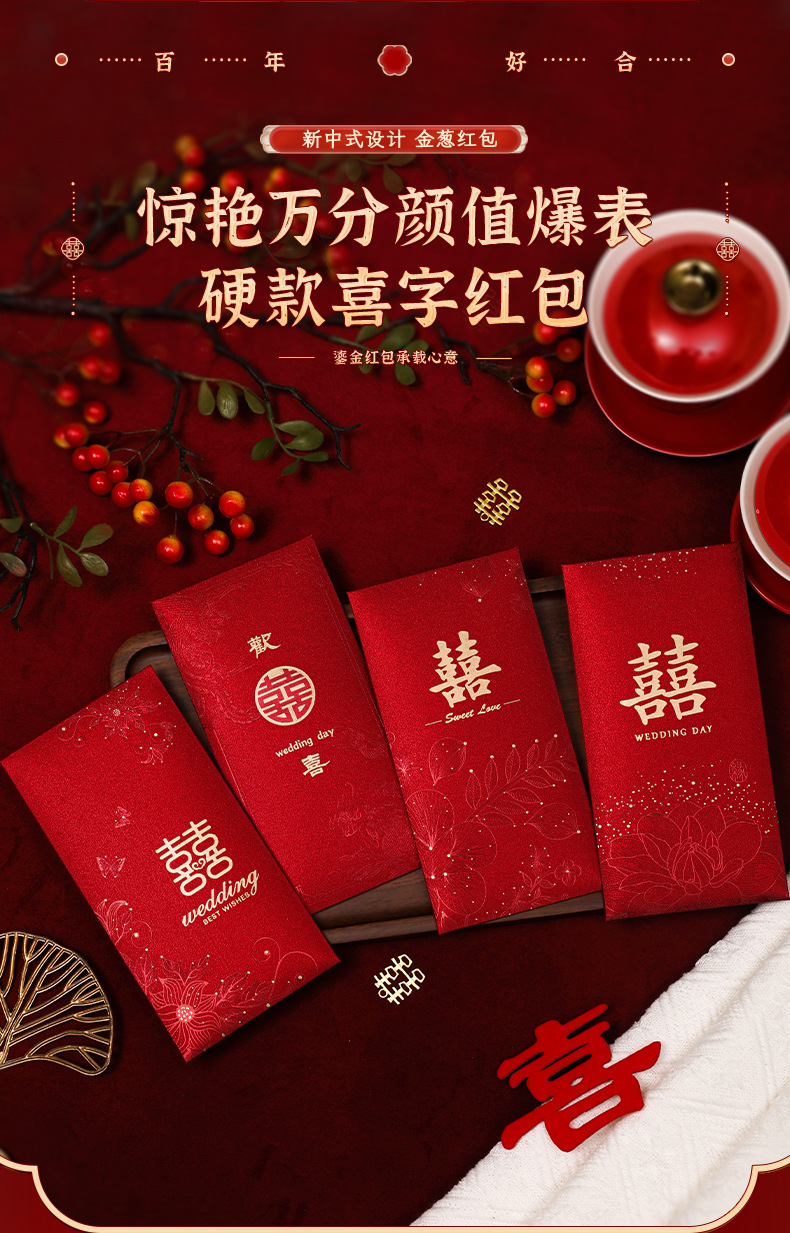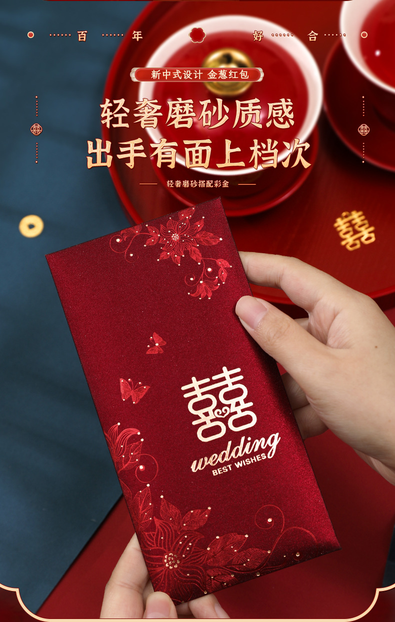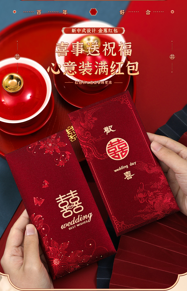 新款烫金千元硬质红色结婚红包高级感喜字随份子婚礼创意新婚喜包