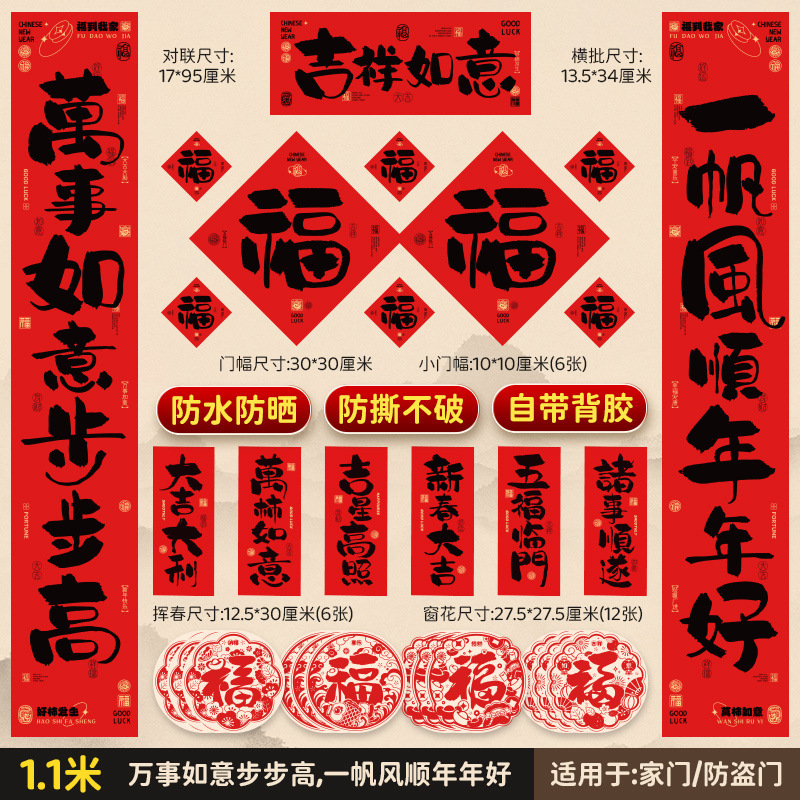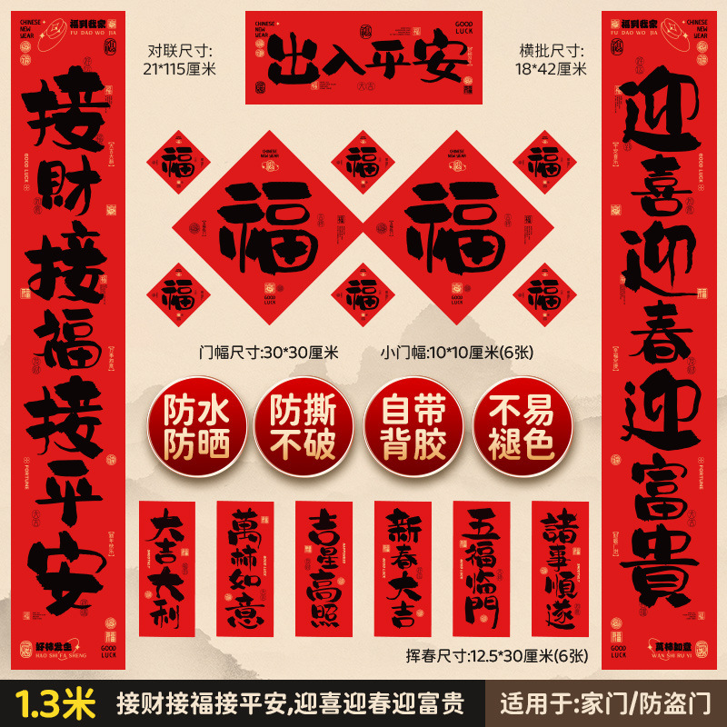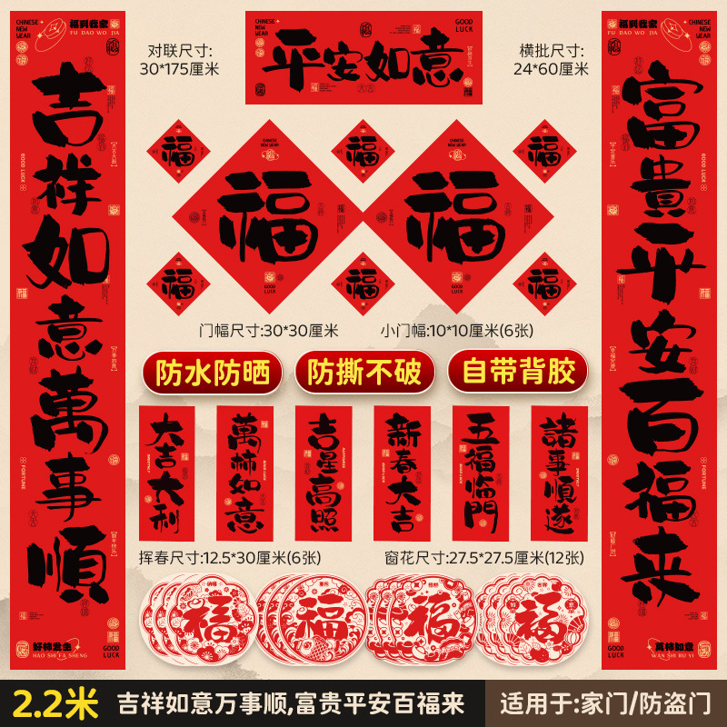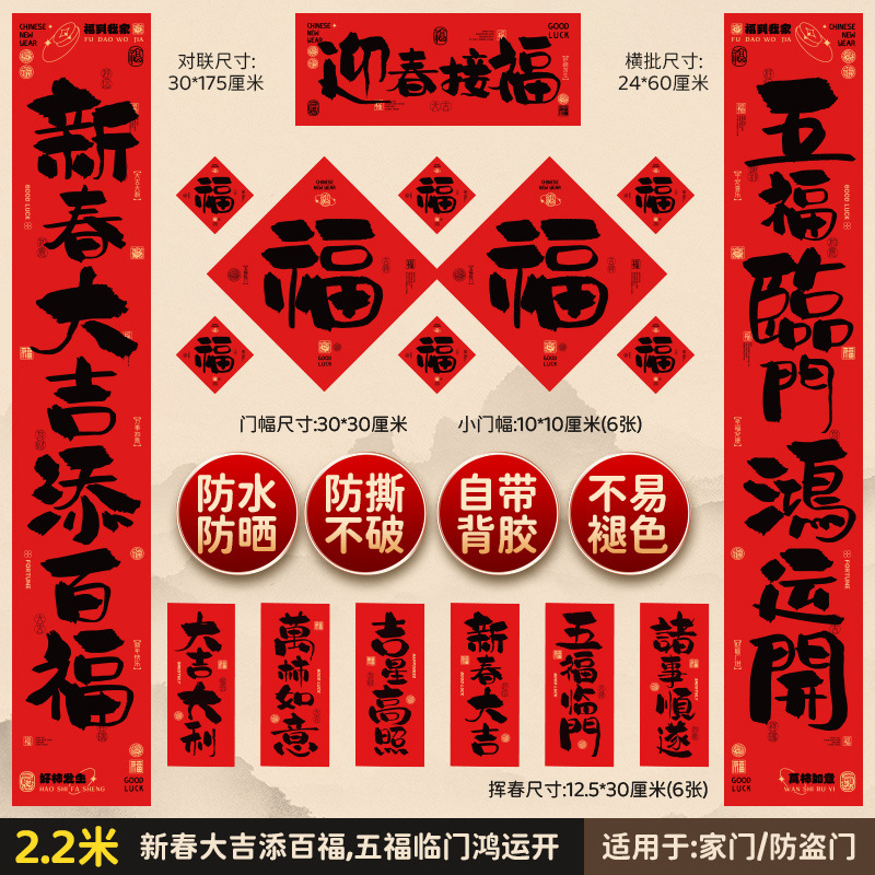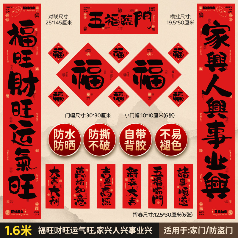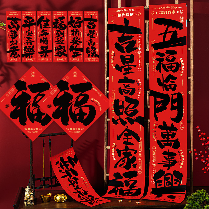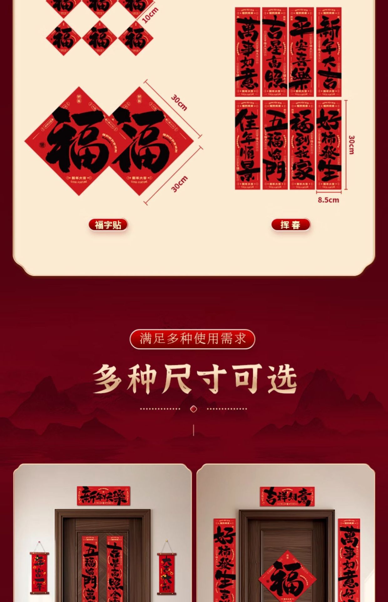 2025新款蛇年书法对联春联新年过年春节福字家用挥春大门贴装饰