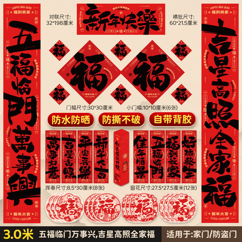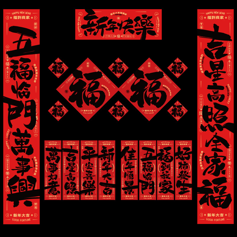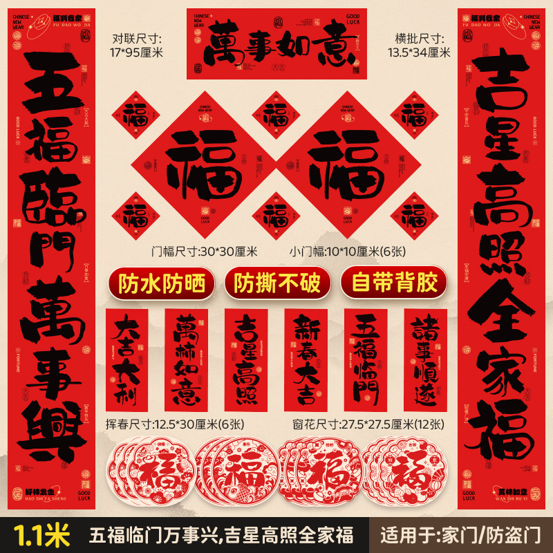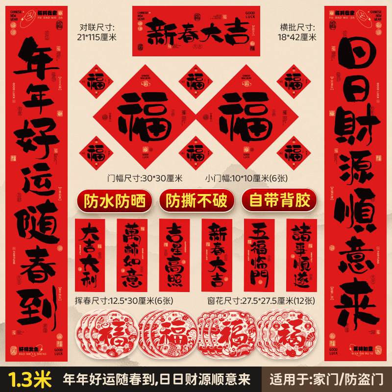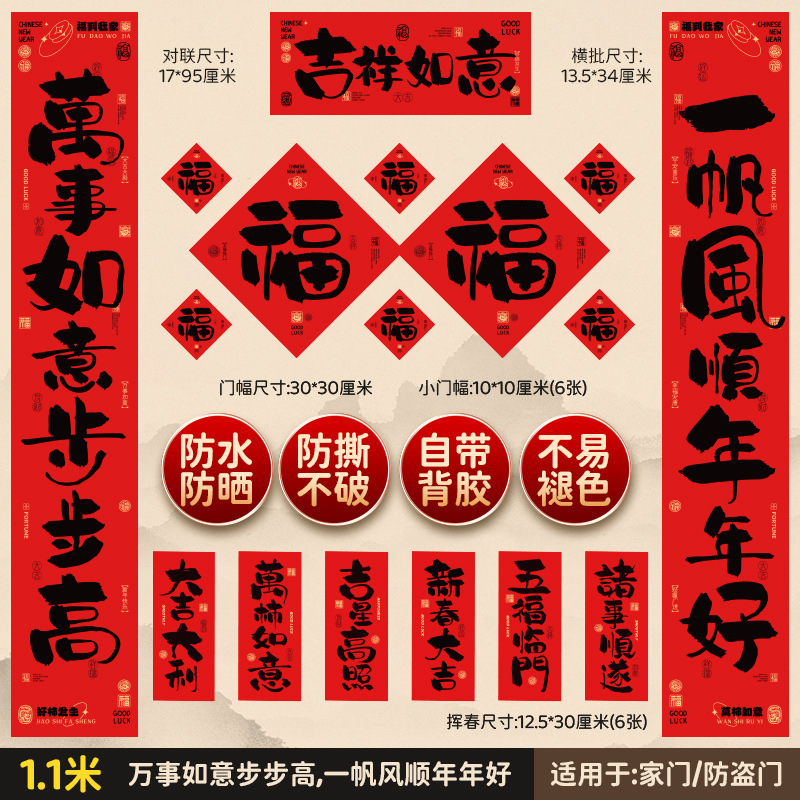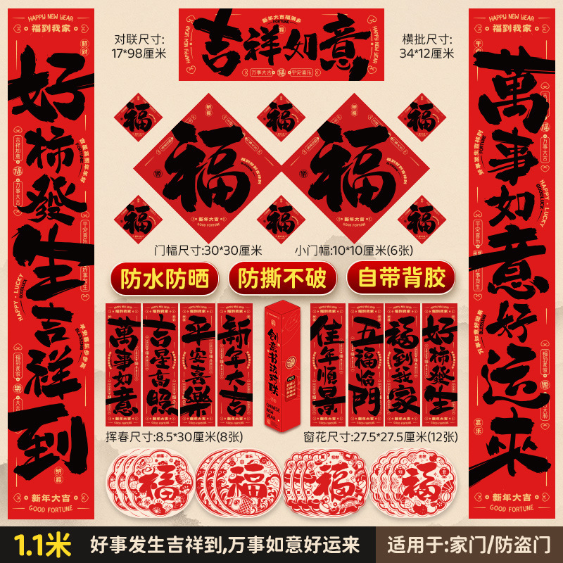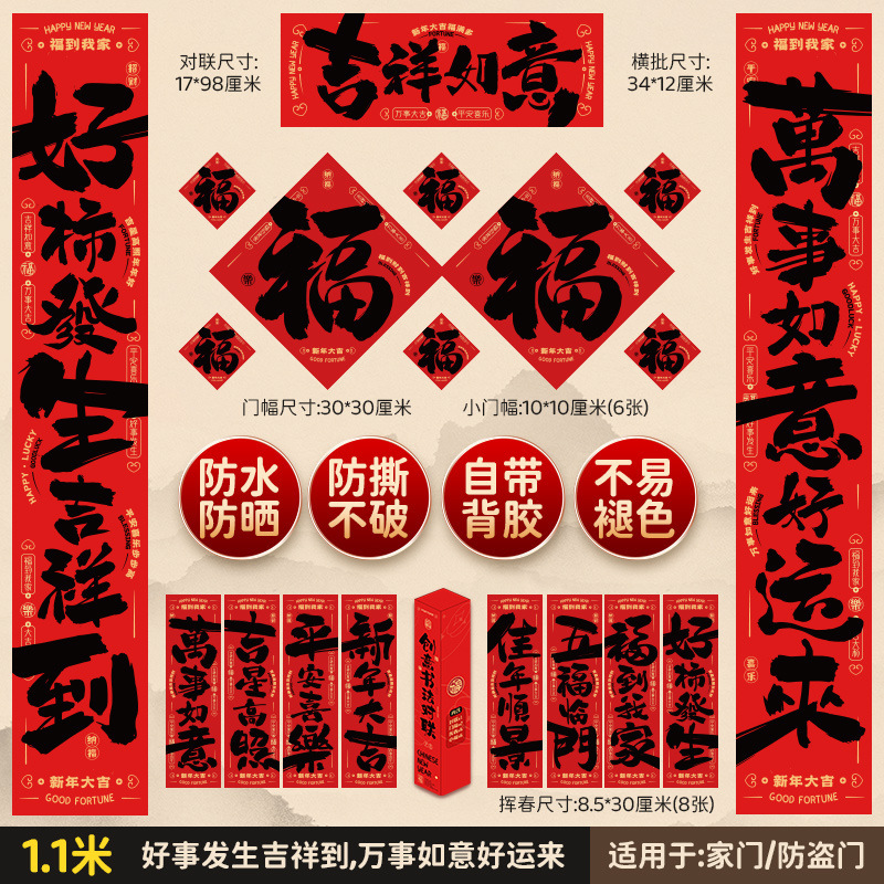2025新款蛇年书法对联春联新年过年春节福字家用挥春大门贴装饰