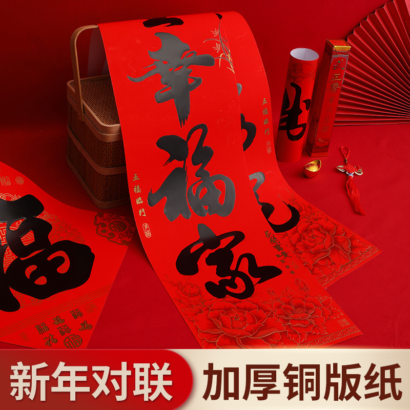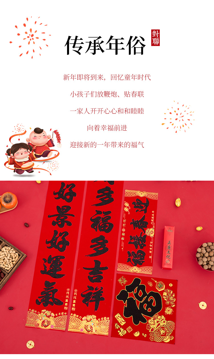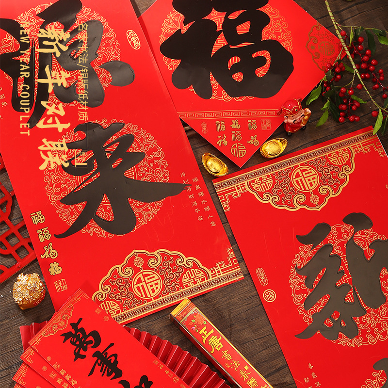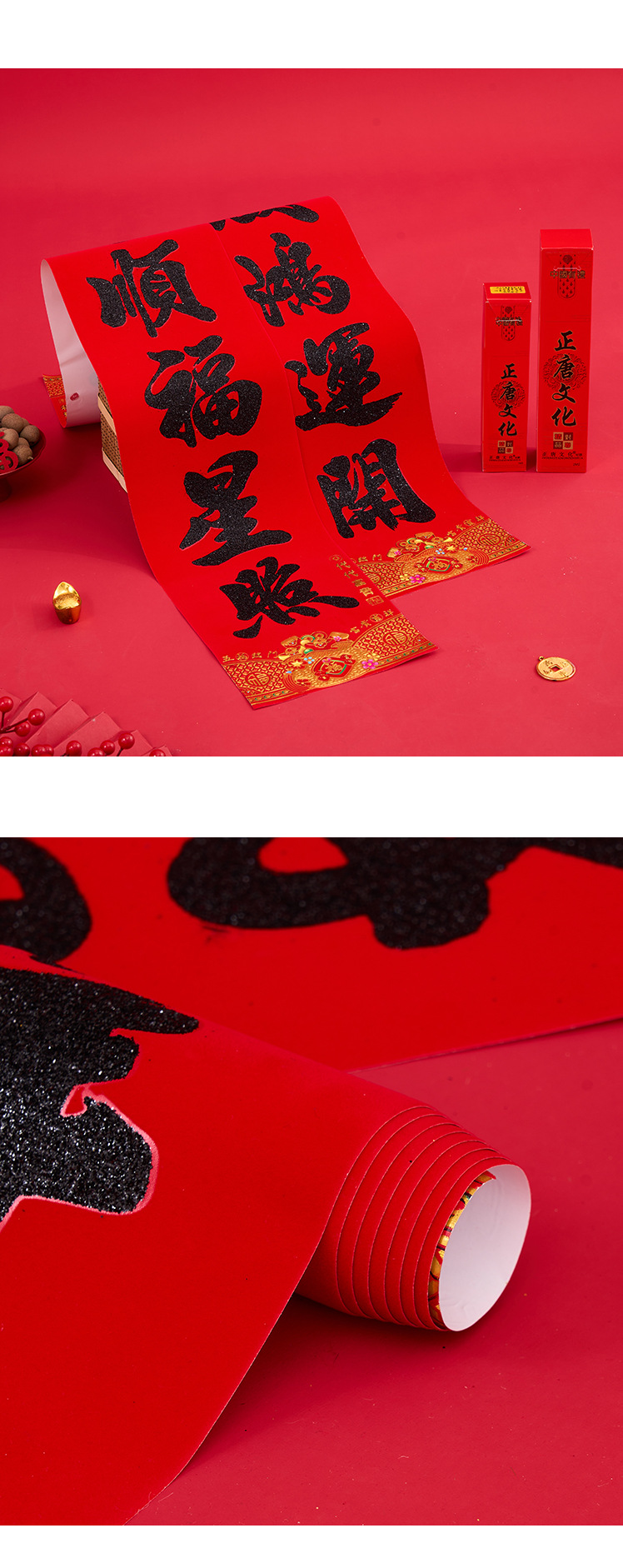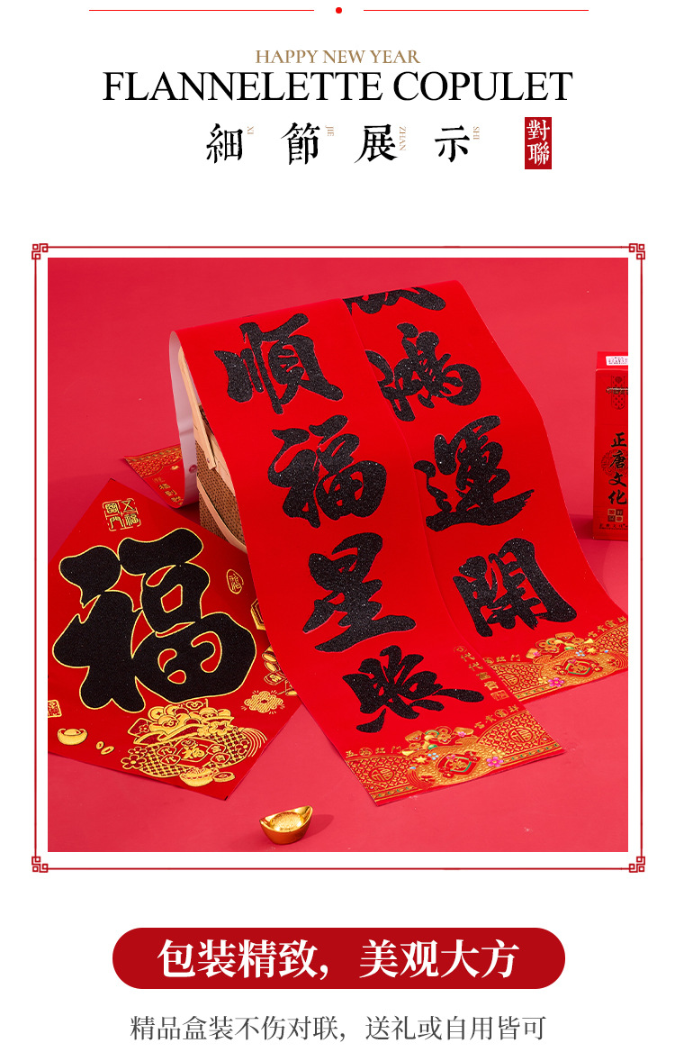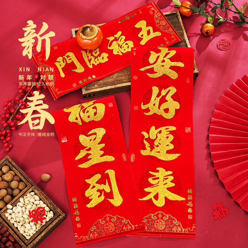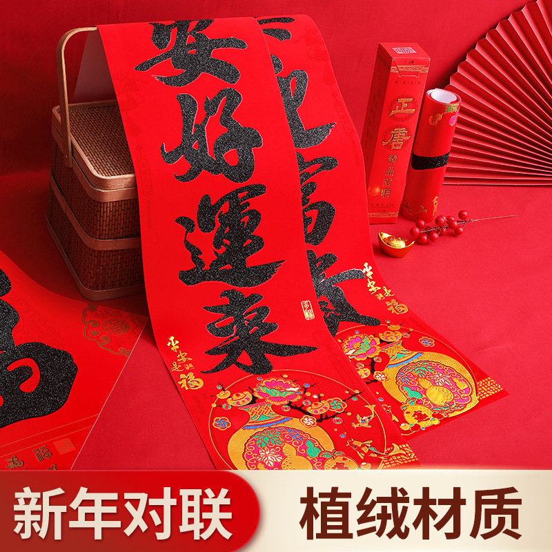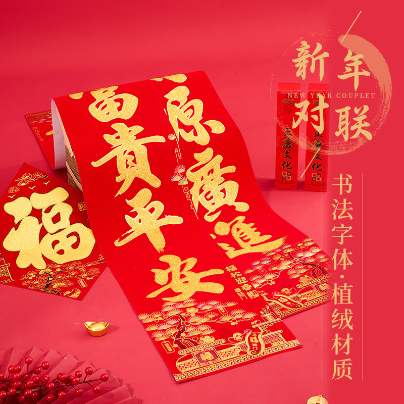 新年2026马年新款盒装植绒对联批发家用入户门烫金黑粉新春打门联