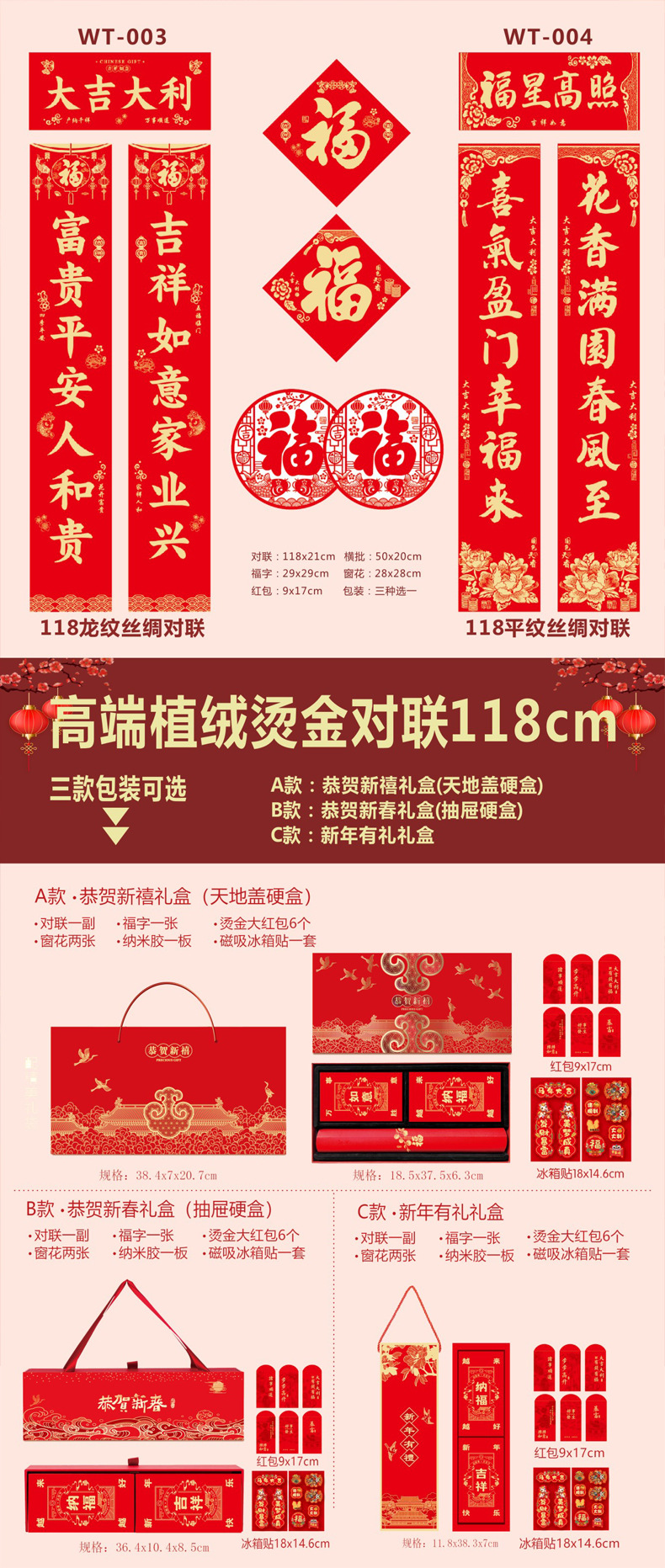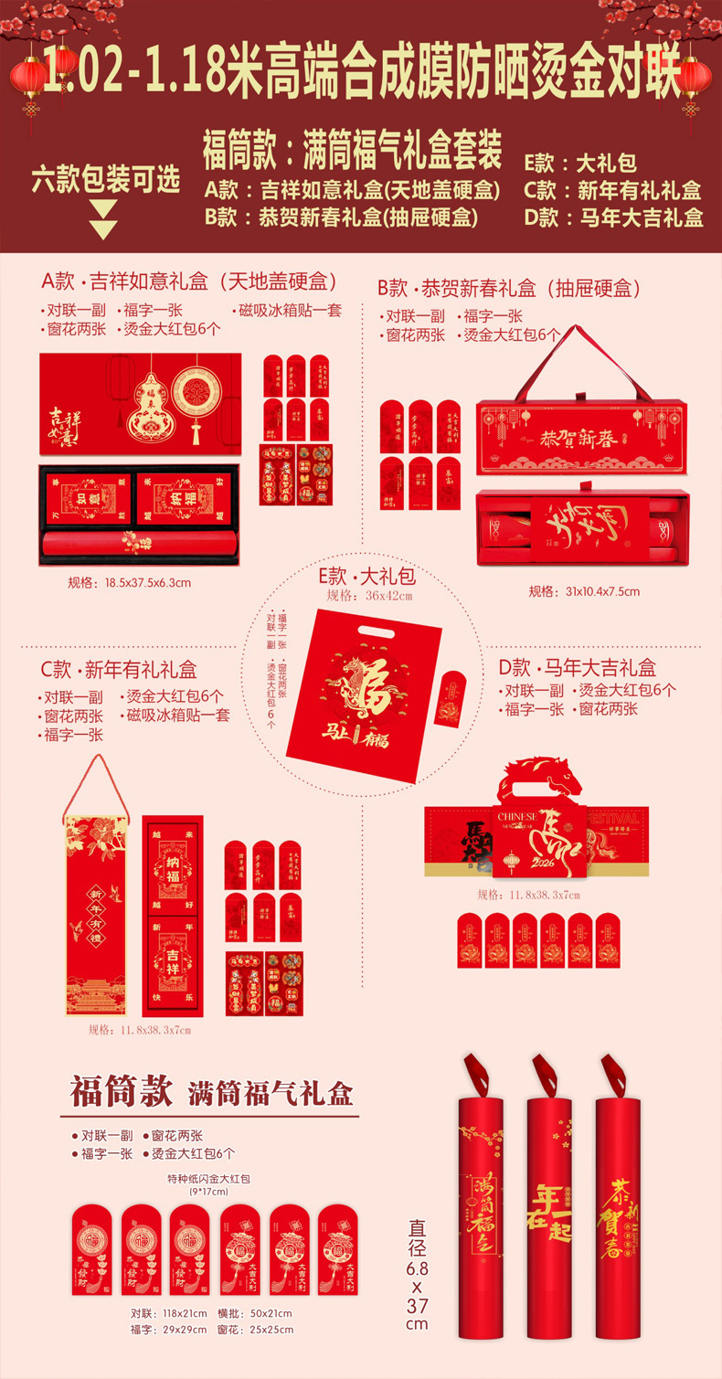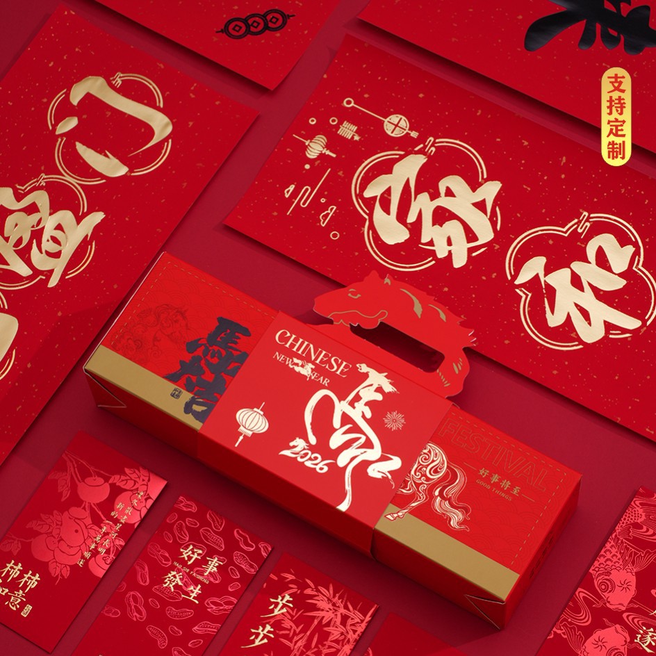 2026年植绒烫金广告对联定制银行企业春联福字礼包订做红包印LOGO