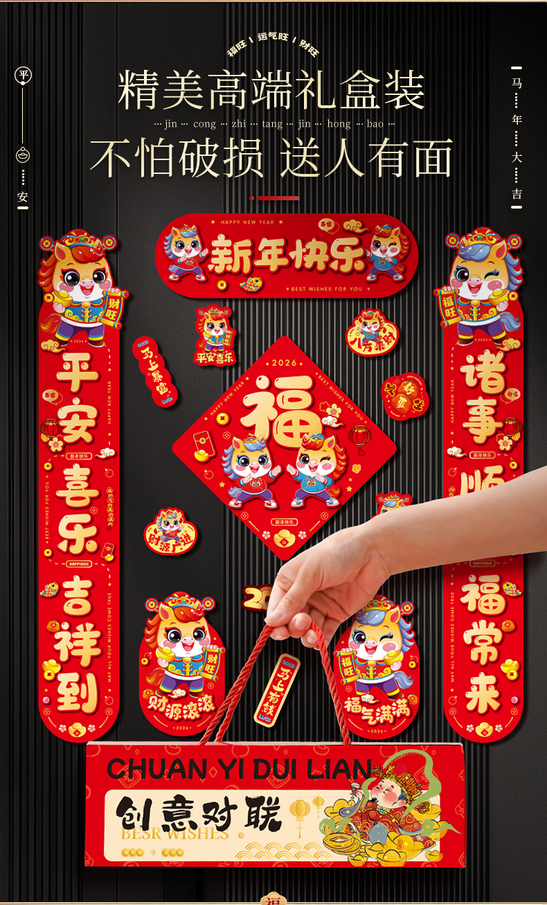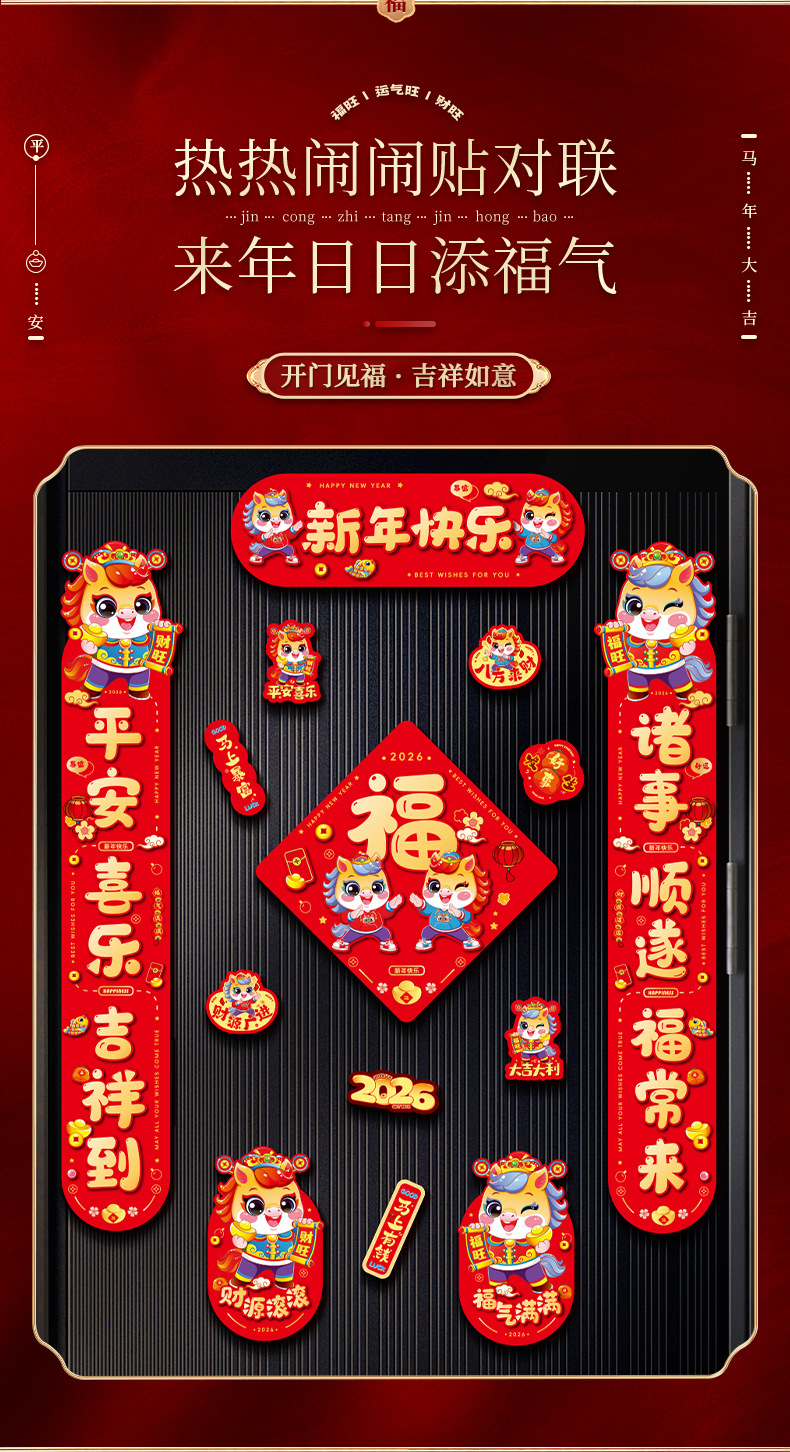 2026年新款磁吸对联马年高端春联过年家用实用农村喜庆创意门联