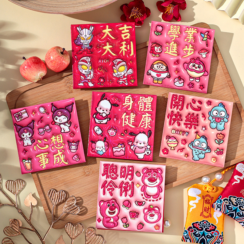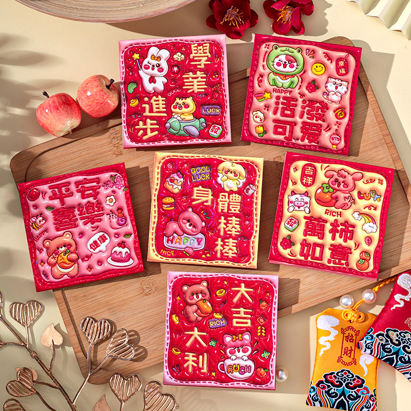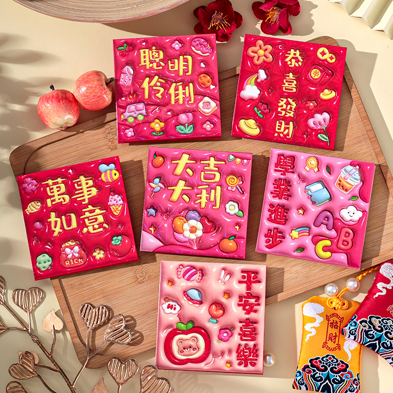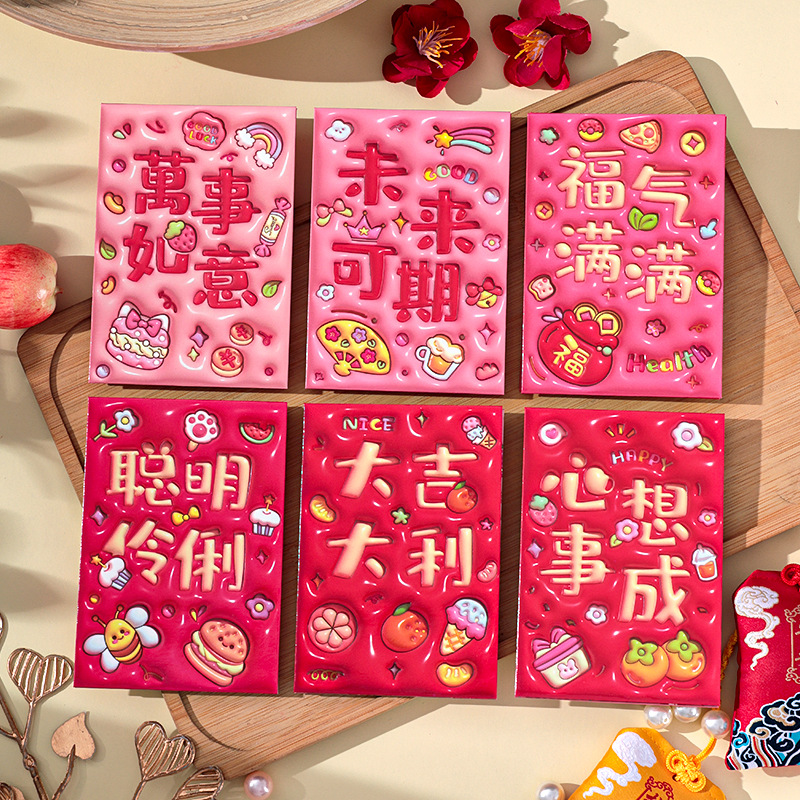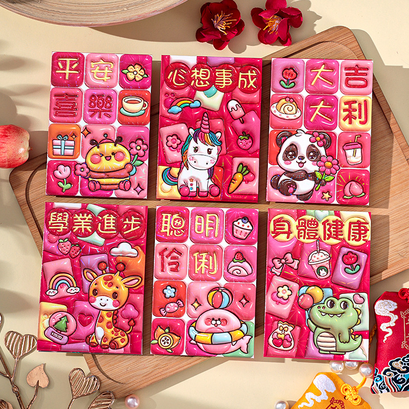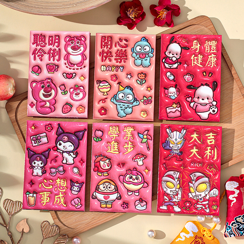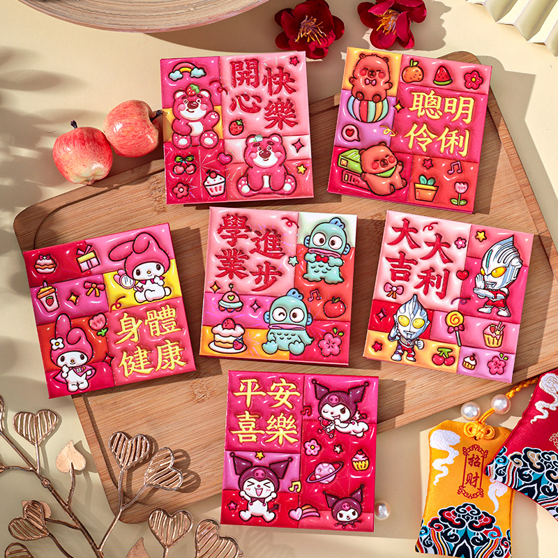 2026新款新年炫彩红包袋个性创意可爱卡通压岁包膨胀凹凸感利是封