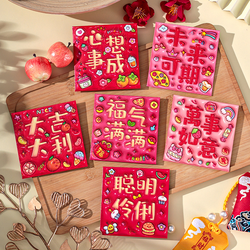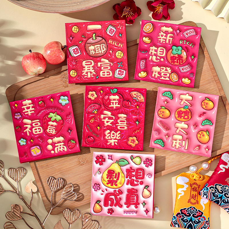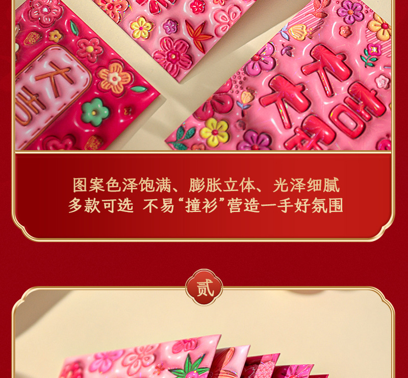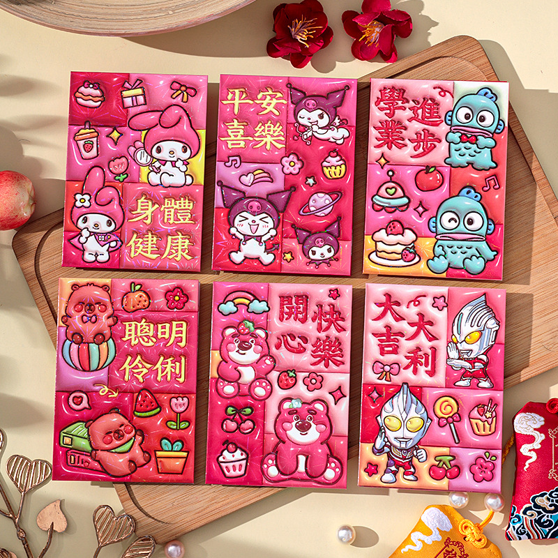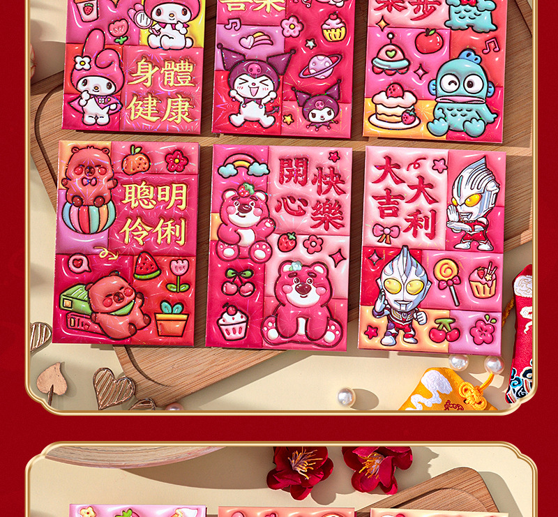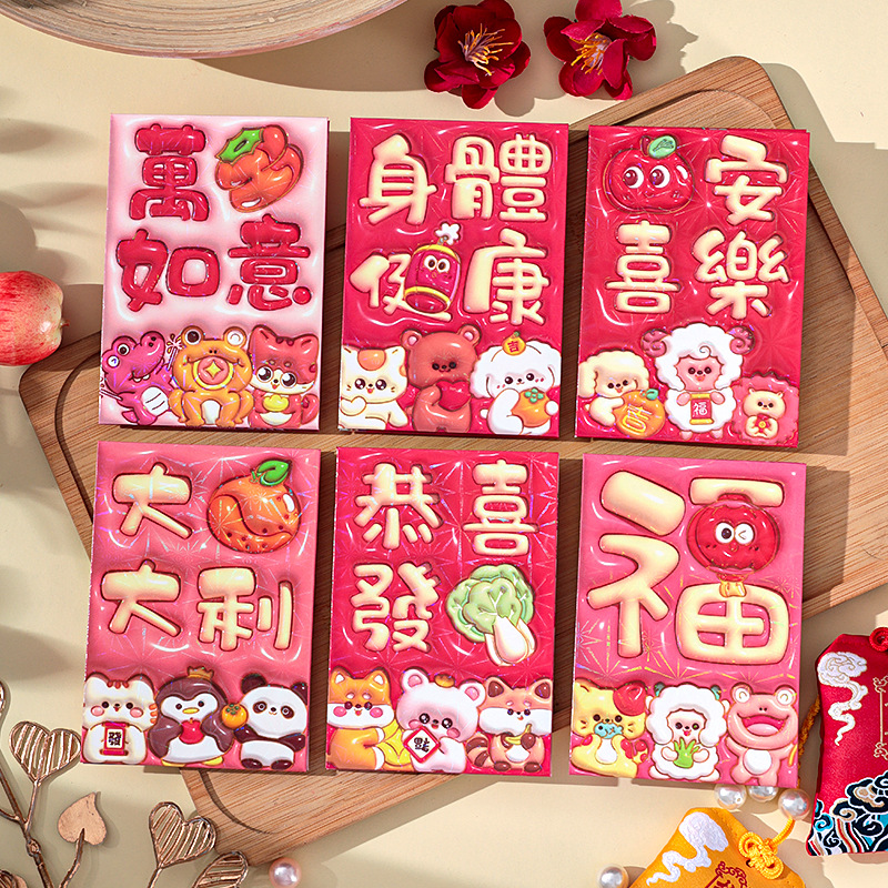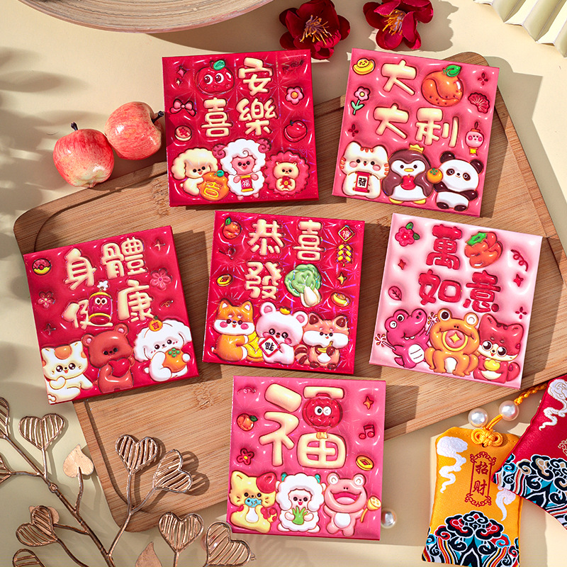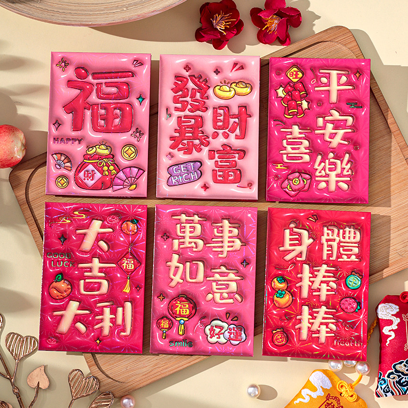 2026新款新年炫彩红包袋个性创意可爱卡通压岁包膨胀凹凸感利是封