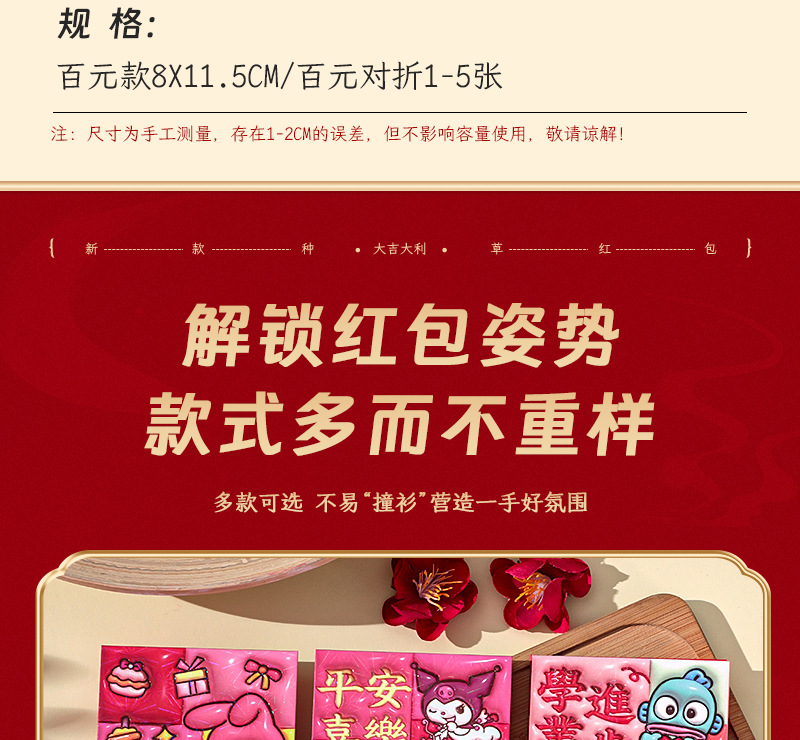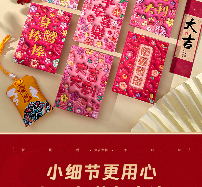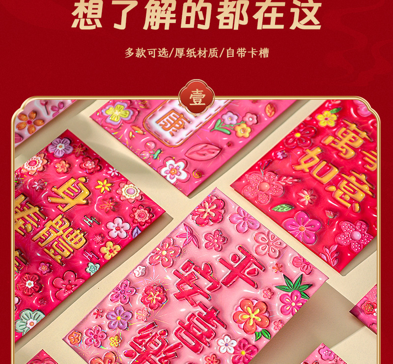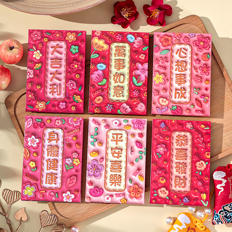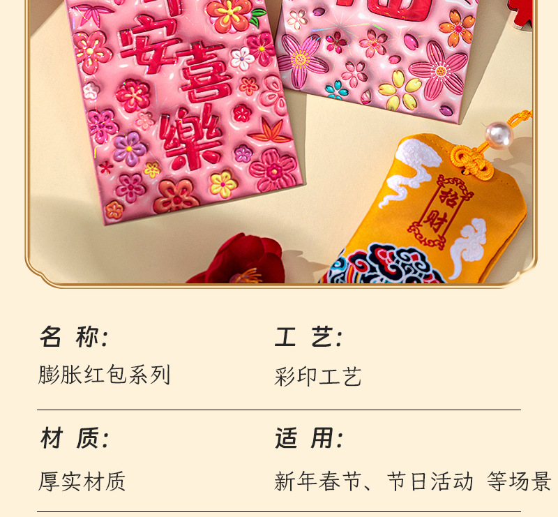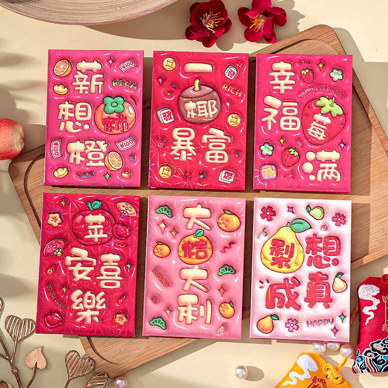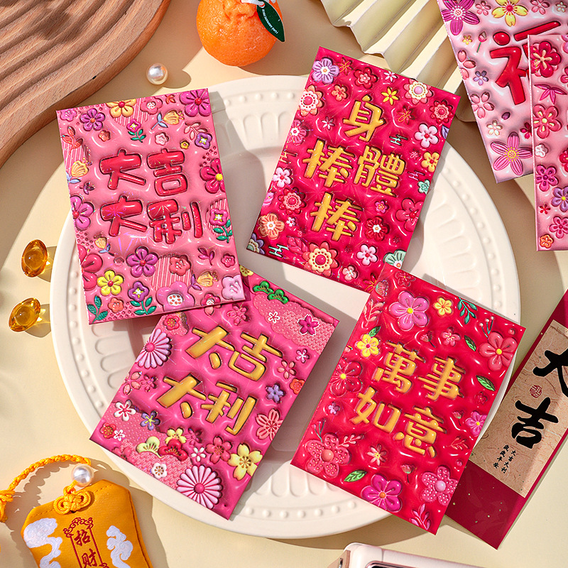 2026新款新年炫彩红包袋个性创意可爱卡通压岁包膨胀凹凸感利是封