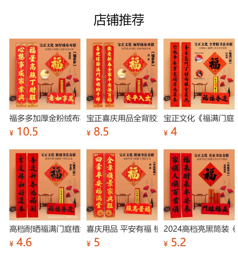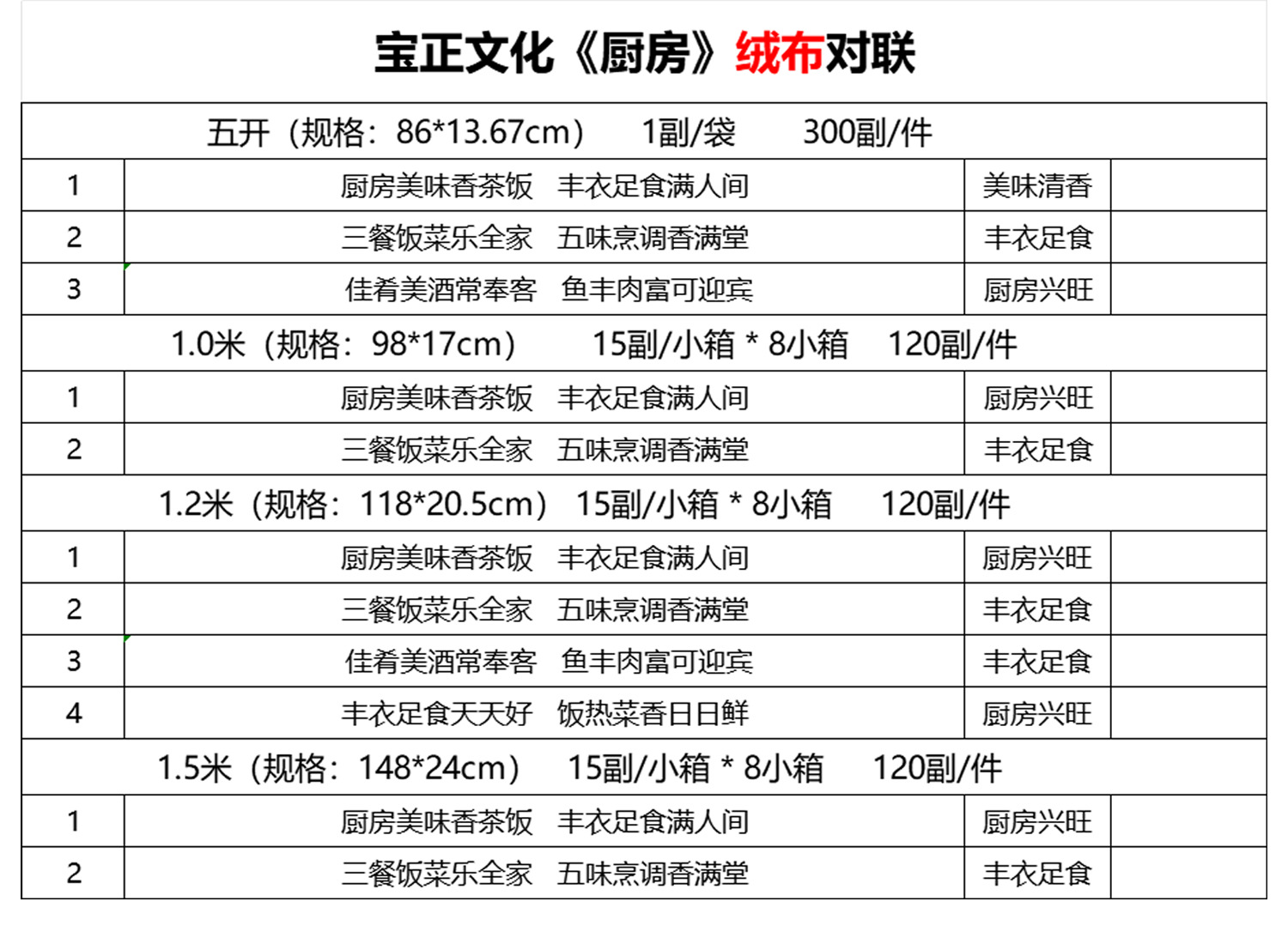 | ③ no. 3 words, delicacies, fine wines, often serving guests, fish, rich meat, rich welcome kitchen, prosperity(③号词 佳肴美酒常奉客 鱼丰肉富可迎宾 厨房兴旺) | USD $1.46 | 414 pair available |